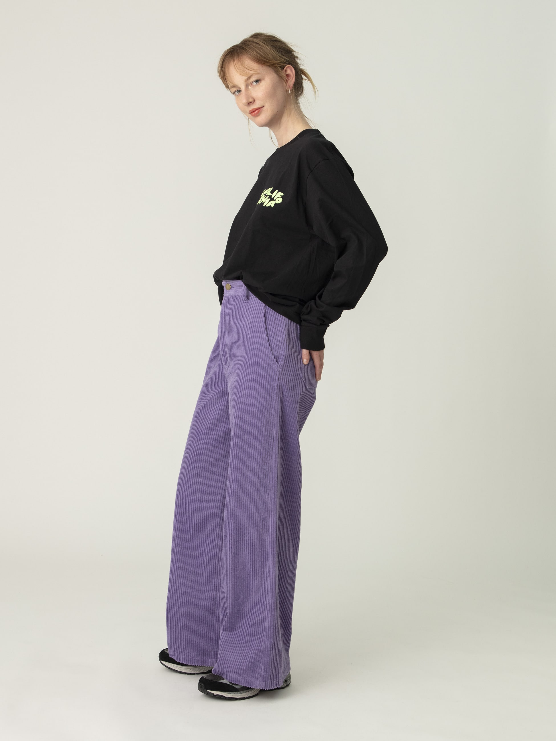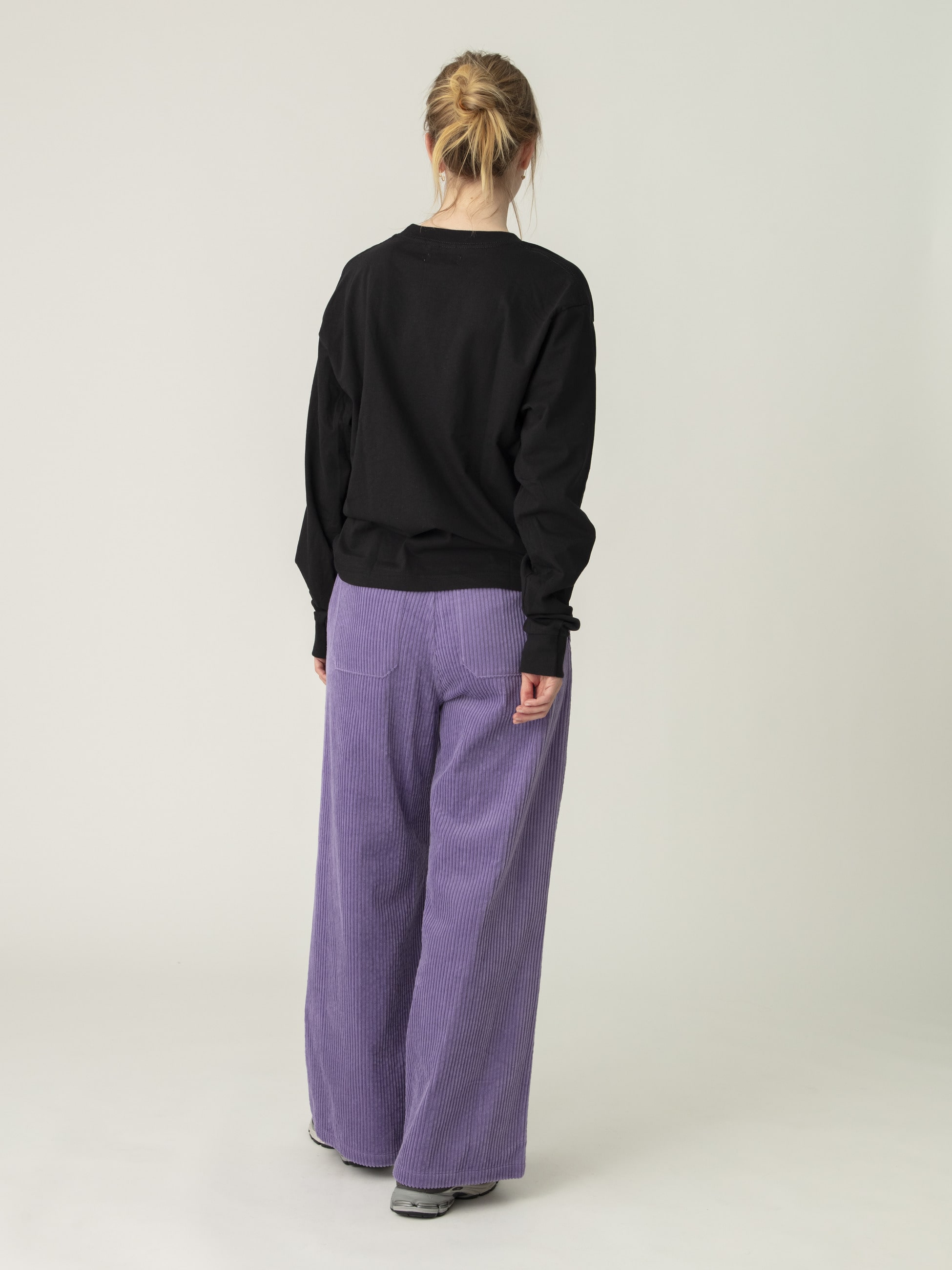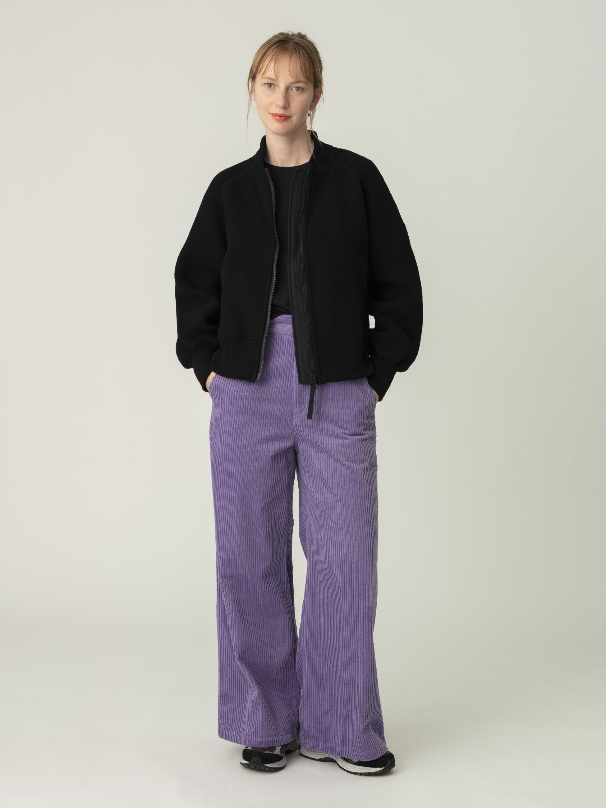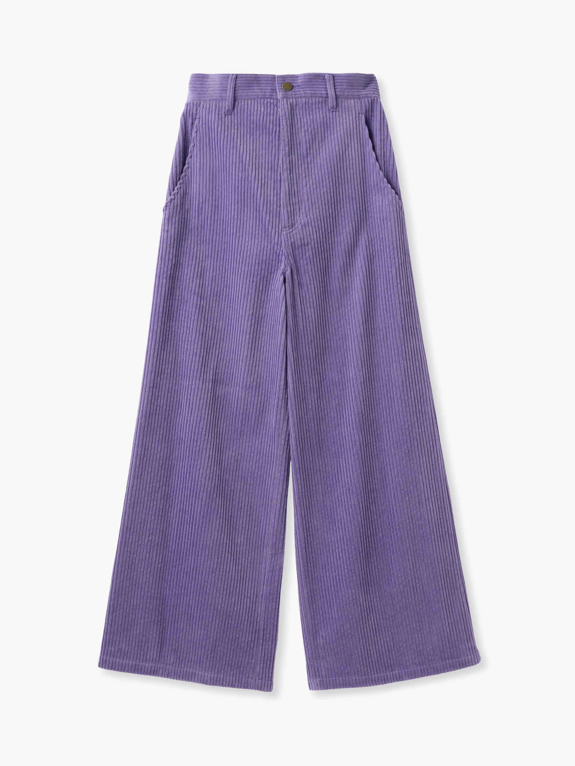 - オーガニックコットンの柔らかく肌触りの良い太畝のコーデュロイ素材を使用したワイドパンツです。脚のラインを拾いにくいリラックスしたシルエットで、どんなトップスとも好相性です。RHCらしい鮮やかなパープルは、ダークトンになりがちな冬の装いに遊び心をプラスします。同シリーズのスカートもございます。