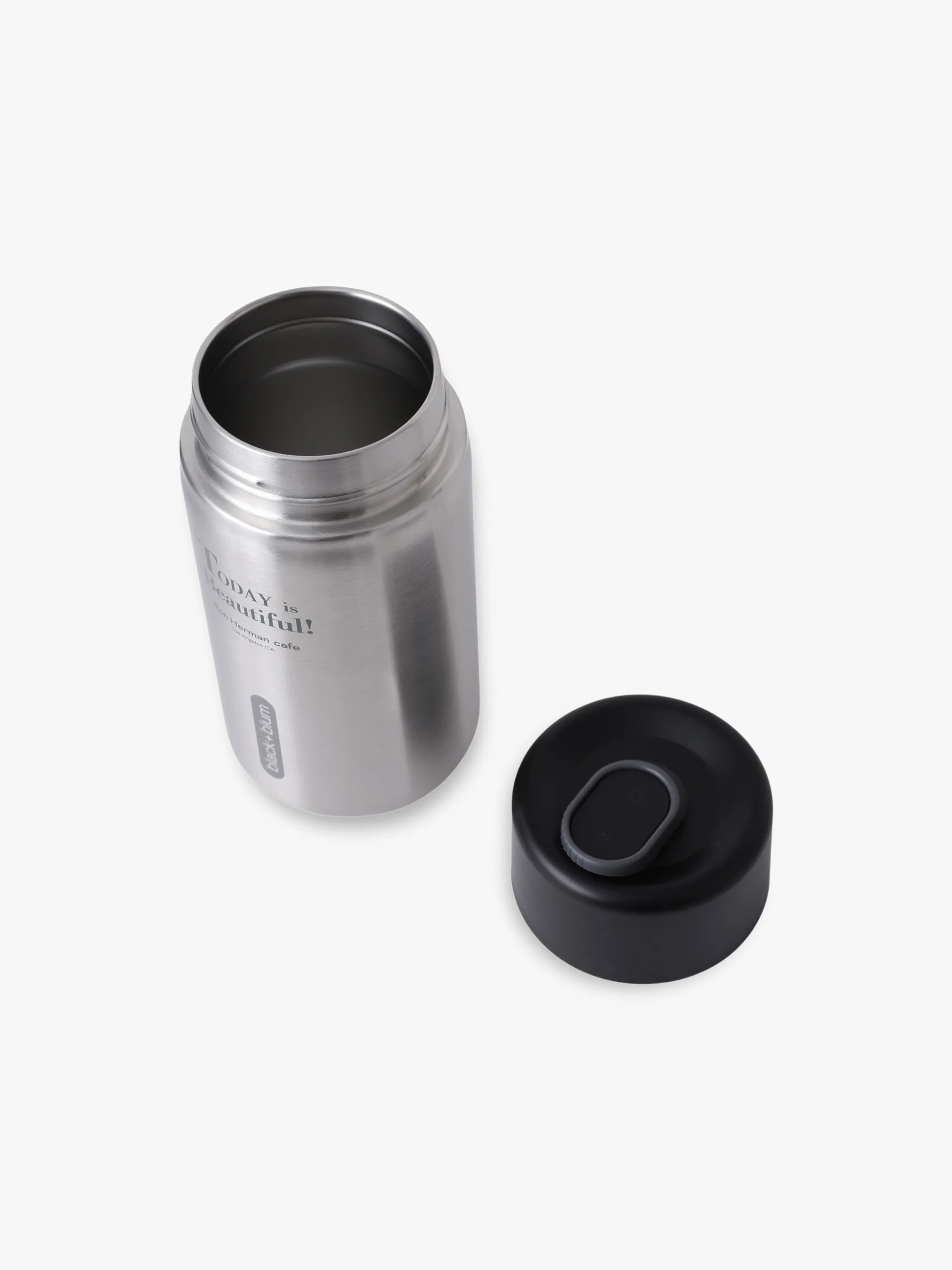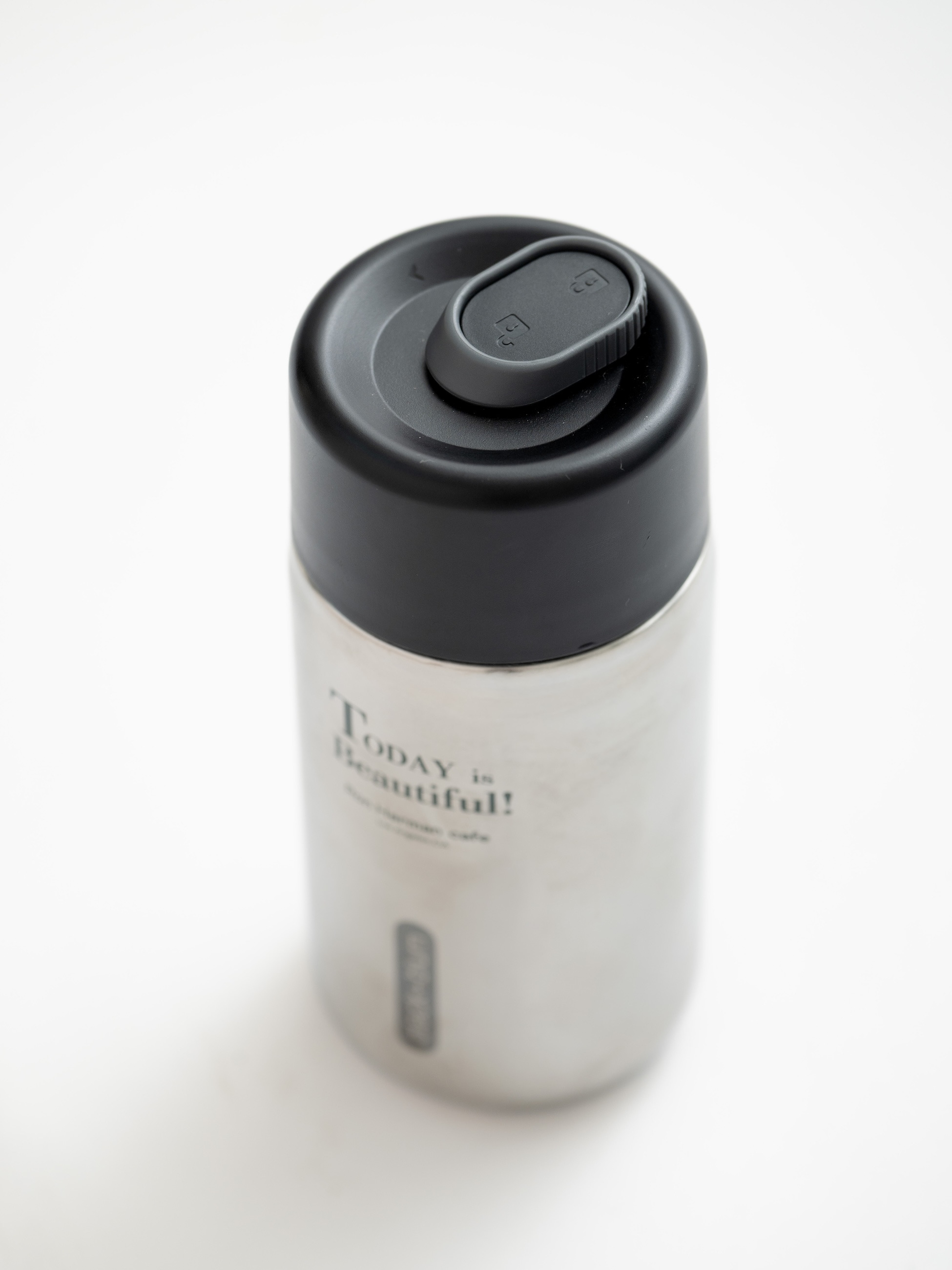“Today is Beautiful”のロゴをあしらった、ステンレス製のトラベルカップ。片手で開けられるスライド式の飲み口で、忙しい朝や移動中にも便利です。保温・保冷性に優れ、お気に入りのドリンクをいつでもどこでも。毎日持ち歩きたくなるようなデザインと機能性を両立しました。