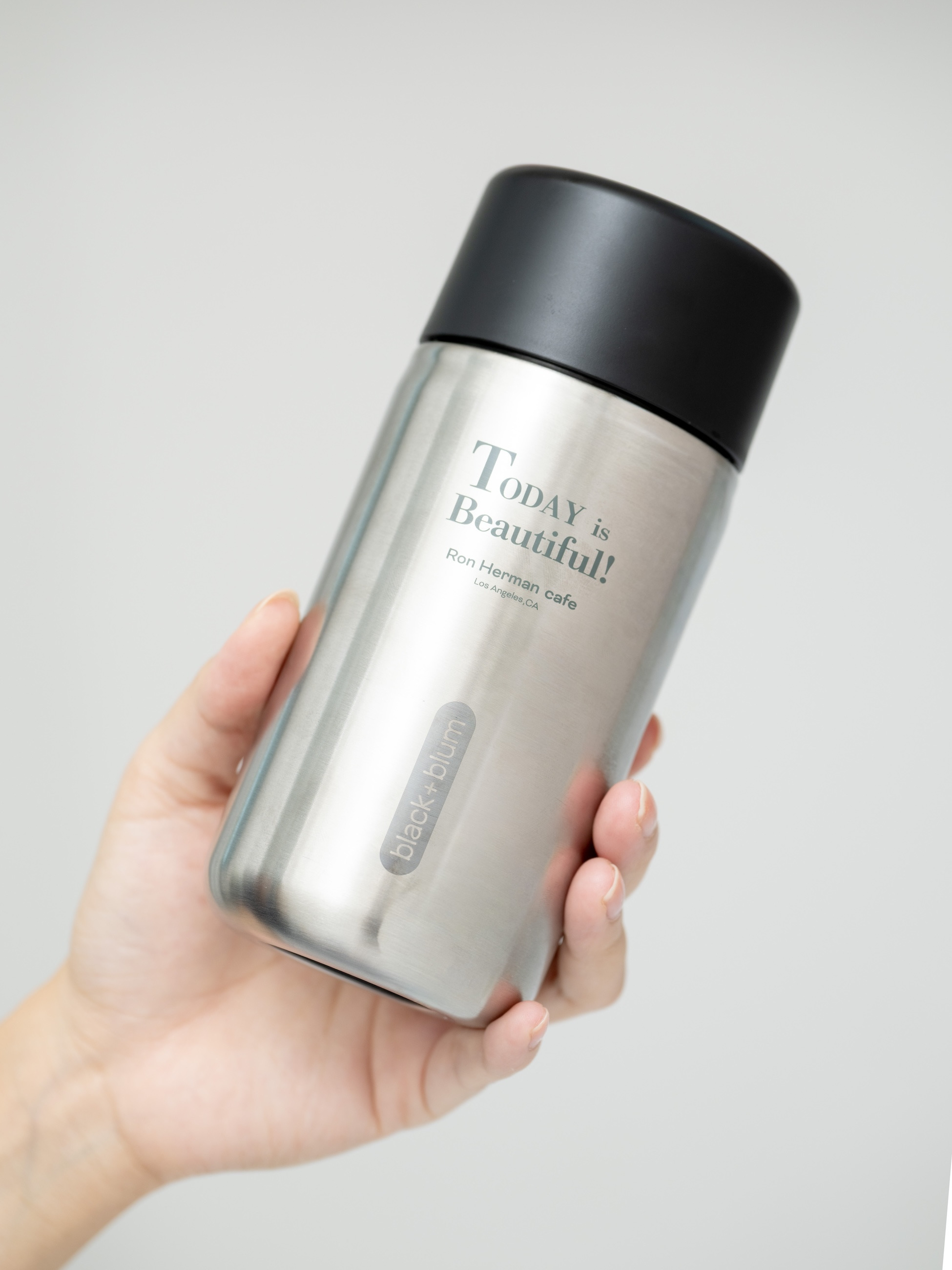 - 自転車や車のカップホルダーにすっきり収まるコンパクトなトラベルカップ。漏れ防止のロック付き蓋と片手で開けられるスライド飲み口で、外出中も快適に水分補給できます。ロンハーマンが大切にしている言葉「Today is Beautiful」のロゴをあしらった、スタイリッシュなデザインをお楽しみください。