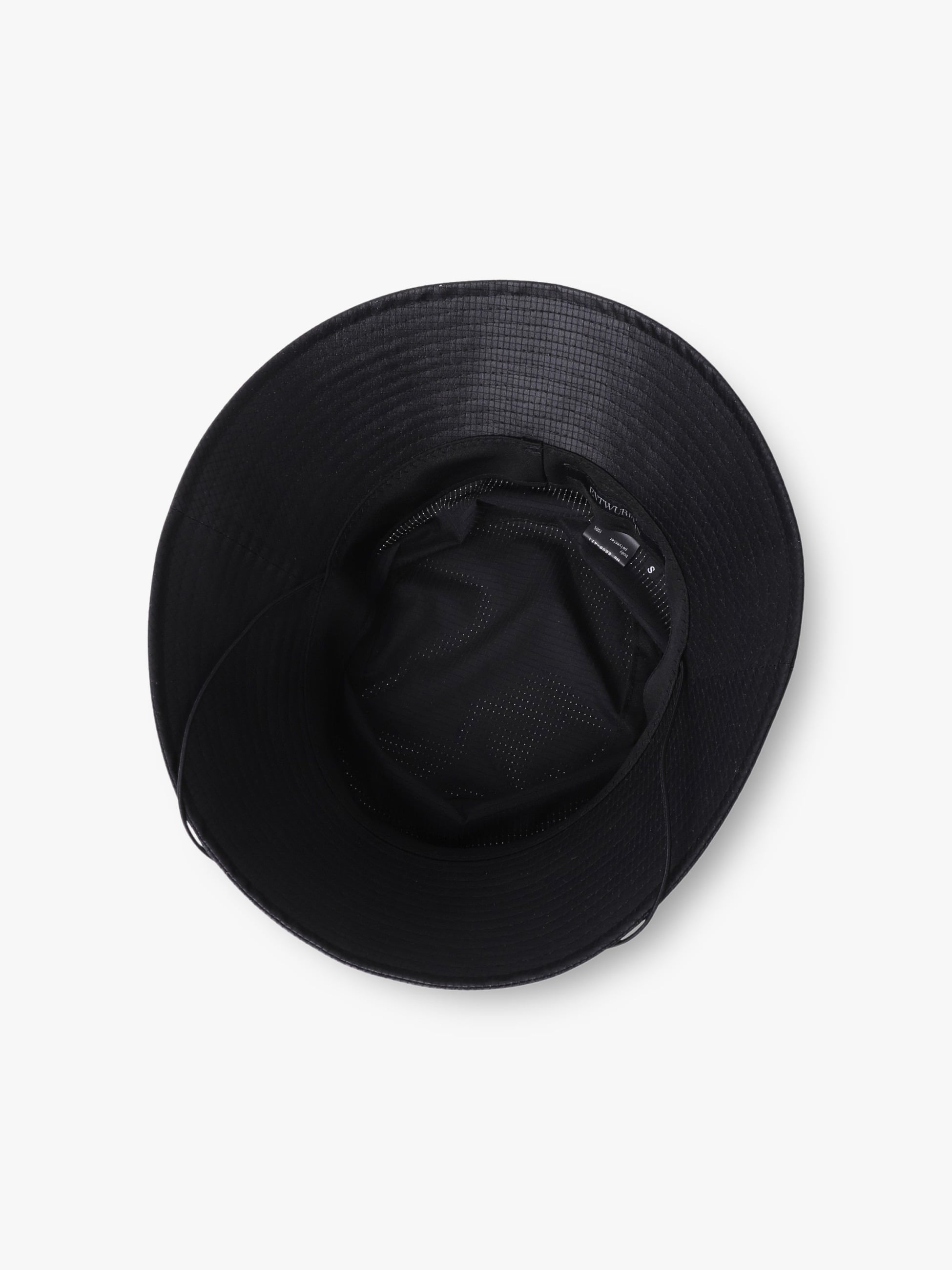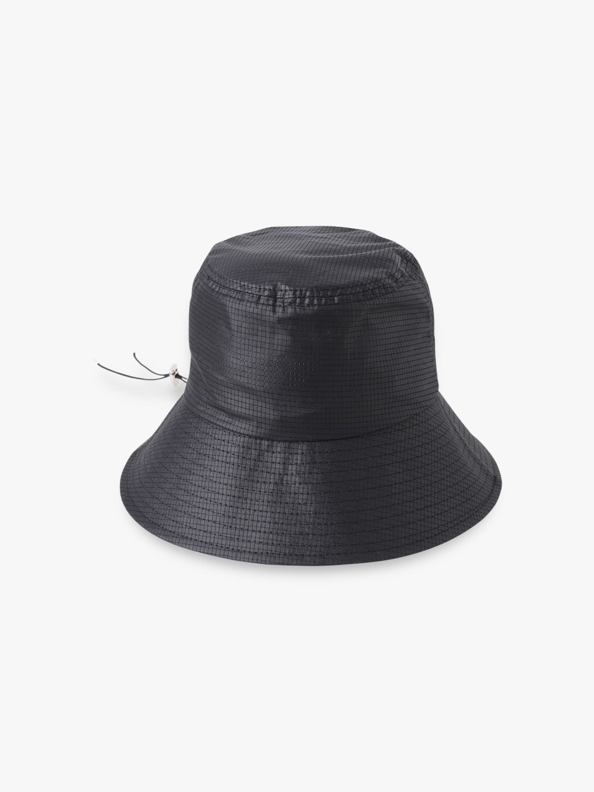 ミニマルでモダンなデザインに、通気性の高いメッシュ素材を用いた機能的なハットは、アウトドアでもエレガントさを損なわない洗練された佇まいで、タウンユースにも自然に溶け込みます。コード部分は伸縮性のあるゴム仕様、通気性・接触冷感・撥水・防シワ・ウォッシャブルと、多機能でありながら、ポリエステルとは思えないマットで上品な質感が魅力。機能素材に見えない佇まいが、大人のスタイルにさりげなくフィットします。