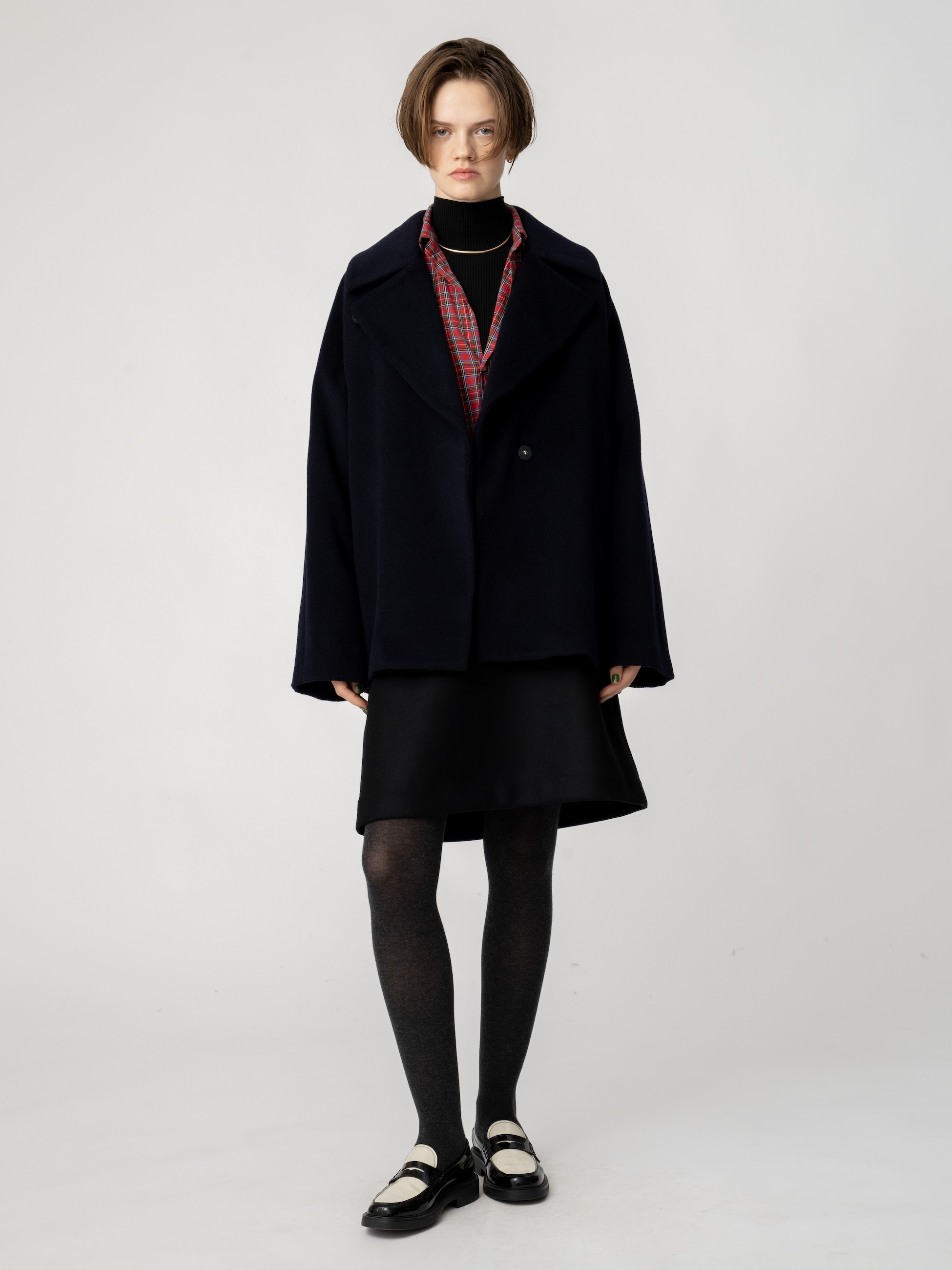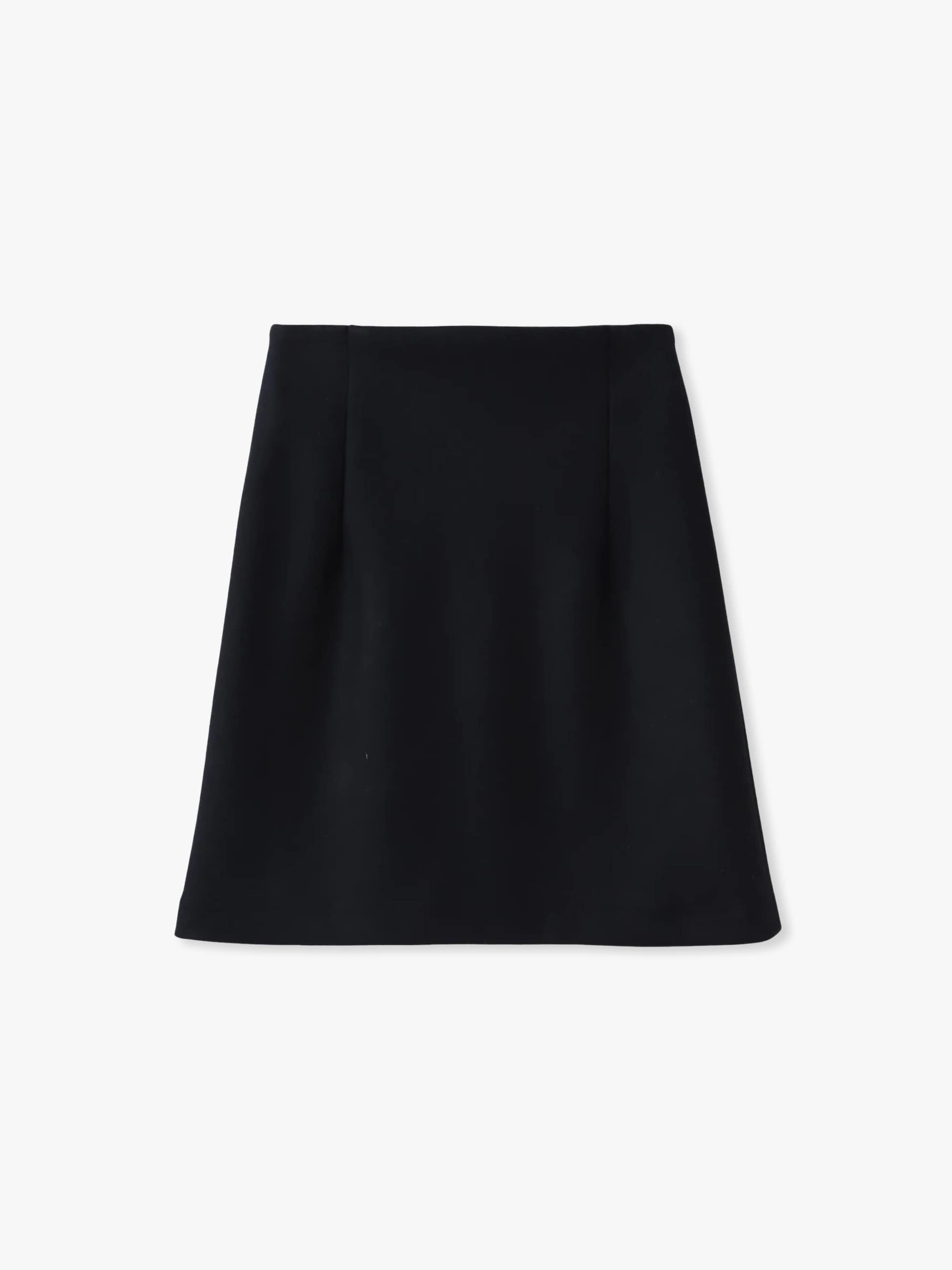 ウールをたっぷりと使用し別注したミニスカートは、膝上の丈感が潔く、前後に施したダーツにより綺麗なAラインシルエットを表現しています。レッドとブルーの鮮やかなカラーはコーディネートを華やかに、上品なブラックはカラータイツとも好相性で、重くなりすぎず抜け感をつくります。オーバーサイズのニットやシャツなど、様々なトップスとバランス良くお楽しみいただけます。