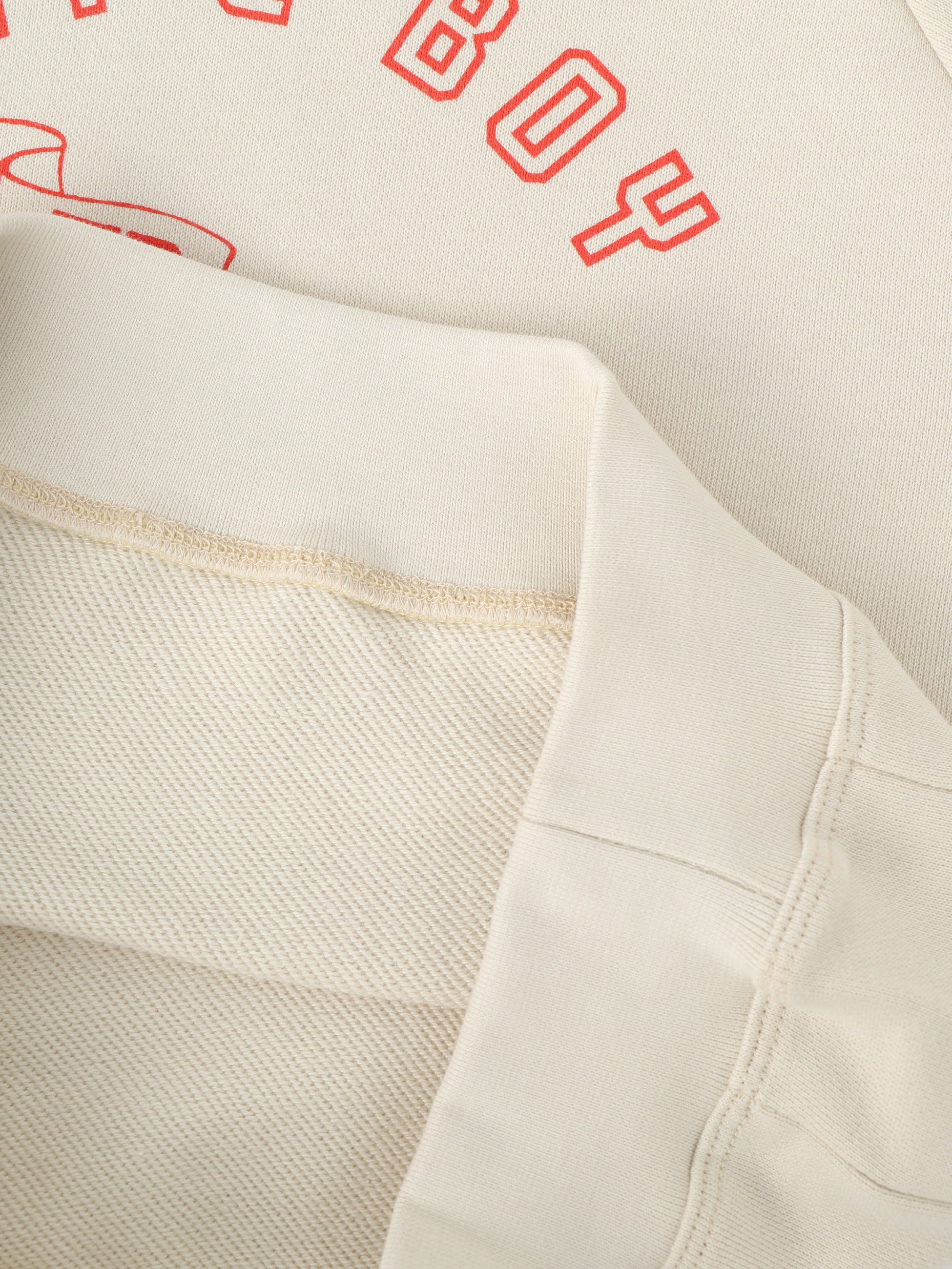 オフホワイトにレッドのグラフィックが映えるスウェットシャツは、裏毛仕様で長いシーズン快適に着用いただけます。ボトムスを選ばないデザインで、スカートやパンツはもちろん、ワンピースとのレイヤードなど、幅広いスタイリングに活躍します。