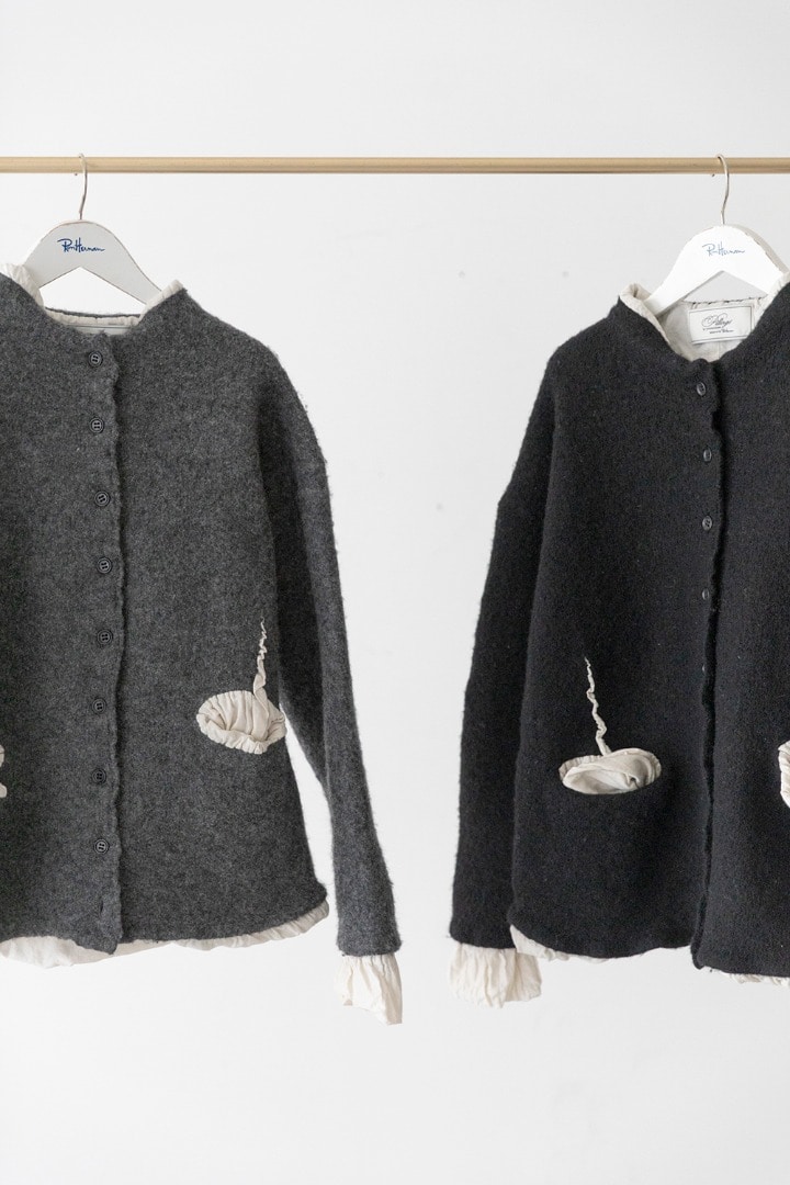 ニット愛好家たちの熱意とものづくりへのこだわりが、温かみとやさしさを宿した一枚へと昇華させる。