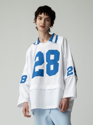 サーカ メイク セパレート スリーブ & ヘム ジャージートップ(ホワイト/ブルー)