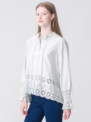 インディゴ カットワーク ブラウス(ブルー/ライトブルー)