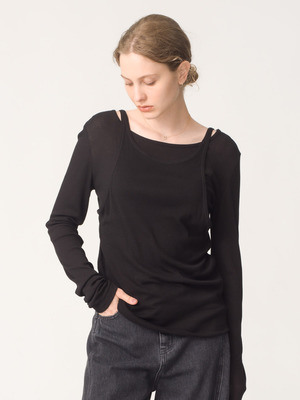レイヤード ロングスリーブ トップ(グレー/ブラック)