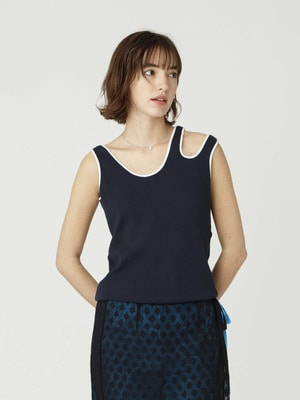 ベアリブ スリーブレス トップ(オフホワイト/ブラック/ブルー)
