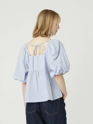 シアサッカー ブラウス(ホワイト/ブルー)