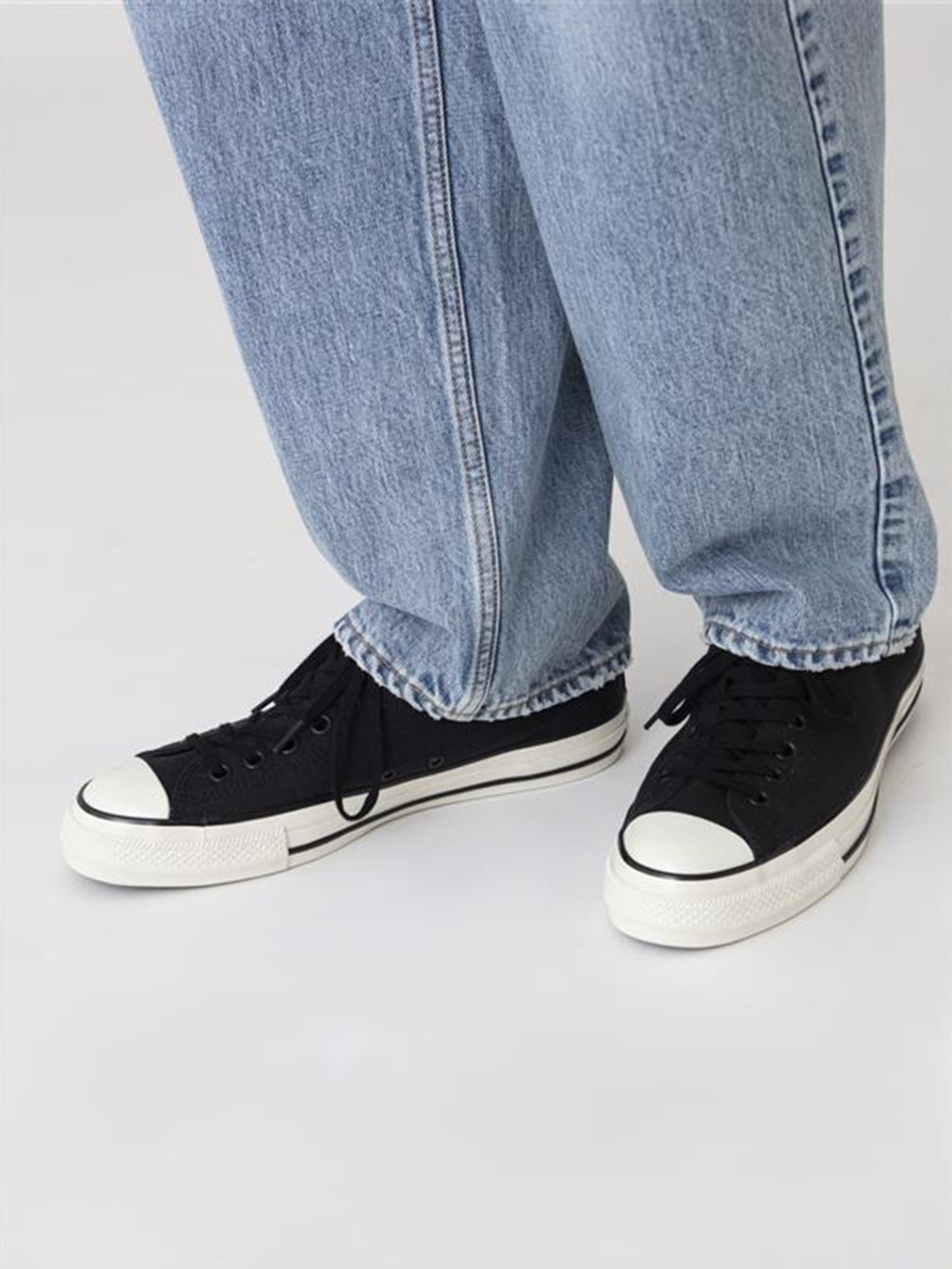 - CONVERSEとの別注企画より、クラシックなデザインが落とし込まれたAll Star Aged Oxを別注しました。シューズ全体をブラックで統一したソリッドな表情へ仕上げることで、コーディネートに馴染みやすい一足へ仕上げています。また、紐を外しても履けるスリップ仕様や、クッション性に優れた高密度ウレタンフォームとラバースポンジのインソールを配した快適な履き心地、そしてタンラベルとインソールに配されたCONVERSEとRHCによる特別なダブルネームロゴも魅力のひとつ。さらに、ブラックとホワイトのシューレースをそれぞれ付属しており、様々なスタイリングに合わせて表情を変化させられることもポイント。CONVERSEの確かなプロダクトにRHCのエッセンスがミックスされた、タウンユースからスポーツまで様々なシーンの足元を彩るスペシャルなアイテムをお楽しみください。