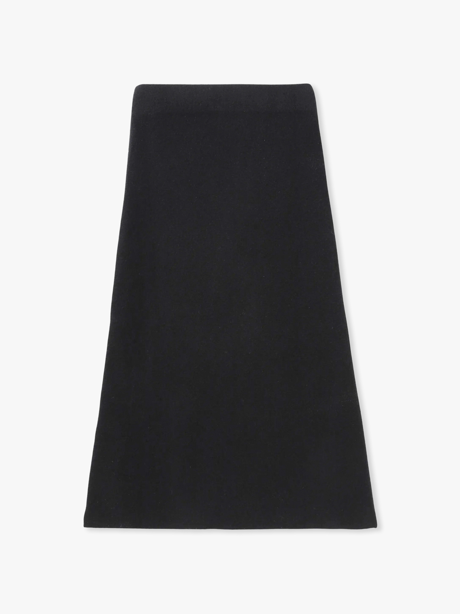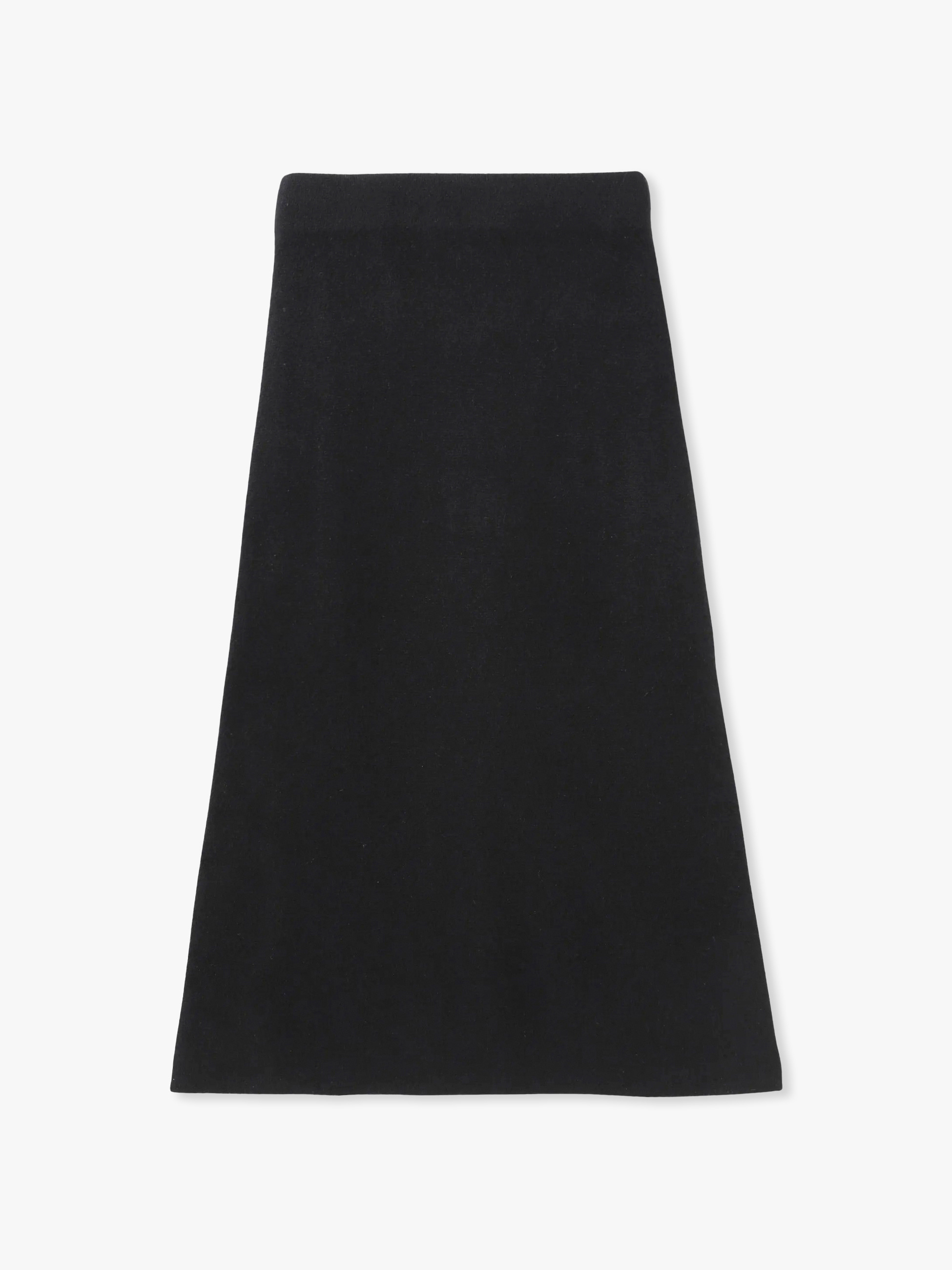 カシミヤを100%贅沢に使用したスカートは、上質な素材感と美しいAラインシルエットが上品な印象を醸します。ウエストはゴム仕様で締め付けがなく、素肌にも心地良い非常にやわらかい肌触りで、保温性も高いため寒いシーズンのスタイリングの幅も広がります。
