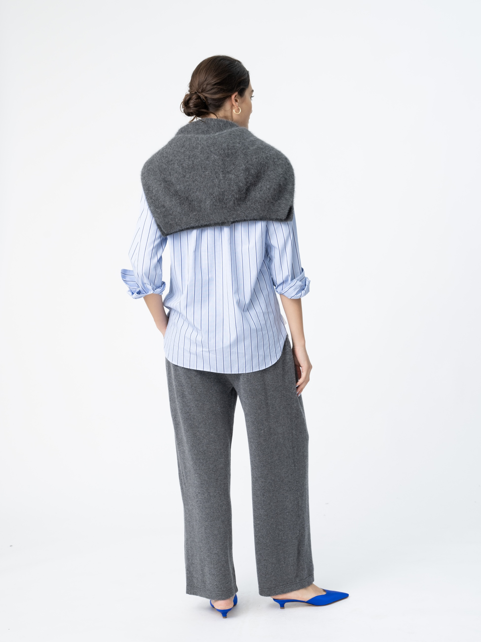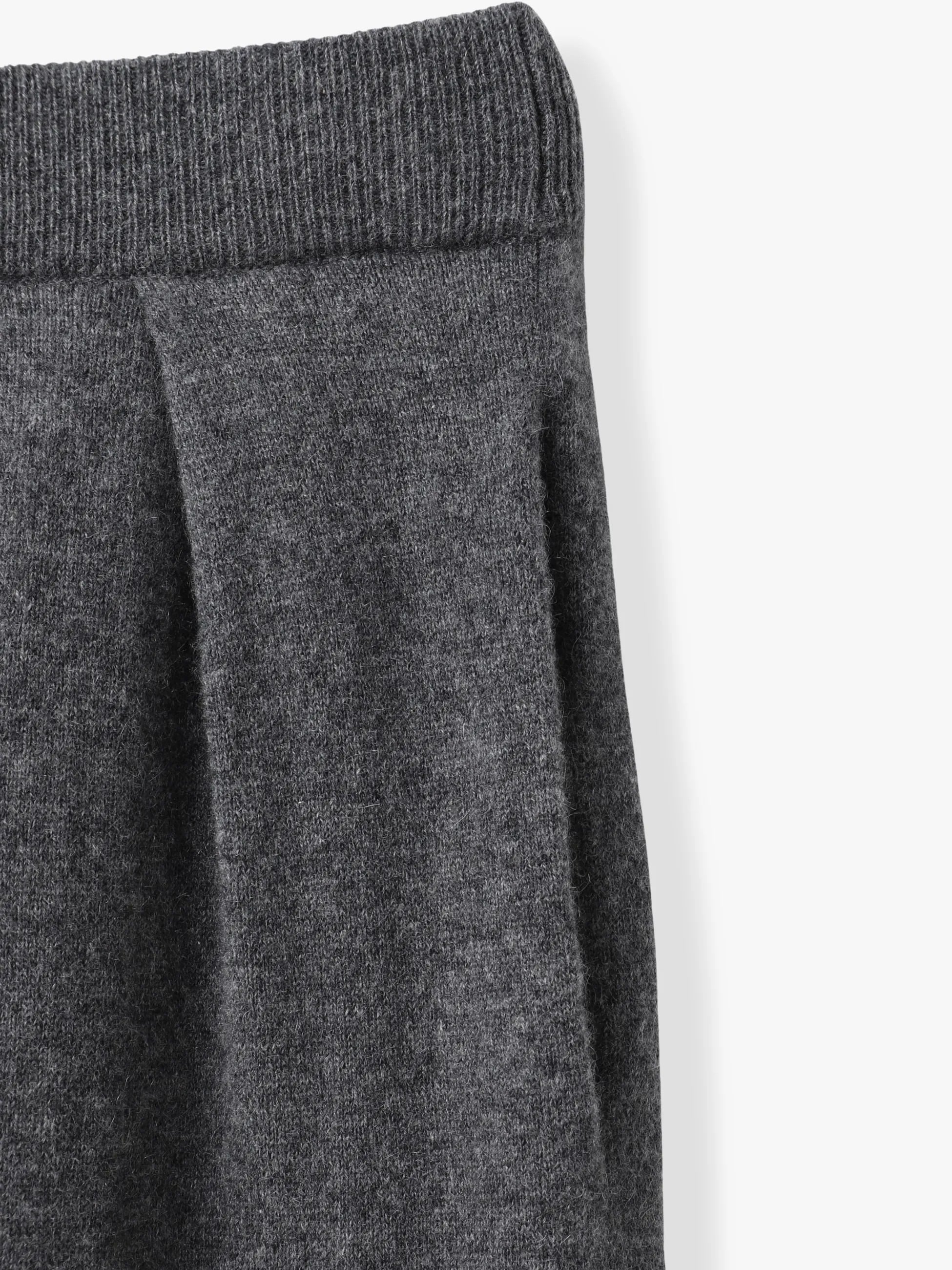 - カシミヤを100%贅沢に使用したニットパンツは、高い保温性と極上の着心地で、肌寒いシーズンにも重宝します。ウエスト部分はフロントにタックが施されているため程よいフィット感があり、リラクシーなシルエットでありながらも上質な風合いが、大人のカジュアルスタイルにマッチします。