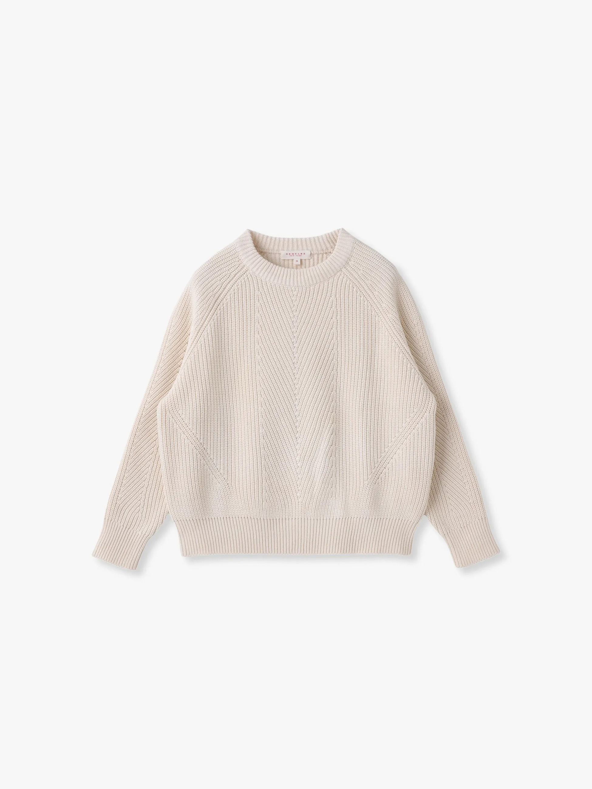 DEMYLEEの定番であるChelseaモデルをコットン素材にしたプルオーバー。綺麗なクルーネックラインと表情豊かな編み地が特徴の飽きのこないデザインで、長く着ていただけます。コンパクトなシルエットで、合わせるものを選ばずデイリーに活躍する一枚です。