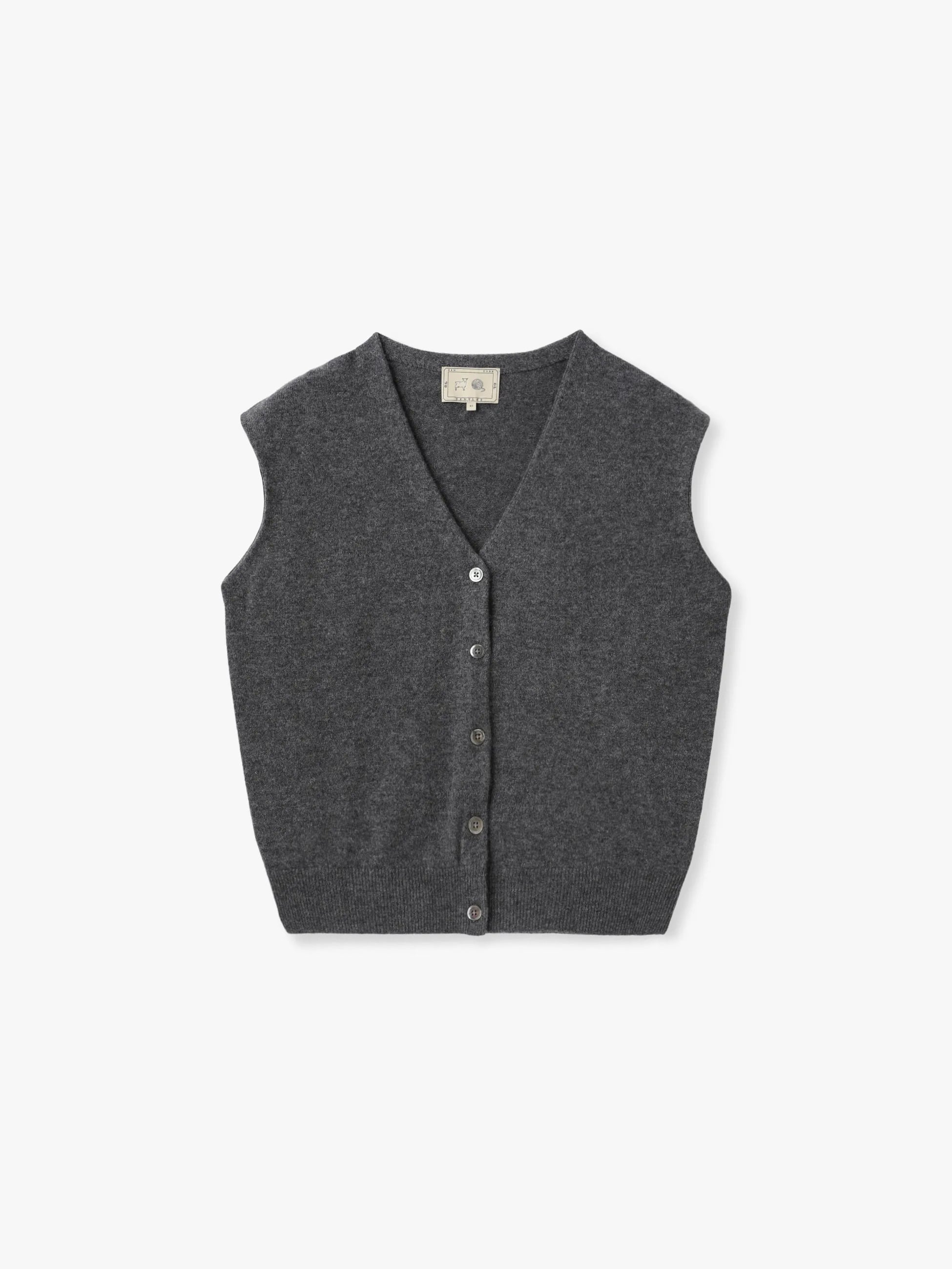 カシミヤを100%贅沢に使用したVネックベストは、ふわっと軽やかな肌触りであたたかく、ややゆったりとしたサイズ感はシャツやカットソー、ドレスなどとのレイヤードスタイルと好バランスです。すっきりと開いたVネックが大人っぽく、上品な雰囲気を演出します。