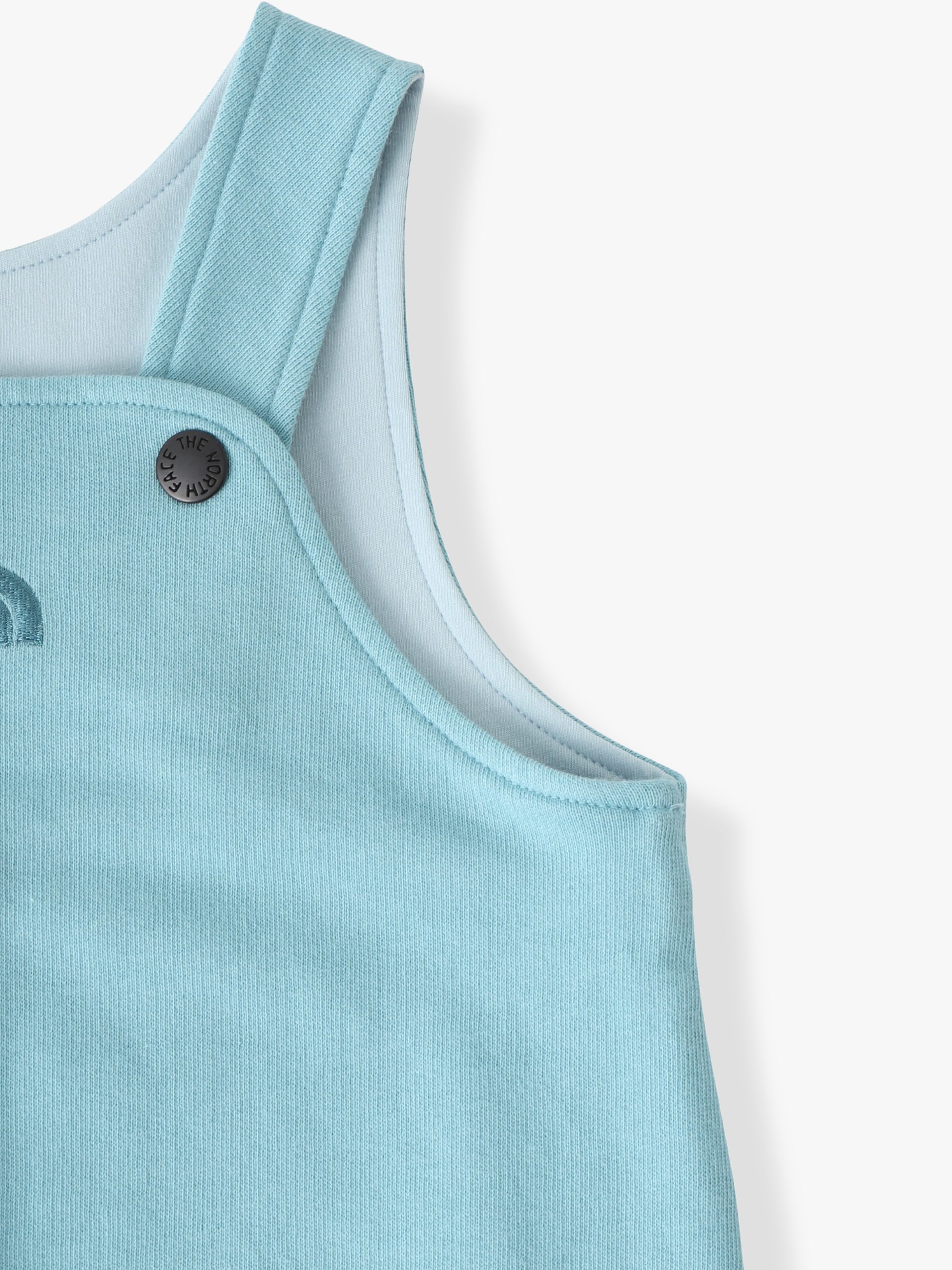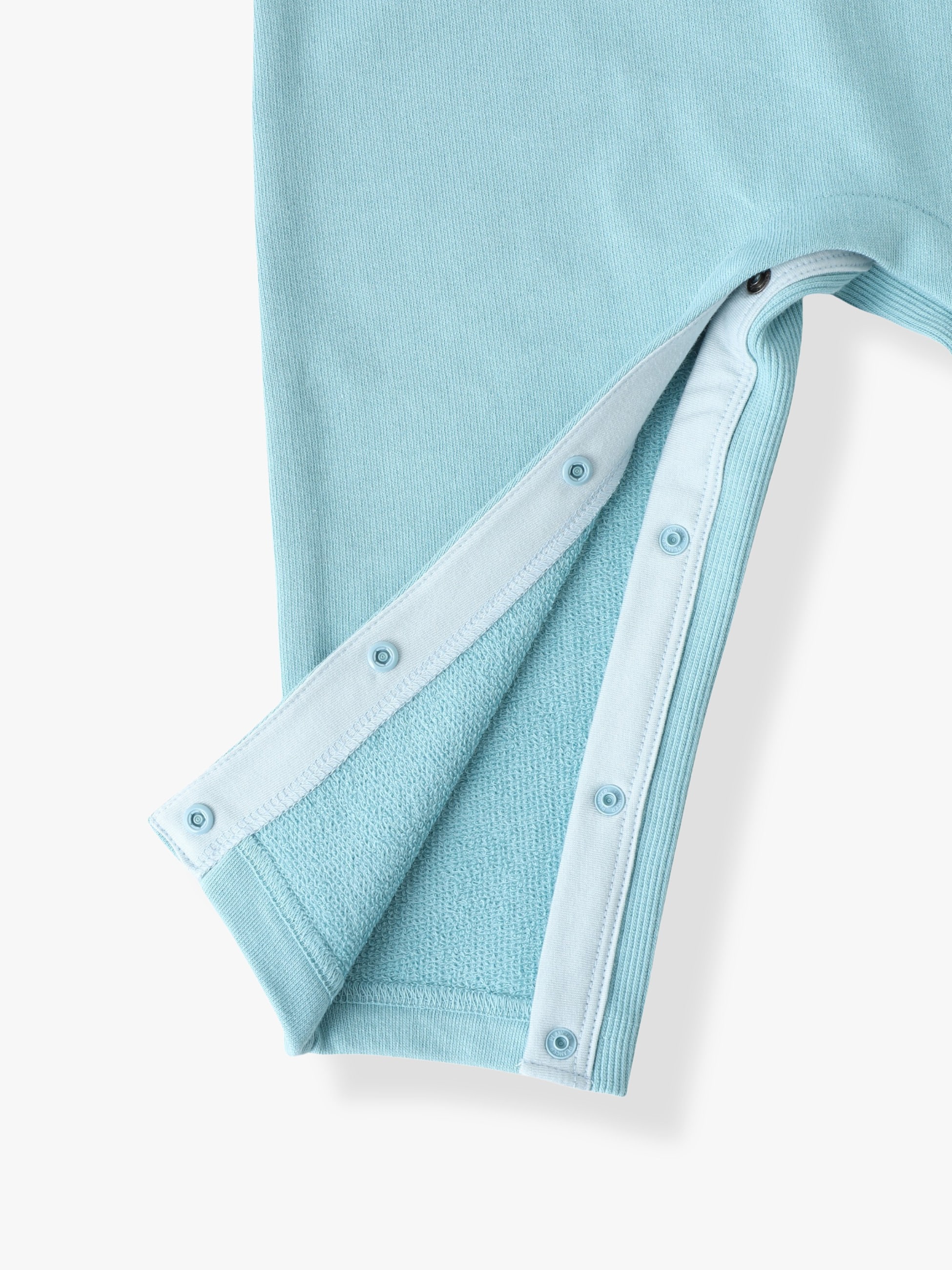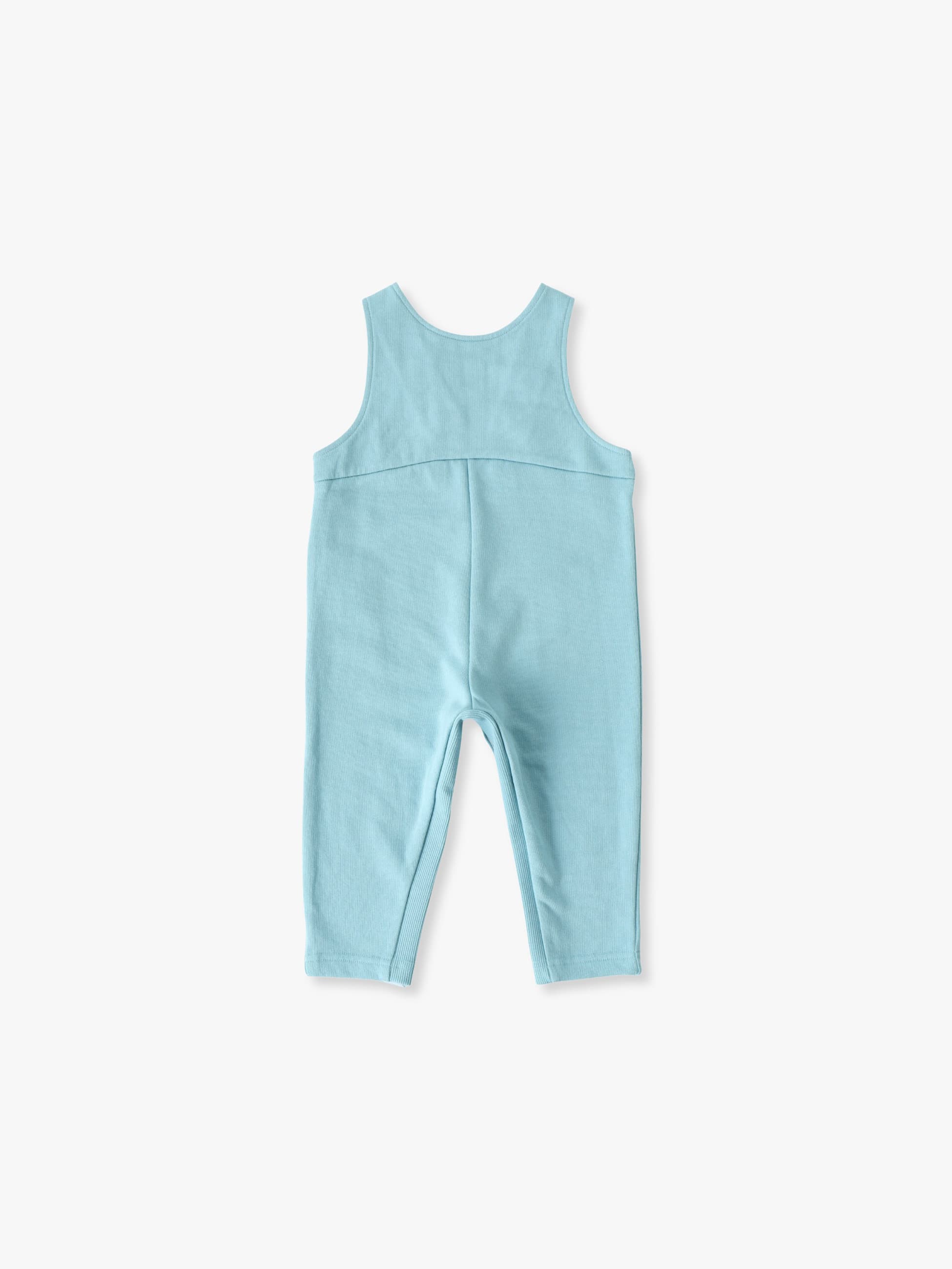 裏毛仕様で長いシーズン着やすいスウェットオーバーオールは、コットン素材でやわらかく快適な着心地です。ショルダーベルトはボタンでサイズ調整ができ、股部分はスナップボタン開きでお着替えもスムーズです。
