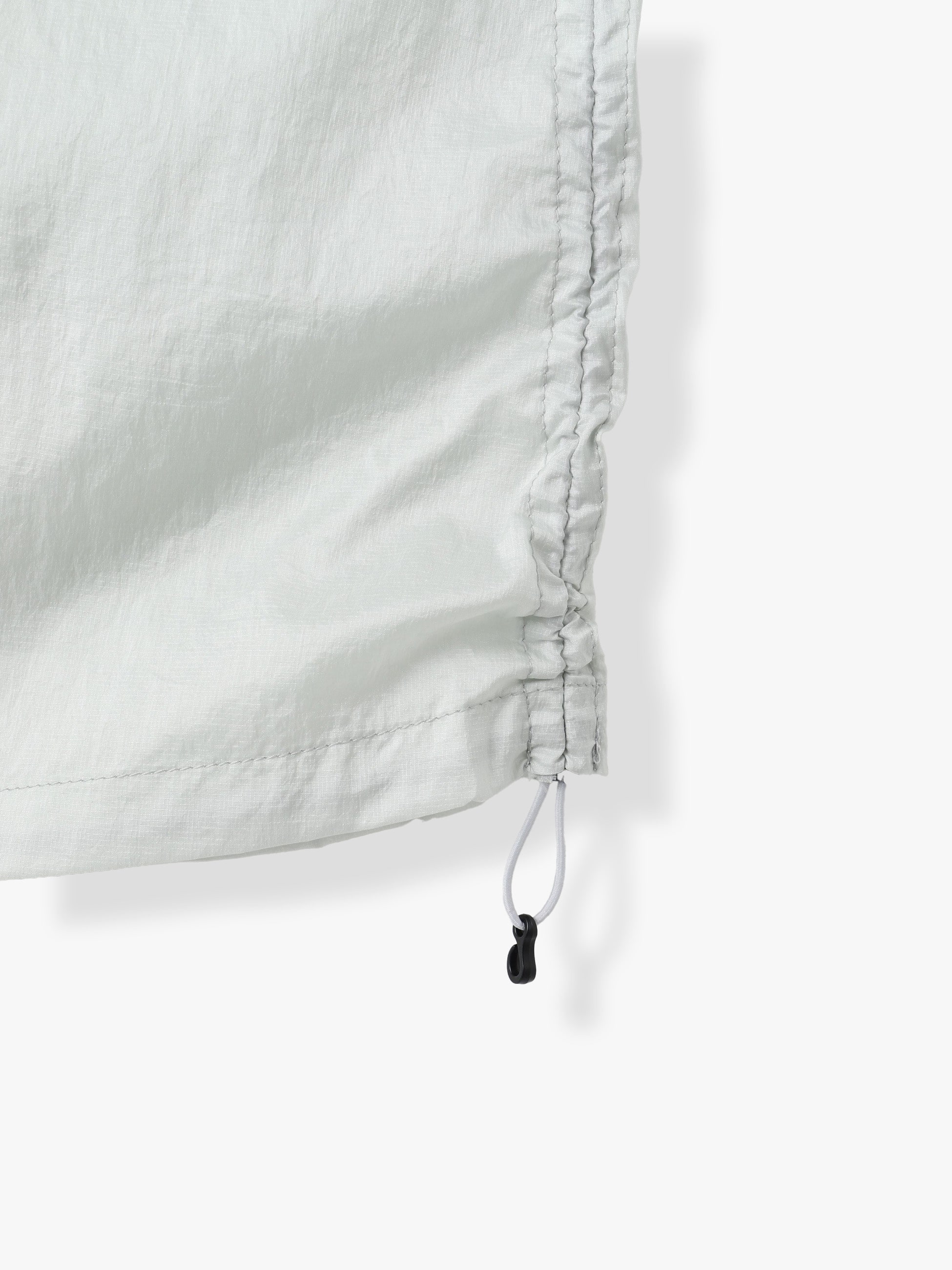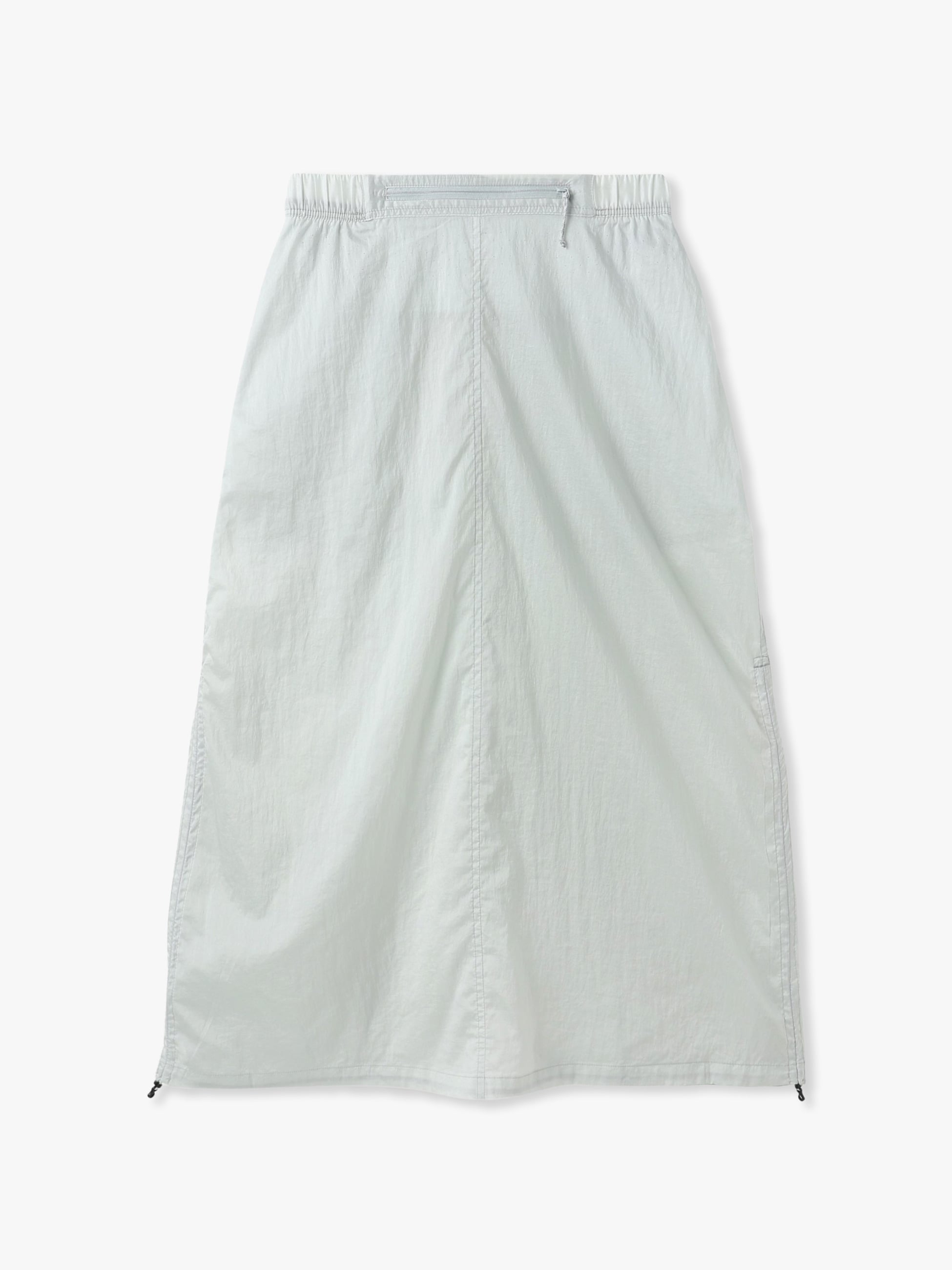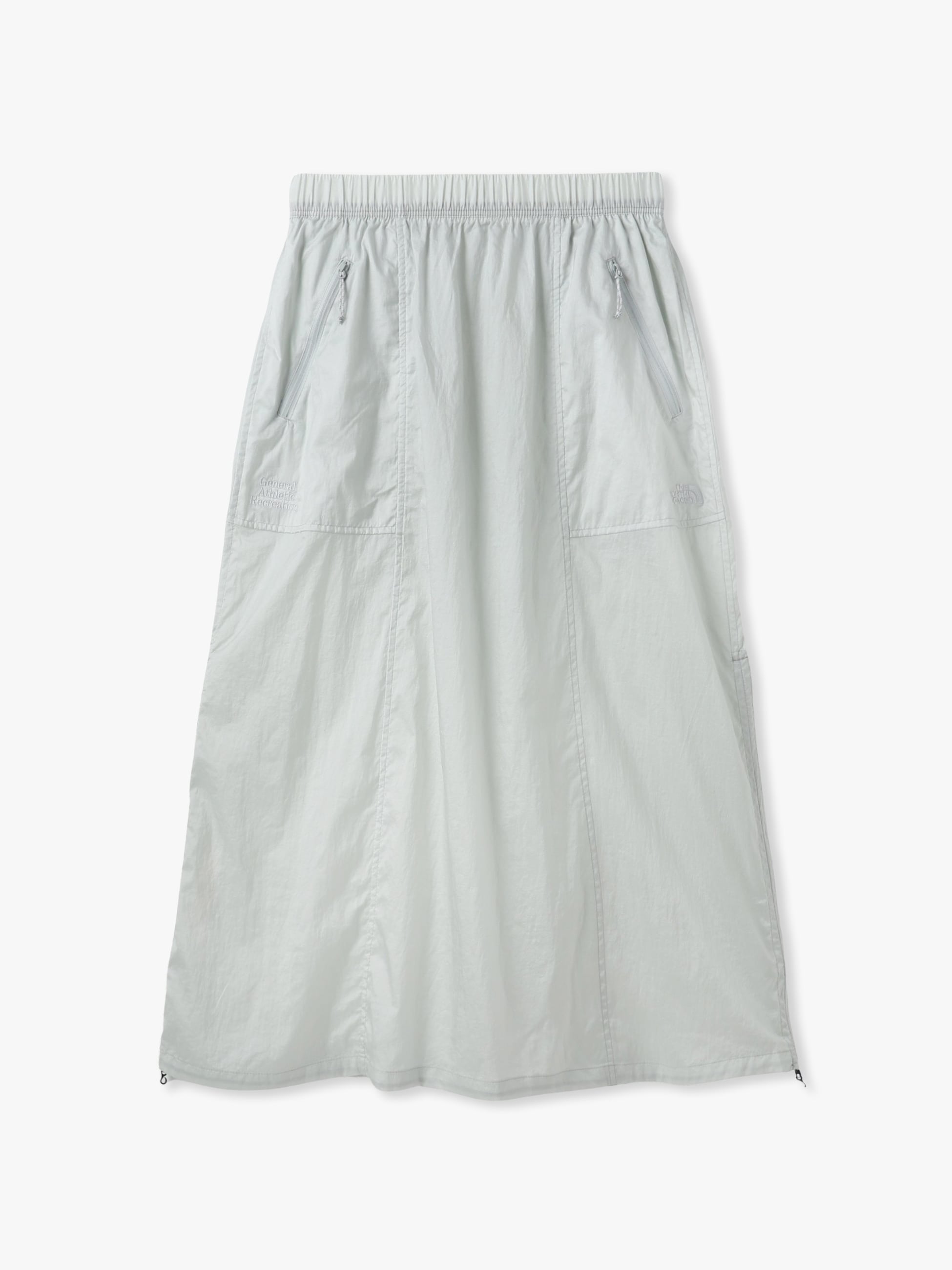 - 衣服内のムレを排出し、快適な着心地をキープするスカートは、芯部に吸放湿ポリマーを配置した特殊なナイロン素材により、湿度の高いシーズンの不快感を軽減します。裾のドローコードによりシルエットの調節も可能です。自然なシワ感のある30デニールナイロン生地は軽量で、ライトグレーはやや透け感があるため、ボトムを合わせたレイヤードスタイルもお楽しみいただけます。