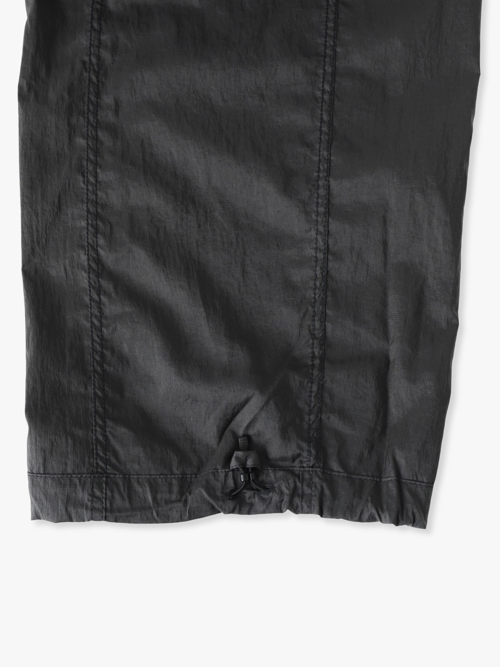 - 衣服内のムレを排出し、快適な着心地をキープするワイドパンツは、芯部に吸放湿ポリマーを配置した特殊なナイロン素材により、湿度の高いシーズンの不快感を軽減します。裾のドローコードによりフィット感の調節も可能です。自然なシワ感のある30デニールナイロン生地は軽量で、ウエストから膝上にメッシュの裏地が配置されています。ゆったりとしたシルエットで、アウトドアなどのアクティブなお出掛けにも重宝します。