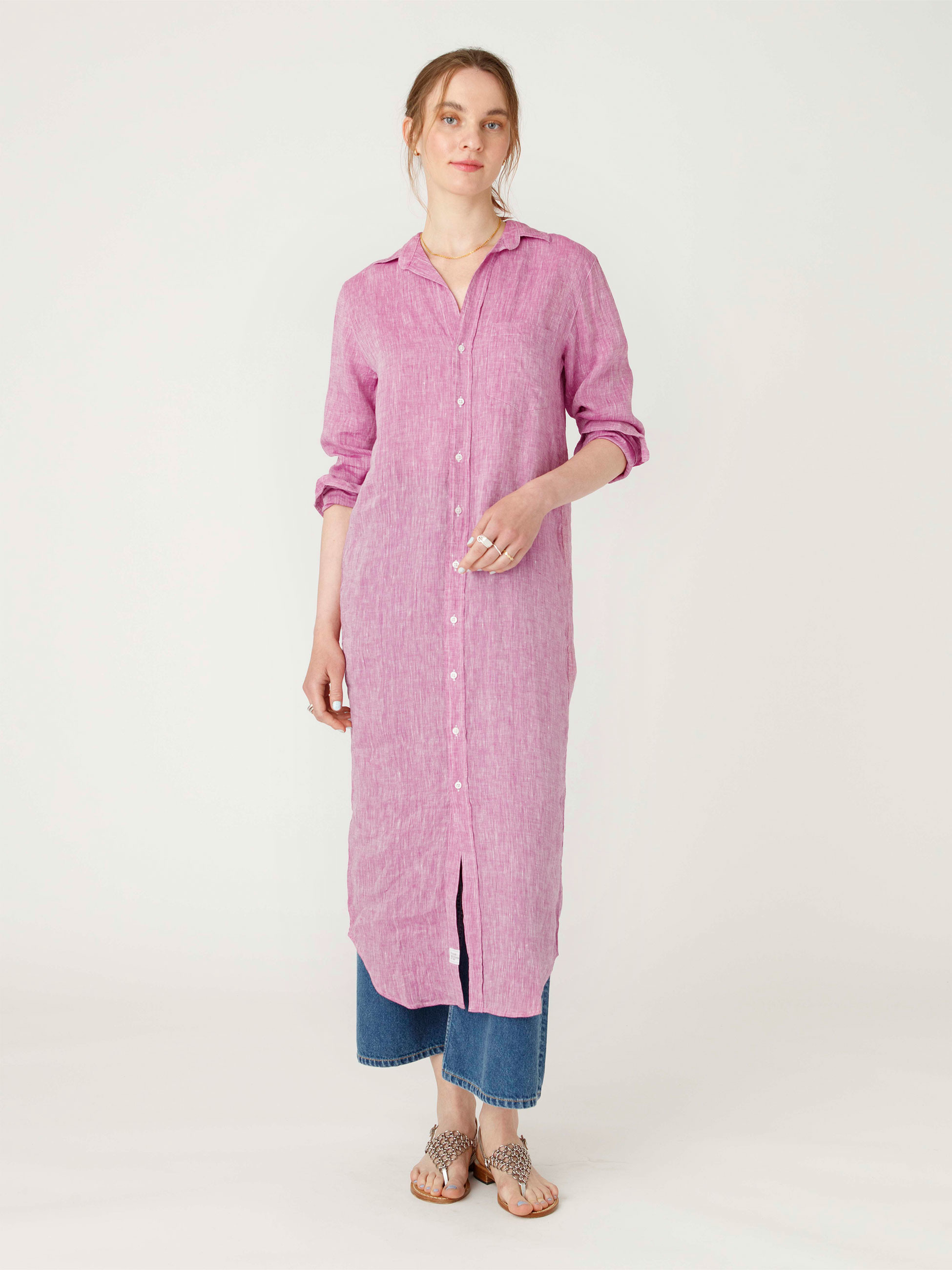 ストンと落ちるスタイリッシュなロングシルエットの“RORY”シャツドレスは、軽やかなリネン素材を使用しています。前を開けて羽織りとしてや、ベルトマークをして丈感で遊んだり、腰に巻いてスカートのように着たりと、さまざまなスタイルをお楽しみいただけます。Frank&Eileenのその他のアイテムもございます。