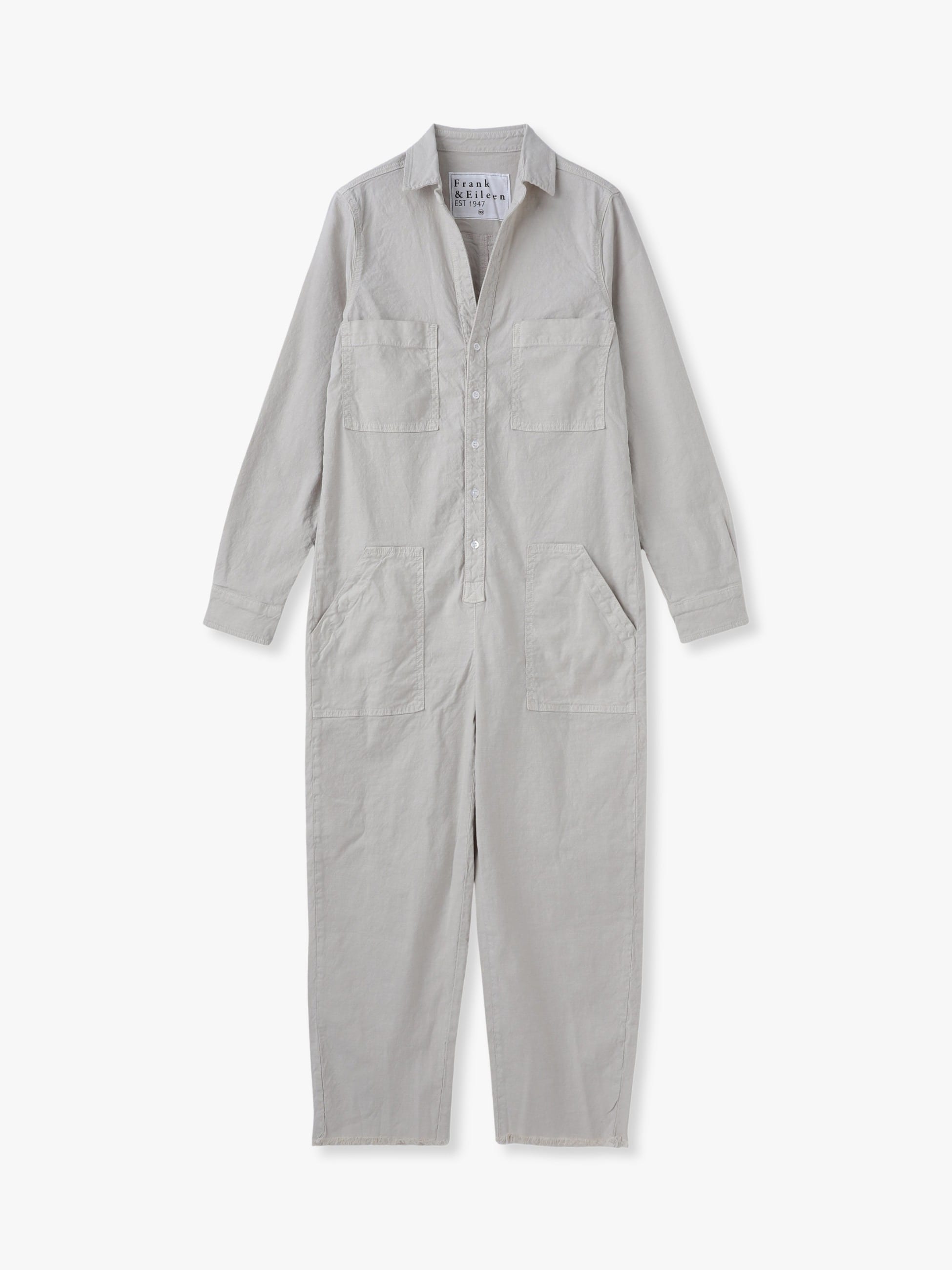 - きれいなシルエットが特徴のジャンプスーツは、ナチュラルでさらりとしたコットンリネン生地で、伸縮性にも優れているので、ストレスフリーな着心地に。クロップド丈の切りっぱなしのデザインで、程よい抜け感のある、大人のカジュアルスタイルが完成します。1枚で着るのはもちろん、袖を腰に巻いてパンツスタイルにしたりと、さまざまなアレンジをお楽しみいただけます。