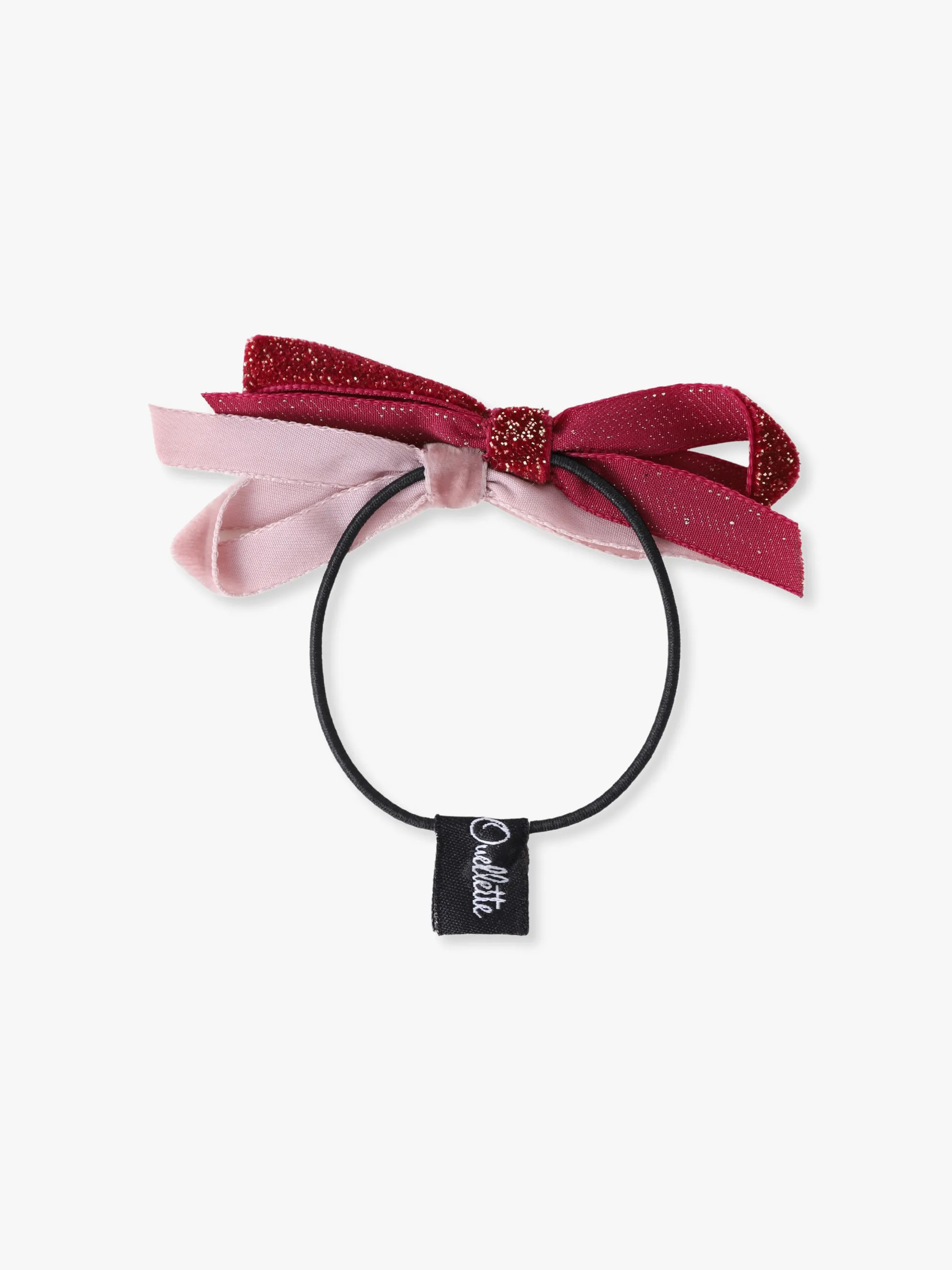 - 煌めくラメが散りばめられたベルベットリボンとベーシックなベルベットリボンのついたツートーンのヘアゴムは、小ぶりなサイズ感でどんなスタイリングにもマッチし、さりげない可愛らしさをプラスします。アップスタイルにも映え、デイリーからドレスアップまで幅広くカバーするアイテムです。