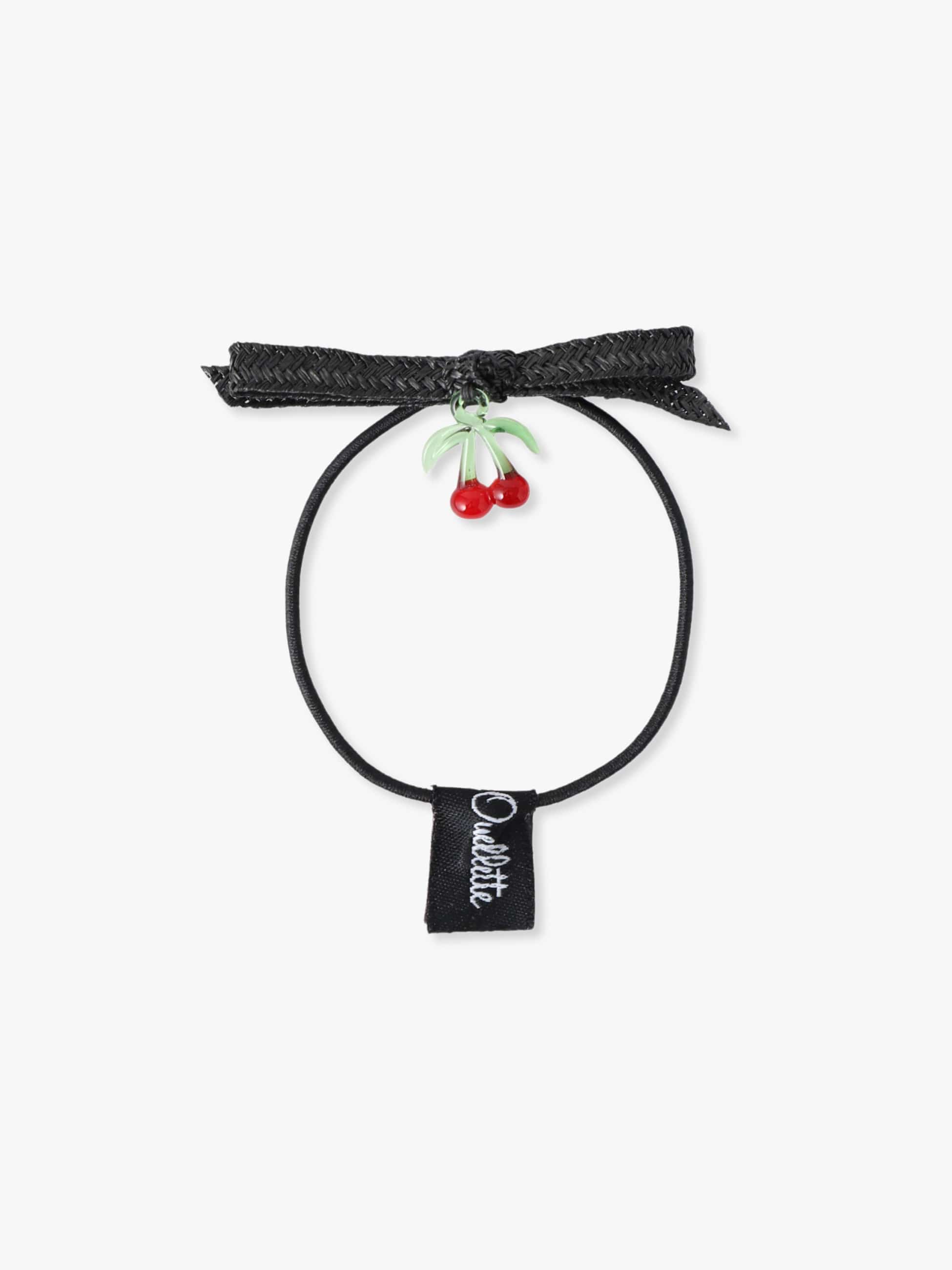 - ストロー素材のリボンにフルーツモチーフがあしらわれたヘアゴムは、見た目にも愛らしく、スタイリングに遊び心をプラスします。