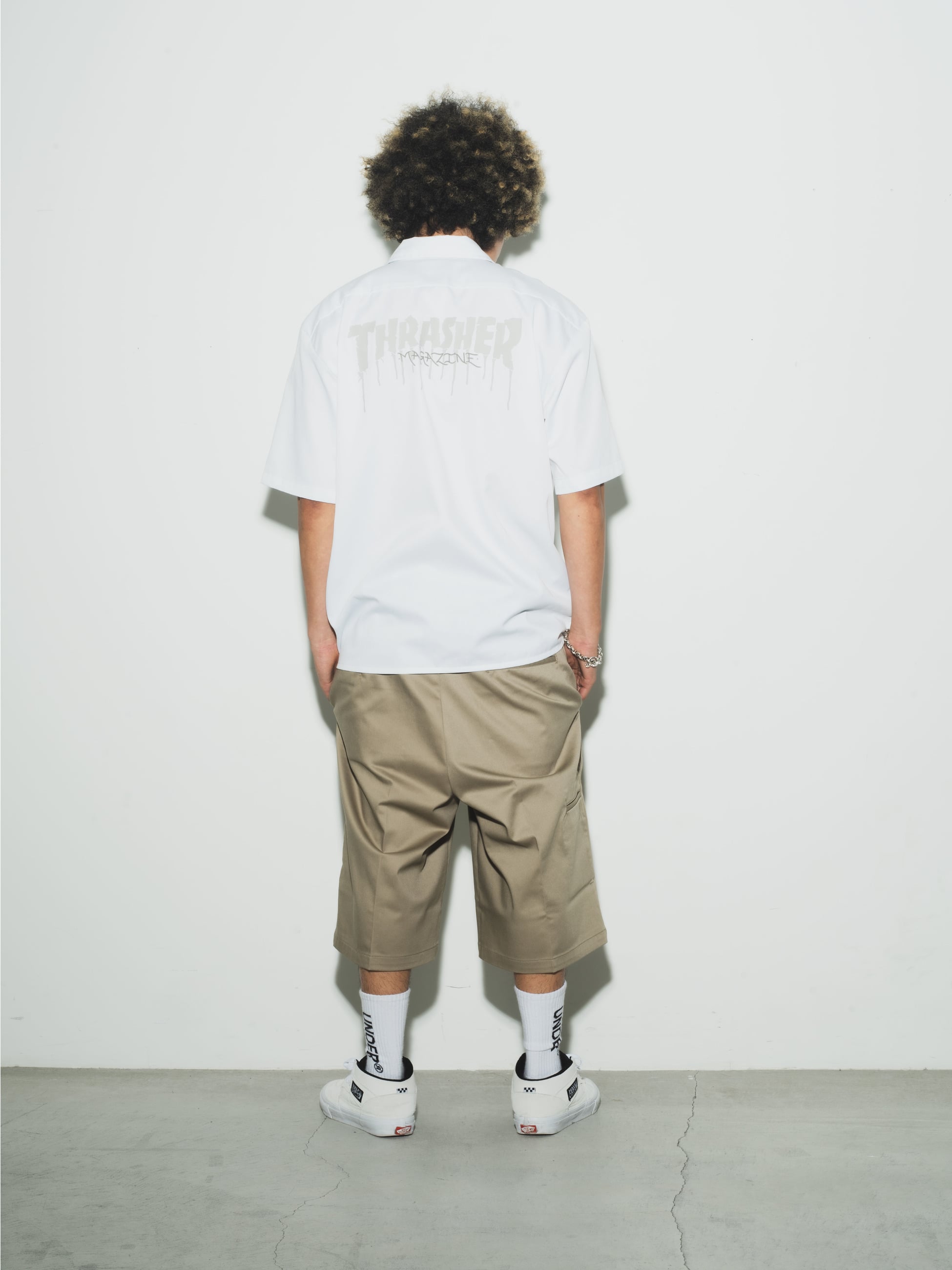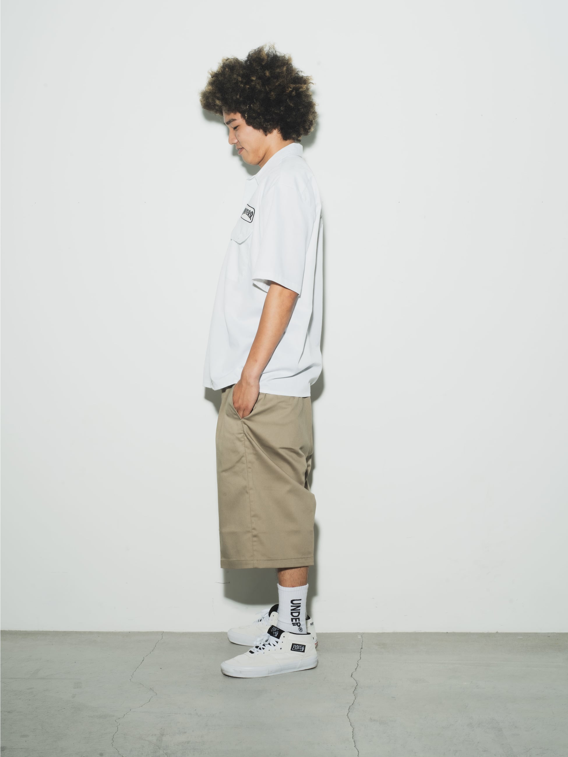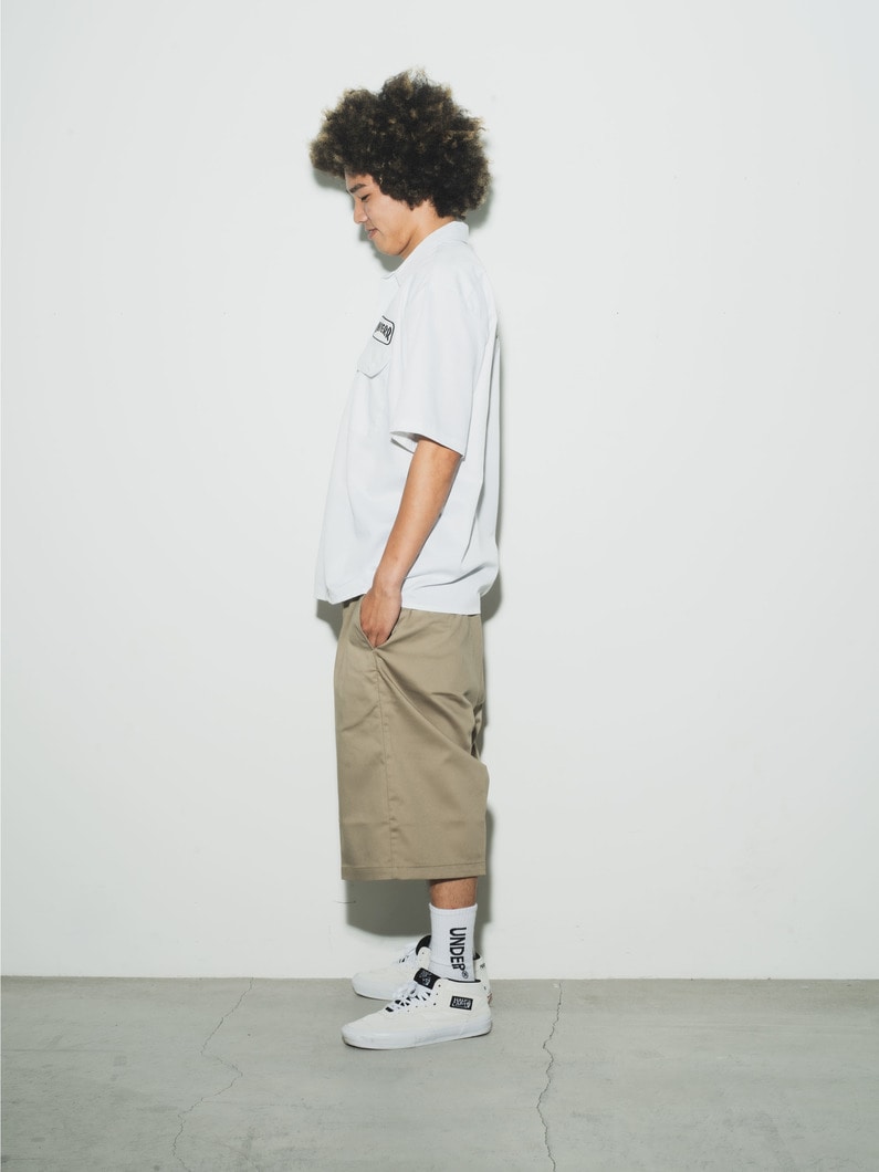 UNDER Rのためだけに作られた、「Dickies」の874 Flex Pantsをベースにしたワークショートパンツの登場です。通常の874パンツよりもライトウェイトな8.2オンスのポリエステルコットン生地を使用し、ひざ丈の長めに設定されたレングスは、コーディネートのアクセントになります。また、優れた耐久性や豊富なカラーリングも魅力のひとつ。さらに、DickiesとUNDER RのWネームによる帯を配した細部までこだわった作りです。Dickiesの確かなファブリックにUNDER Rのエッセンスが合わさったスペシャルなアイテムをお楽しみください。