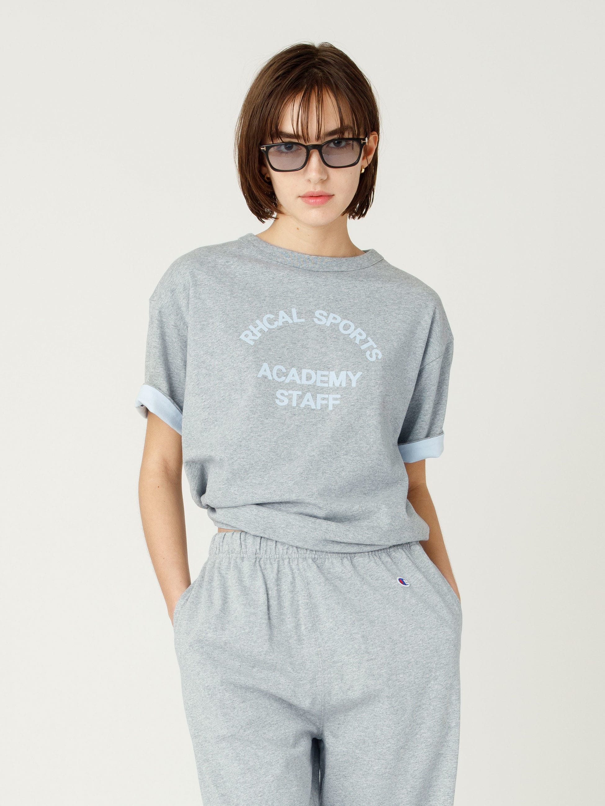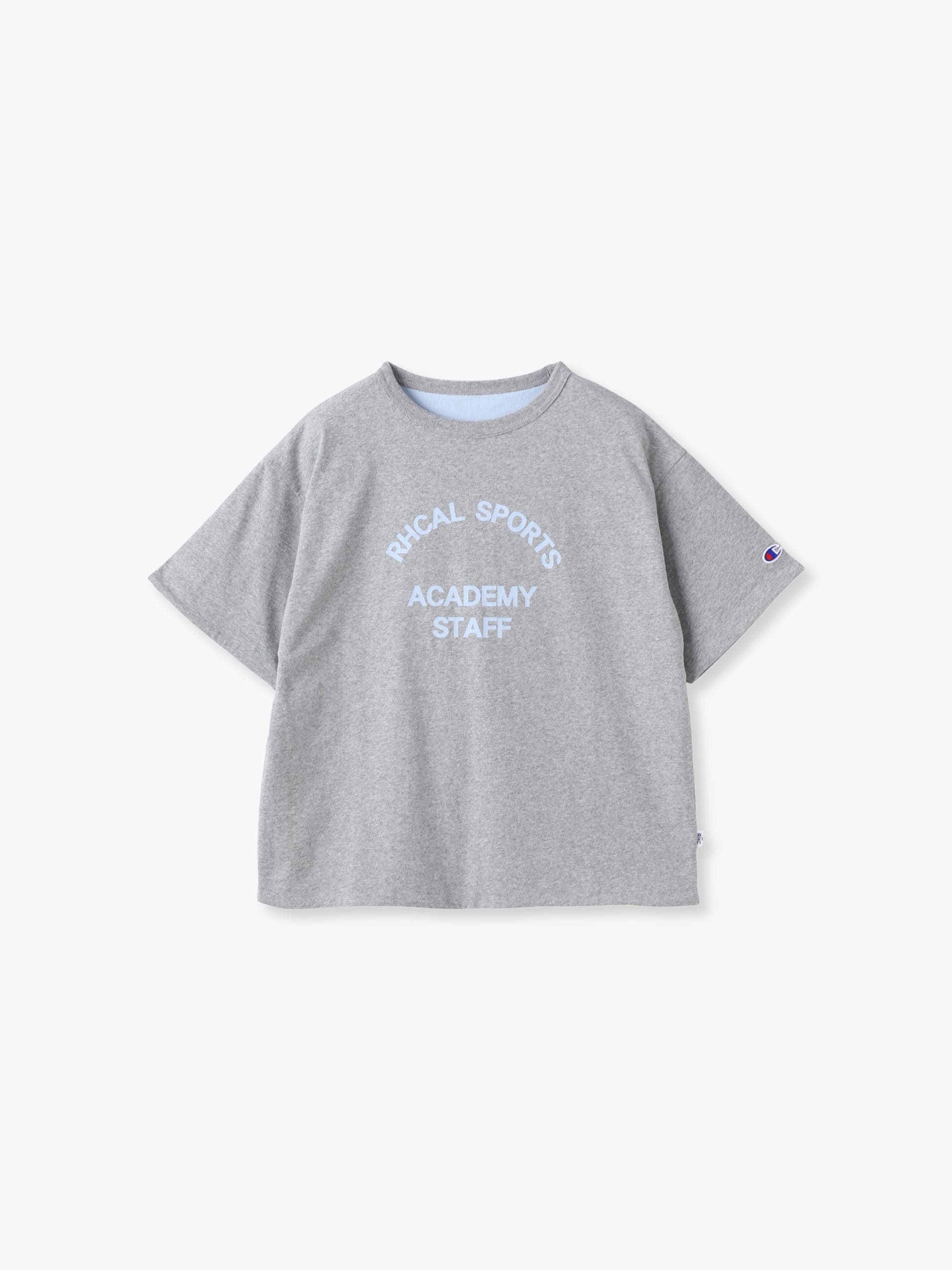 Championとの人気のコラボレーションより、2026SSシーズンの新作が登場です。ドロップショルダーのリラクシーなリバーシブルTシャツは、1940年代にチーム分けに使用する用途で、両面で着用ができるTシャツの作製依頼があった背景をデザインに込め、架空のスポーツアカデミー"RHCAL SPORTS ACCADEMY"のスタッフTシャツをイメージ。表面はロゴデザインを前面に配し、裏面はカラーボトムとも合わせやすいよう、シンプルなデザインにしています。袖をロールアップすると、レイヤードスタイルのような雰囲気もお楽しみいただけます。同素材のイージーパンツの展開もございます。