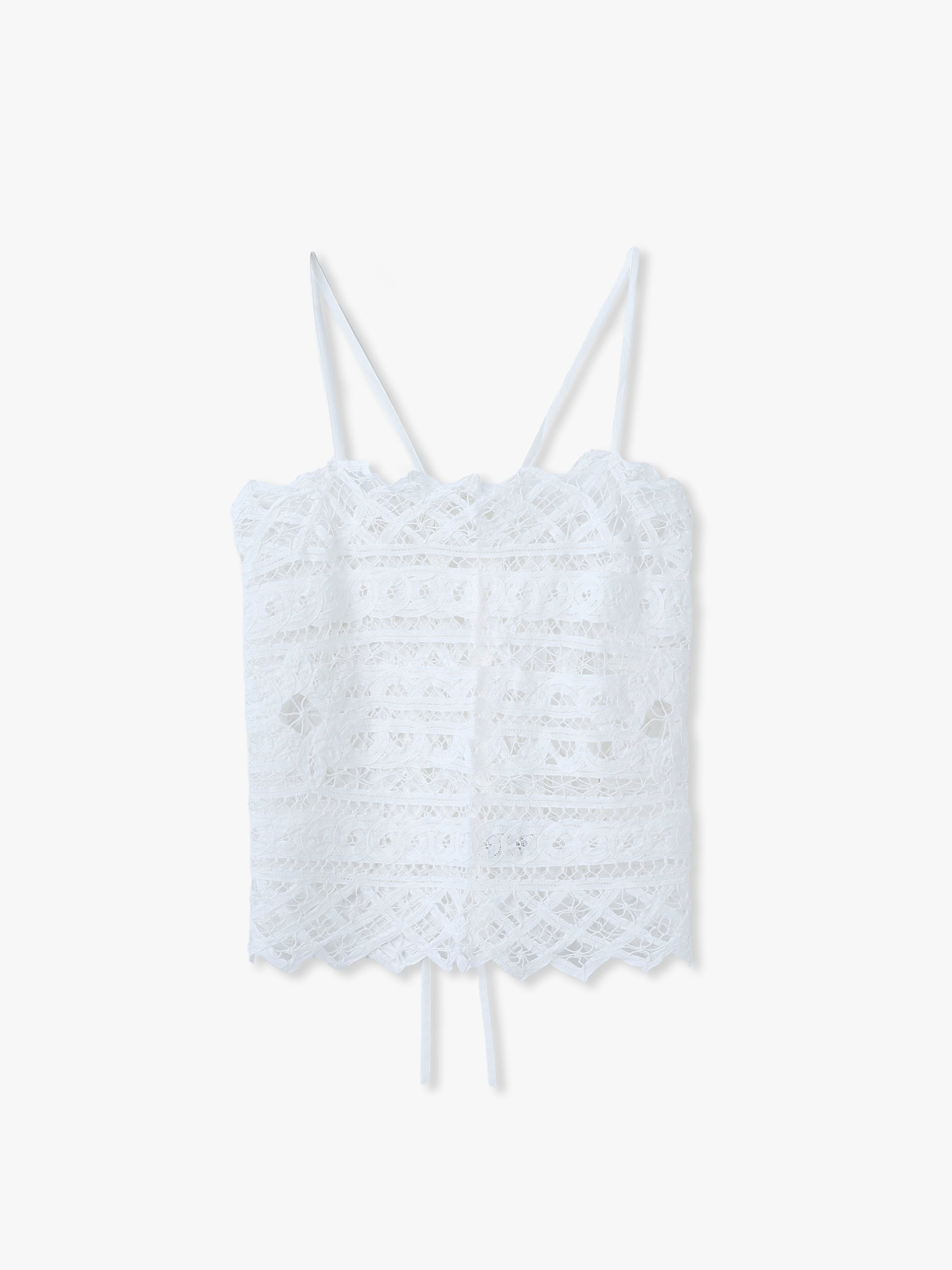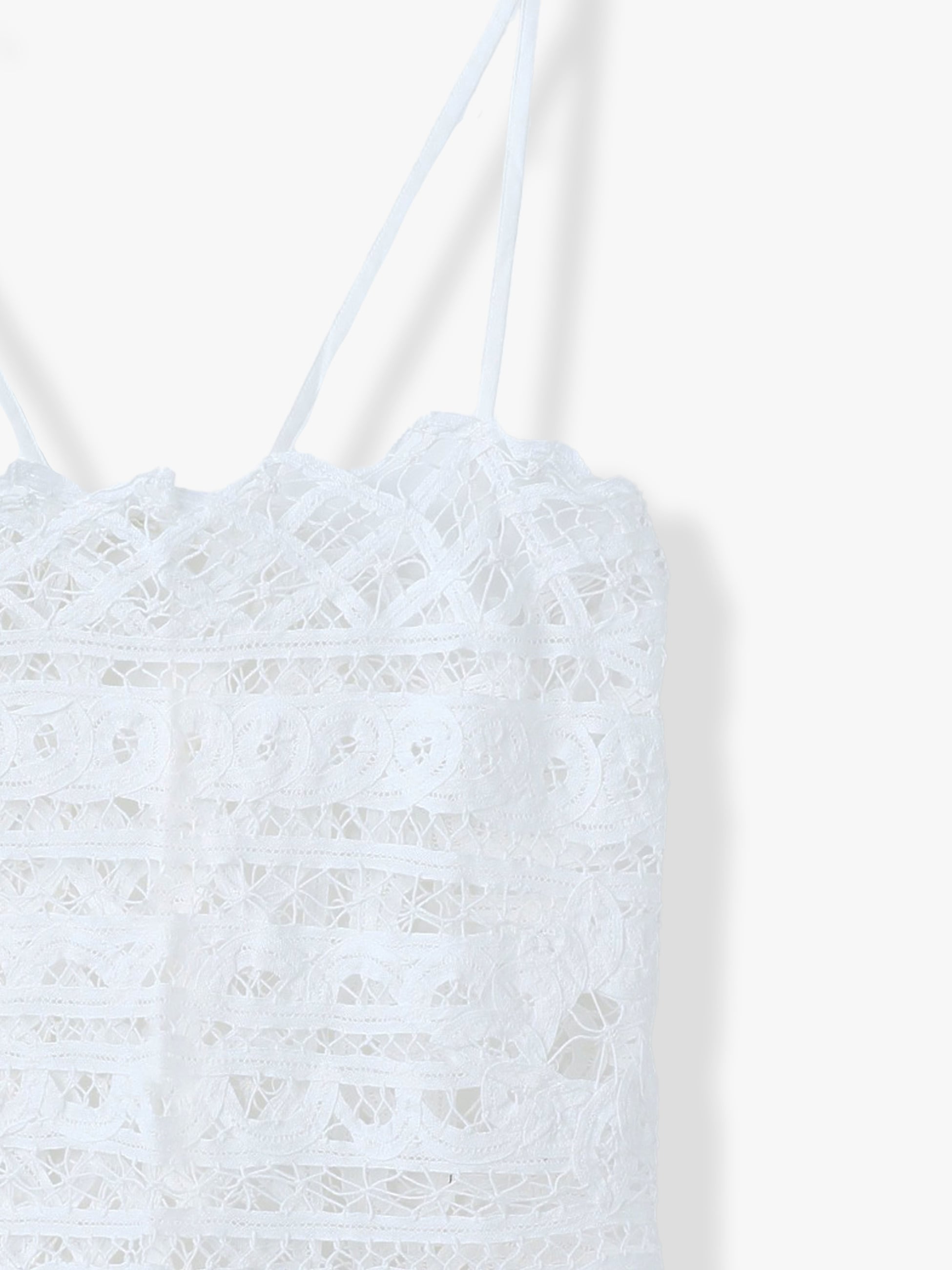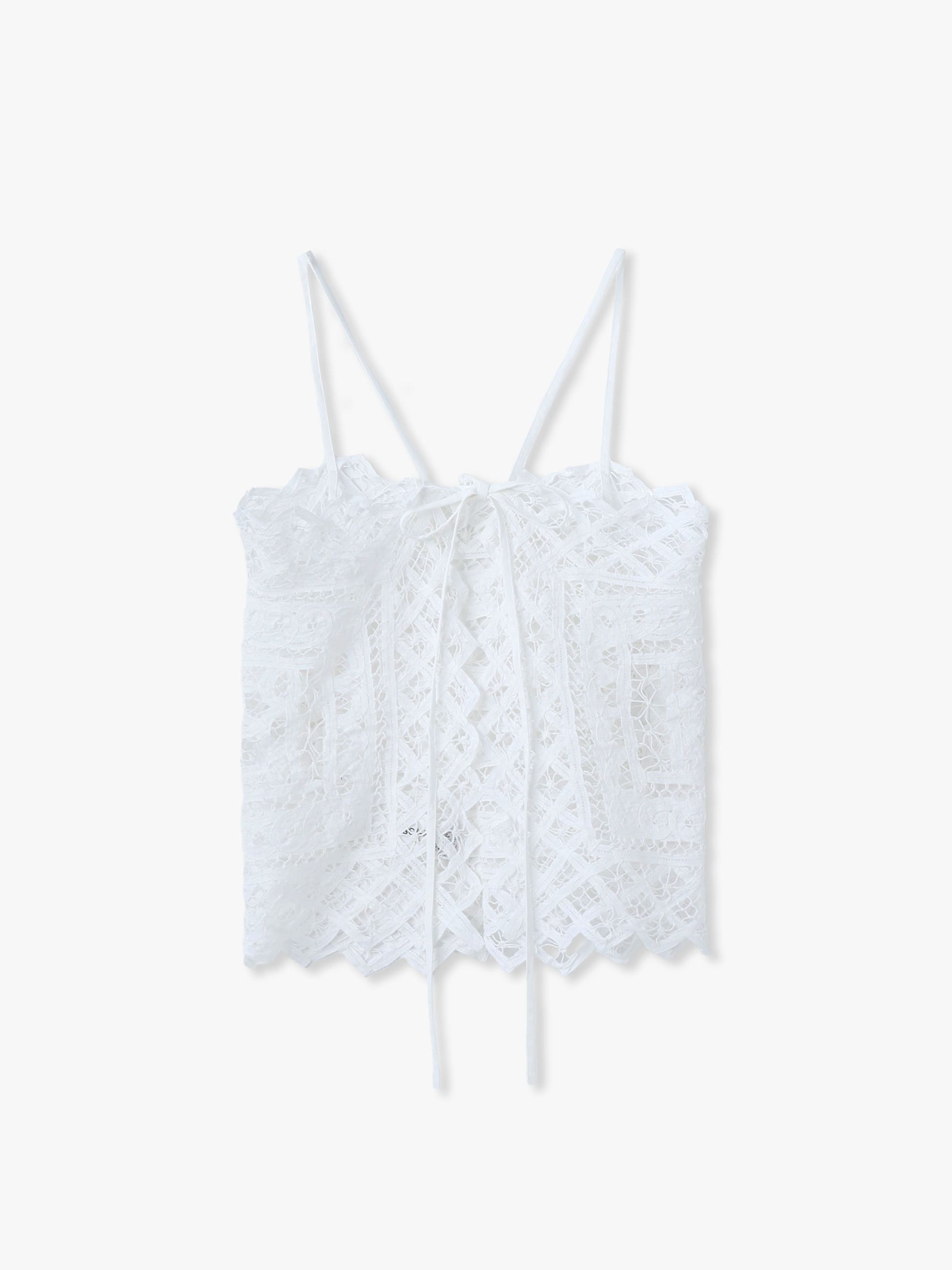 - 立体感のあるコードレースを贅沢に使用したキャミソールトップは、重なるレースが織りなすシルエットが美しく、華やかなスタイリングを演出します。Tシャツやスリーブレストップなどのシンプルなアイテムはもちろん、腰に巻くなど、アレンジを利かせた遊び心のあるレイヤードスタイルもおすすめです。