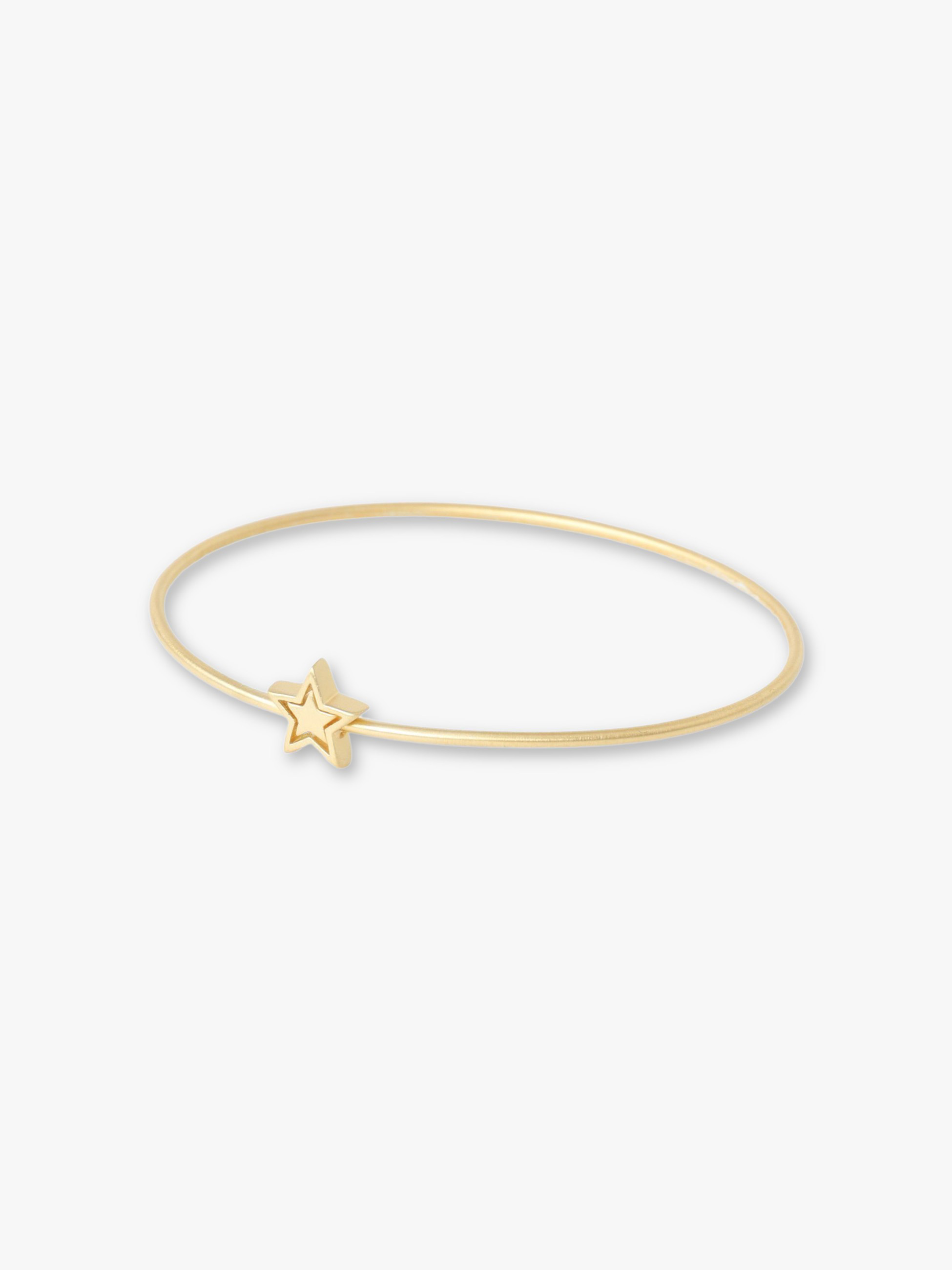 華奢なラインにMarie-Helene de Taillacらしいスターモチーフがあしらわれたバングルは、モチーフ部分をスライドして着脱できる仕様で、贅沢に使用した、肌馴染みの良いしっとりとしたイエローゴールドが上質感をプラスします。お手持ちのブレスレットとのレイヤードも楽しくなるアイテムです。