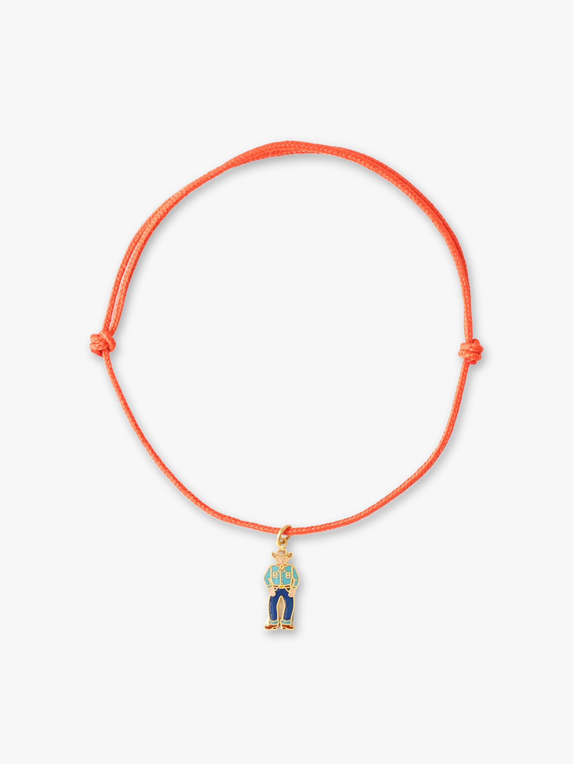 - エナメル加工されたカウボーイモチーフのペンダントチャームは、肌馴染みの良いしっとりとした22Kイエローゴールドが上質感をプラスします。そのままコードブレスレットとして着けていただくのはもちろん、お手持ちのジュエリーにチャームとして追加していただくなど、様々なアレンジをお楽しみいただけます。