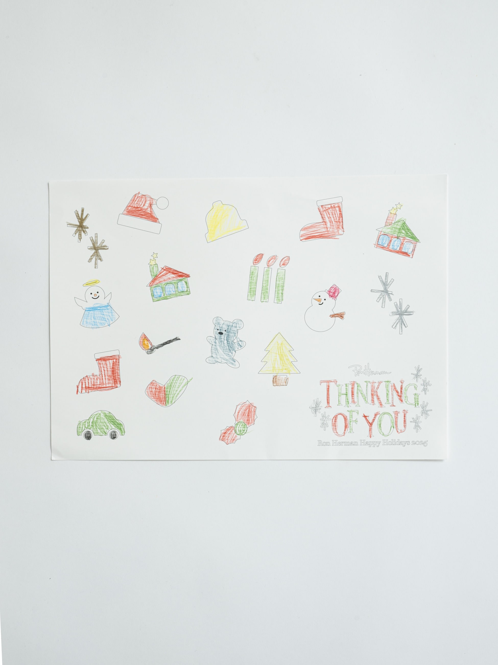 - 2025年のRon Herman Holidayのテーマ“Thinking Of you”のテキストとクリスマスらしいキャラクターやモチーフがデザインされた塗り絵は、ロンハーマンからのささやかなプレゼントです。皆さまのホリデーが暖かく愛に満ちた日々となりますように・・・!