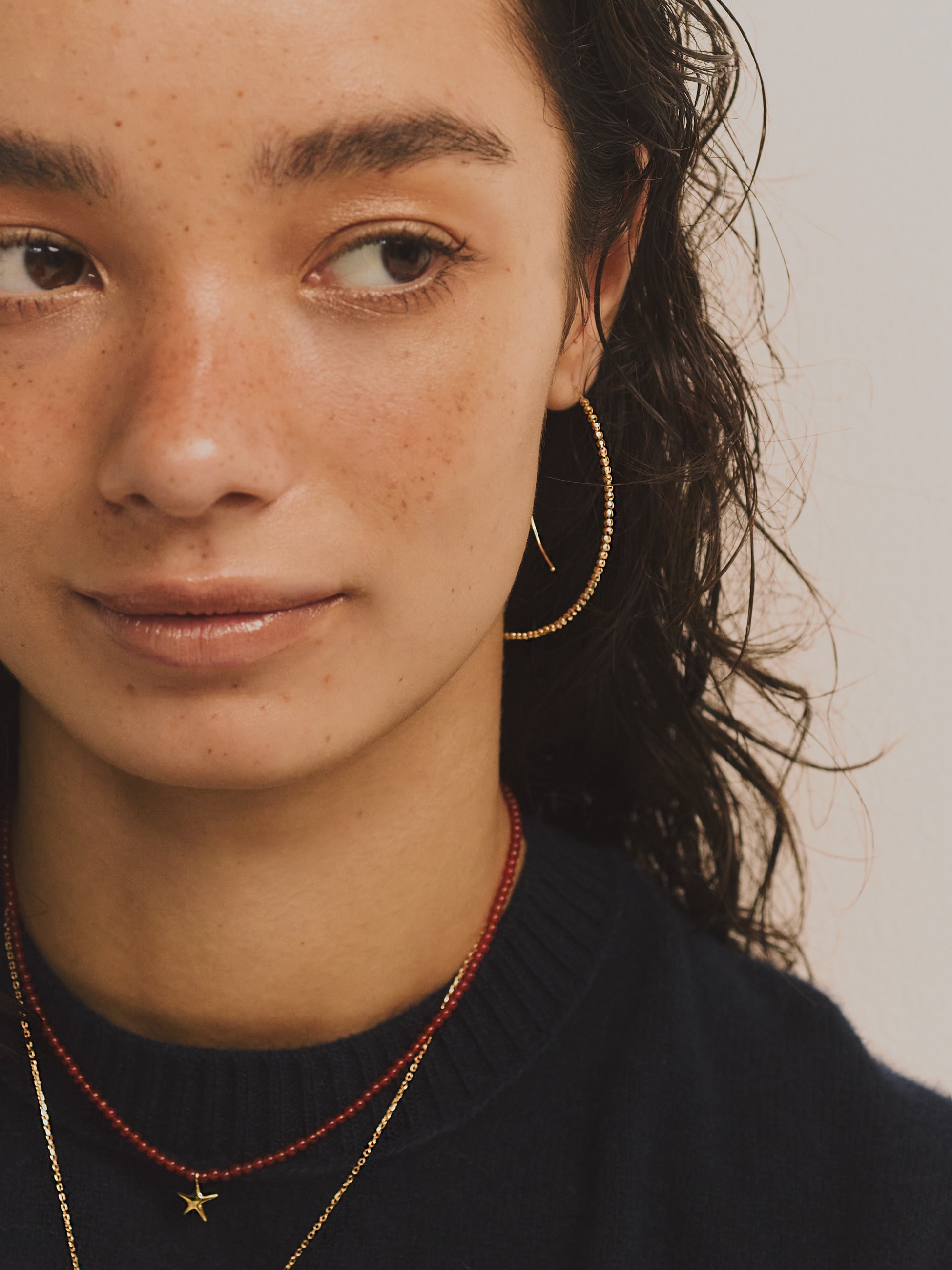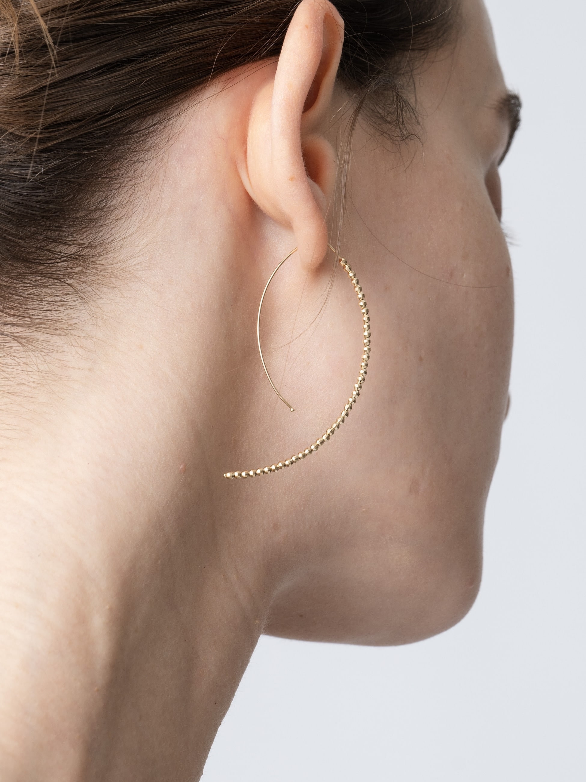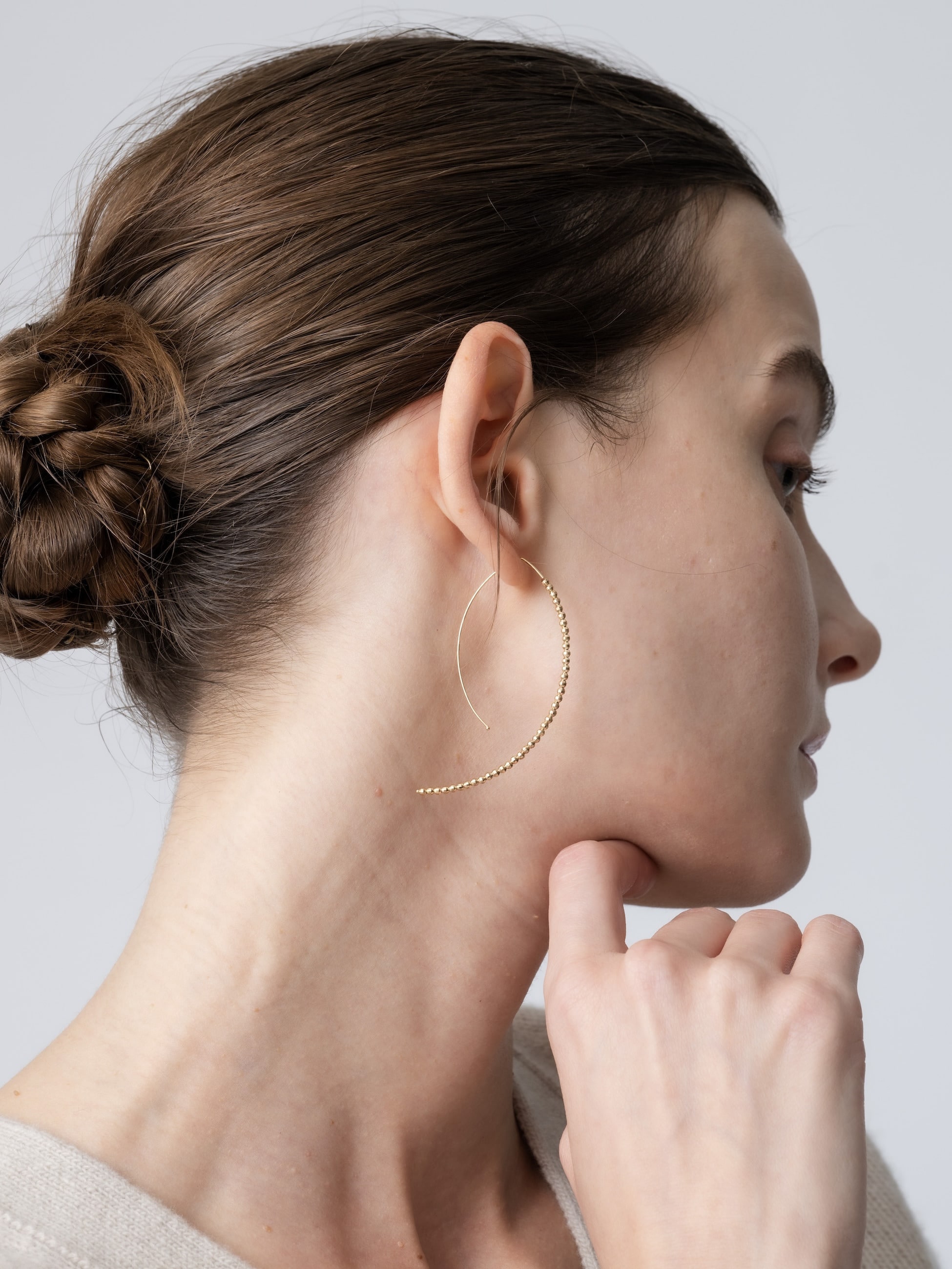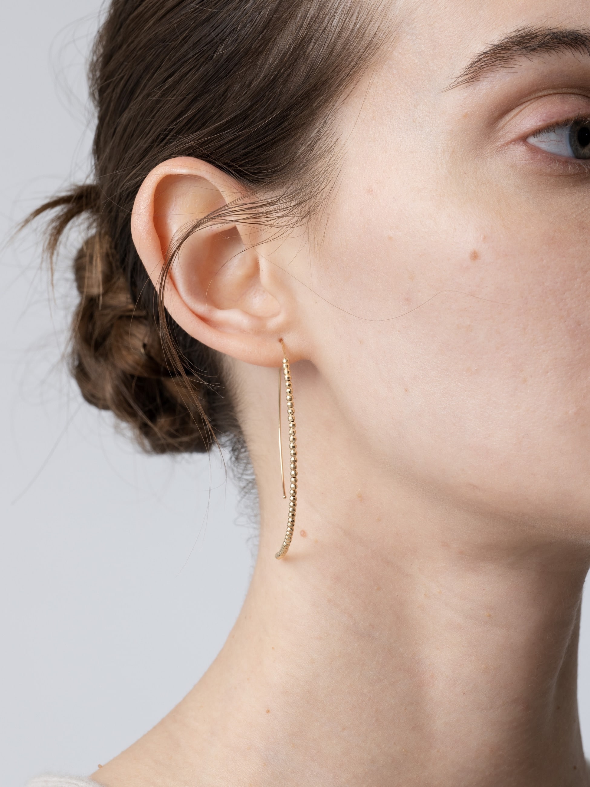 - 小粒のゴールドカットビーズが連なったピアスは、繊細な煌めきと程よいボリューム感が顔周りを華やかに演出します。ギフトにもおすすめなアイテムです。