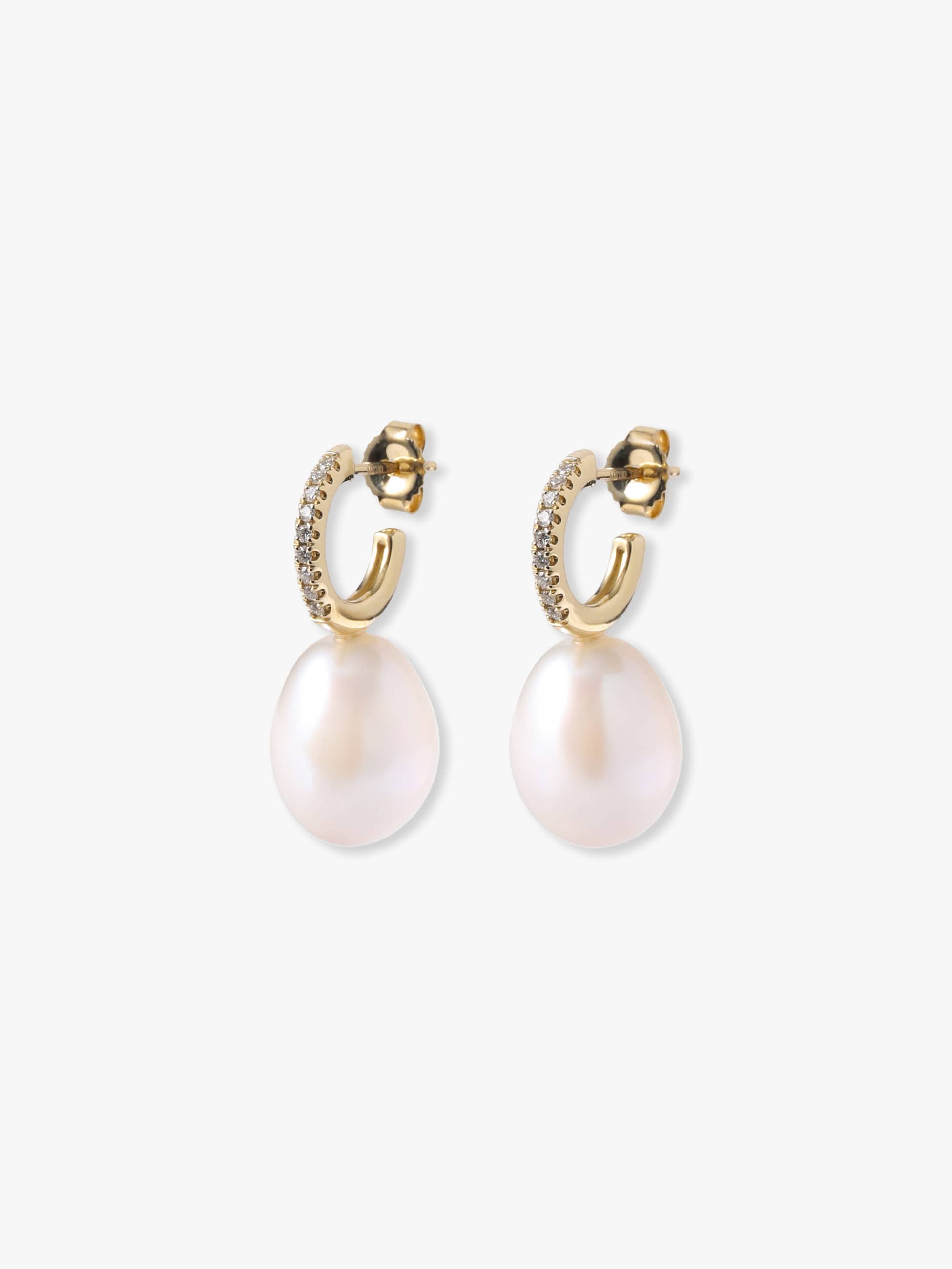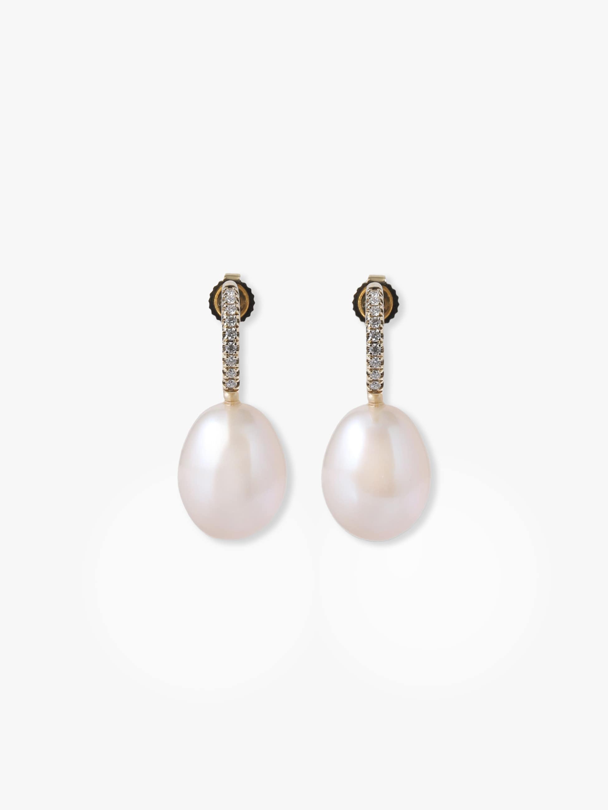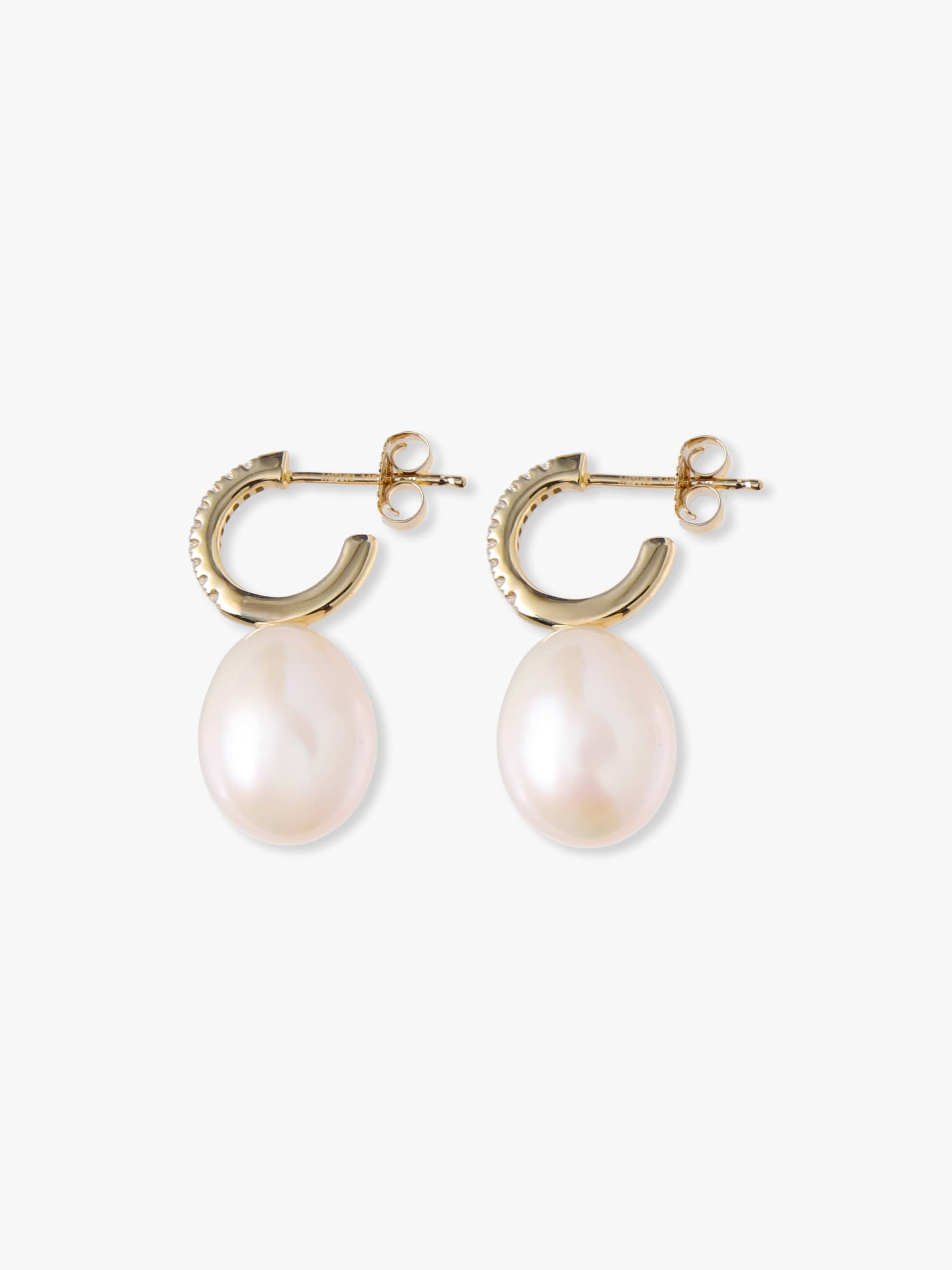 - 艶やかで存在感のあるパールを配したフープピアスは、ミニマルなフープ部分にはダイヤモンドをあしらい、贅沢でエレガントな雰囲気を醸します。特別な日の装いにも華を添えてくれるジュエリーです。