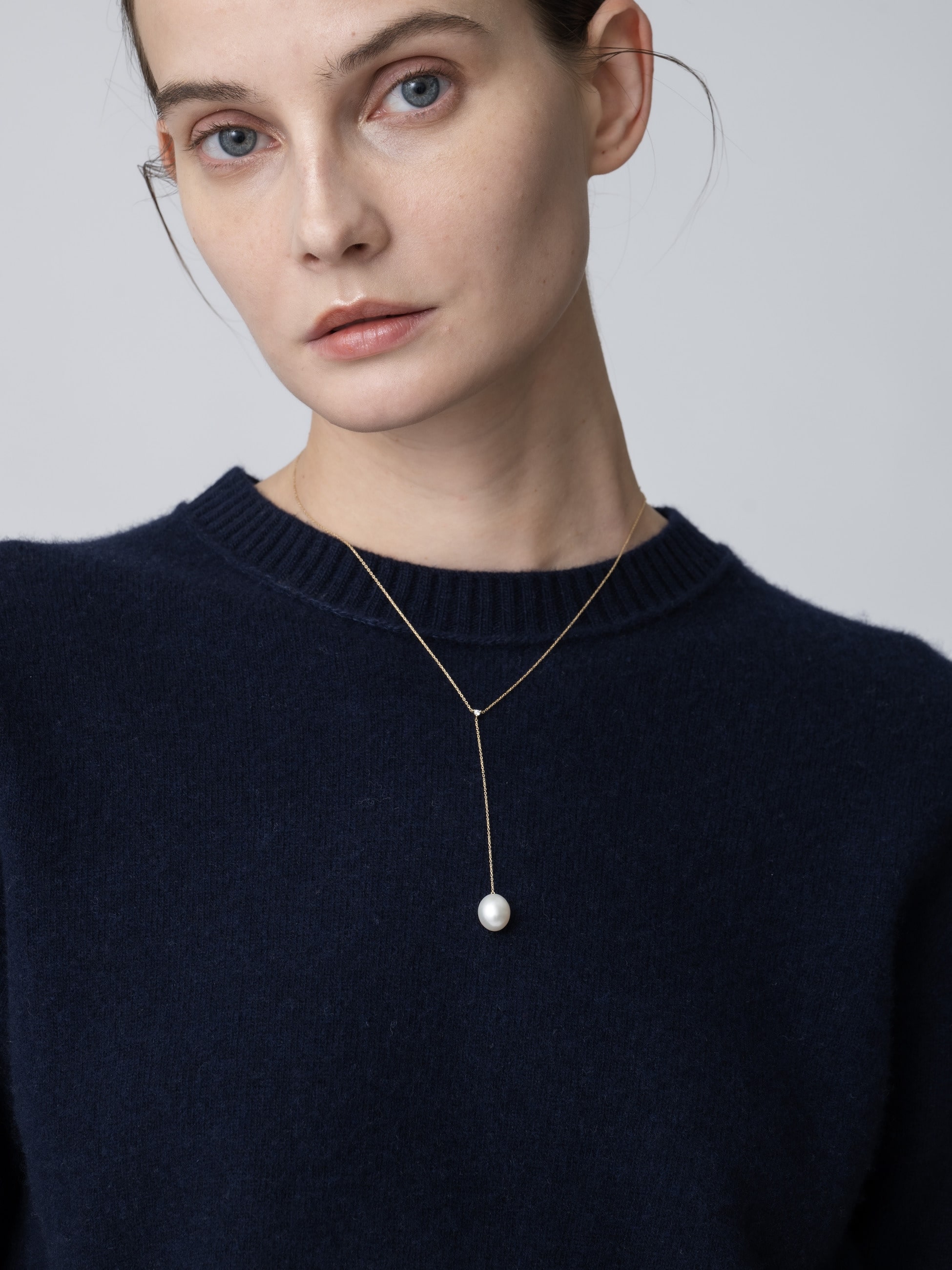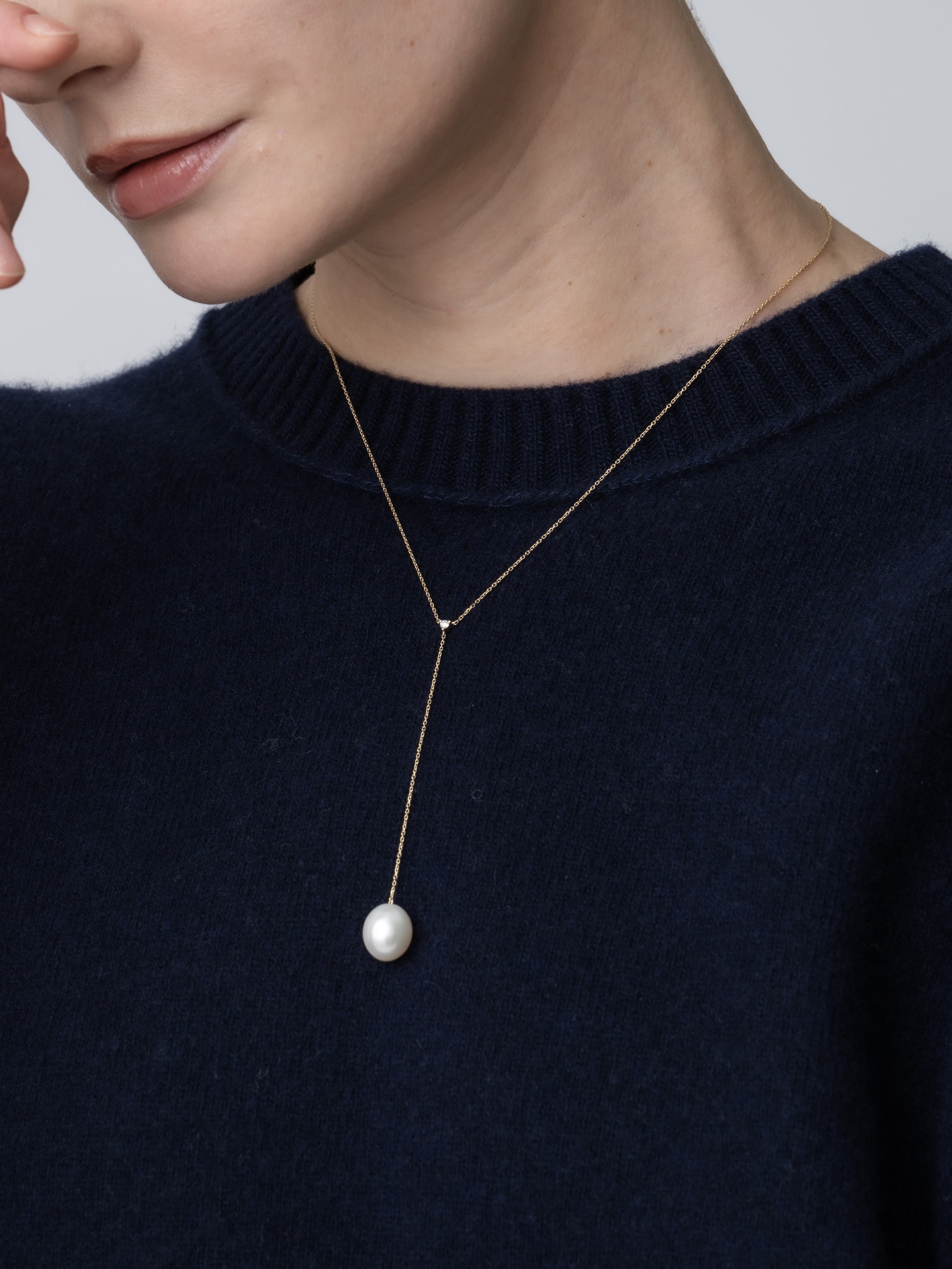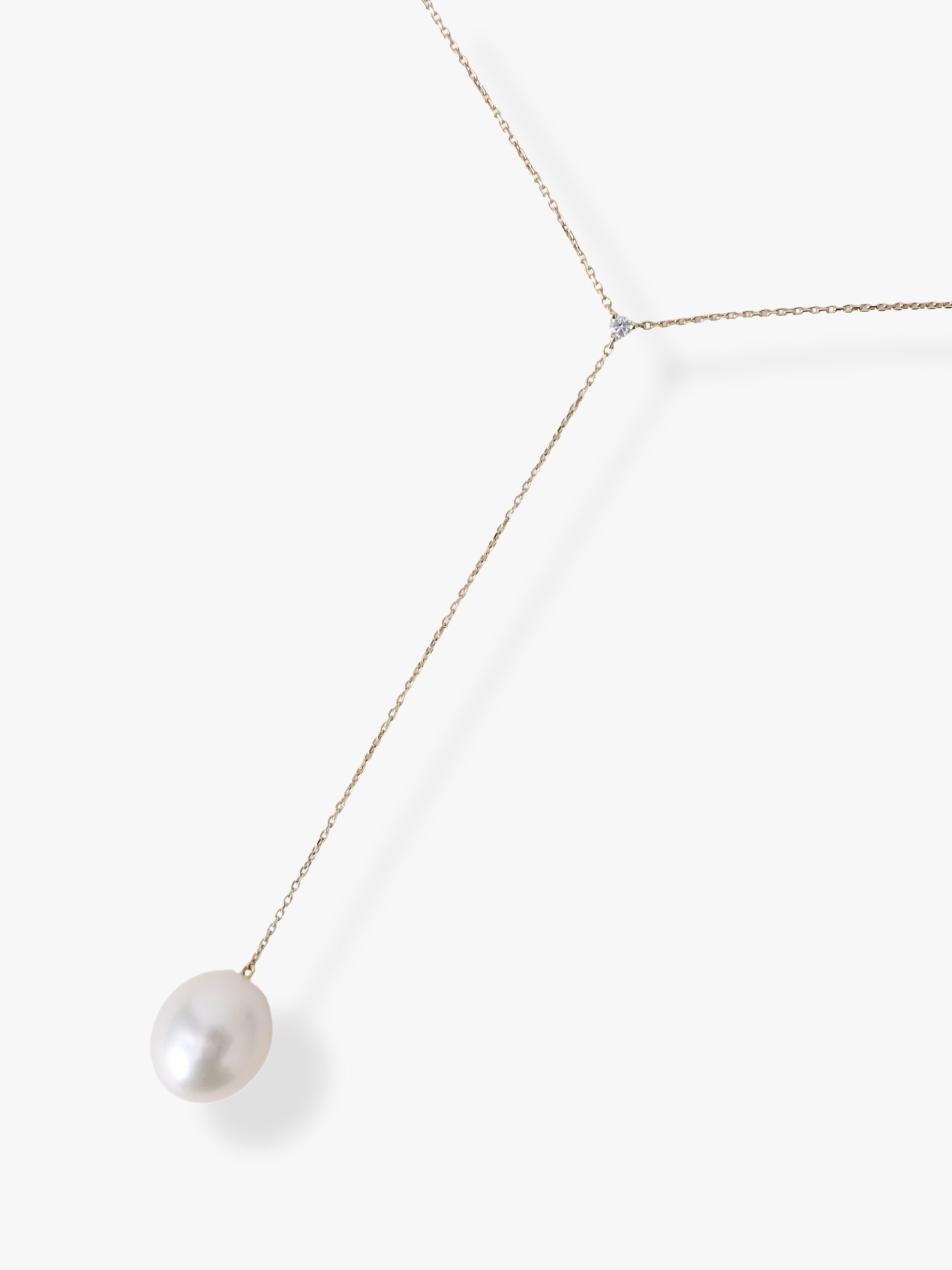 14Kイエローゴールドの繊細な「Y」シルエットのネックレスは、1粒のダイヤモンドをあしらい、チェーンの先でパールが優しく揺れ動く優美なシルエットが目を惹きます。清らかな気品を纏えるアイテムです。