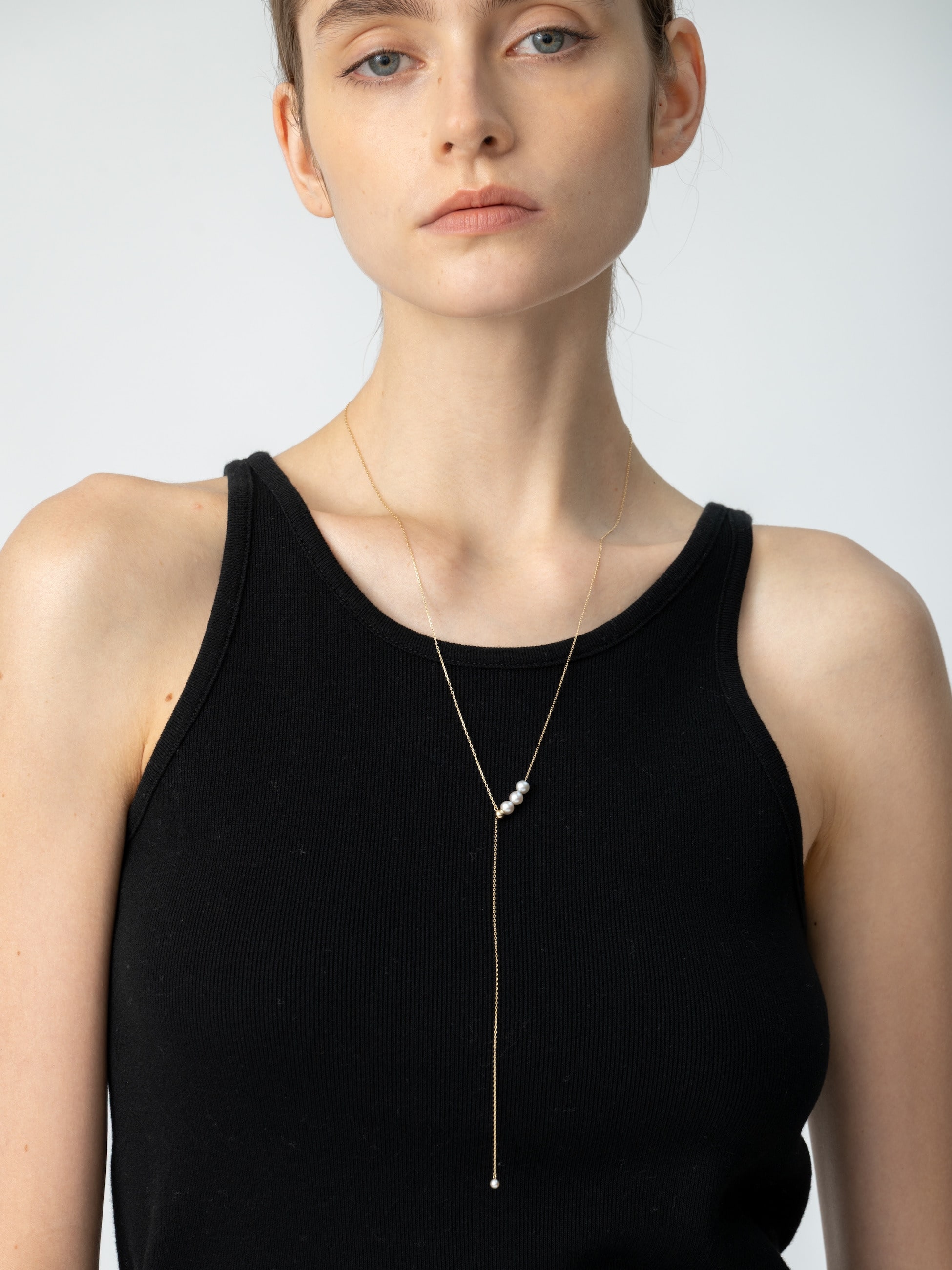 - コレクションで展開のあるデザインを、美しく上品なグレーパールで別注したネックレスは、ホワイトパールの魅力とはまたひと味違った、肩の力を抜いて楽しんでいただきたいコレクションです。留め具部分がアジャスタブルでお好みの長さにスライドして調節が可能なので、お手持ちのネックレスとレイヤードしていただくのも素敵です。アジャスター部分を長めにとり前で垂らすと、ラリアットのようなシルエットもお楽しみいただけます。シンプルでありながらも洗練されたデザインはどんなコーディネートにもマッチし、様々なシーンで重宝します。ギフトにもおすすめなアイテムです。※パールは天然素材を使用しているため、1点1点サイズや色味に個体差がございます。