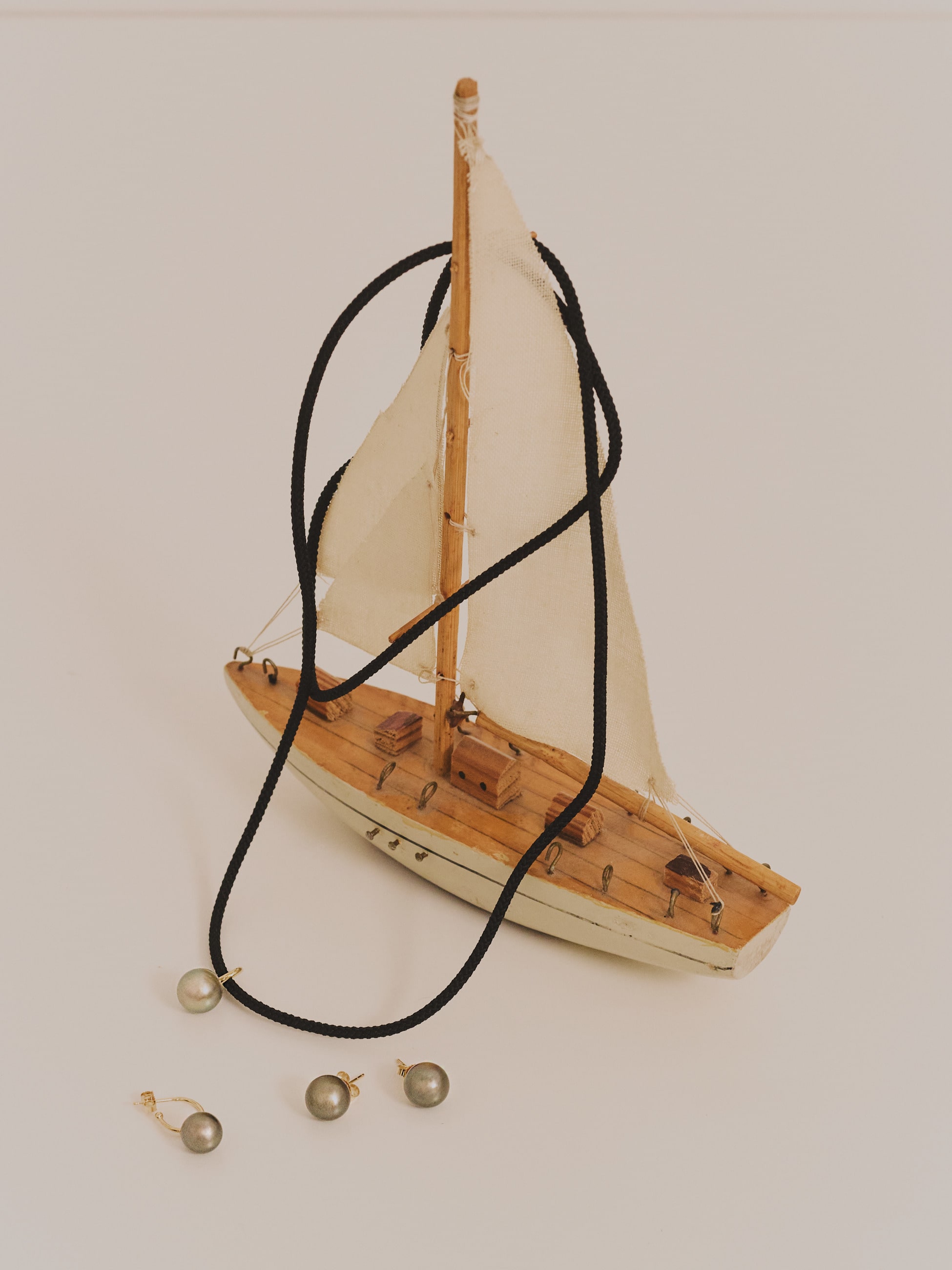 ペアのタヒチアンパールピアスよりも淡いカラーが魅力の1粒ネックレス。ロングコードをアレンジしたり、付属のベルベットリボンに付け替えたりと、コーディネートの幅が広いアイテムです。素肌の上も美しいですが、タートルネックのニットなどに合わせても素敵です!美術品のような美しいタヒチアンパールの世界をぜひ楽しんでいただけると嬉しいです。