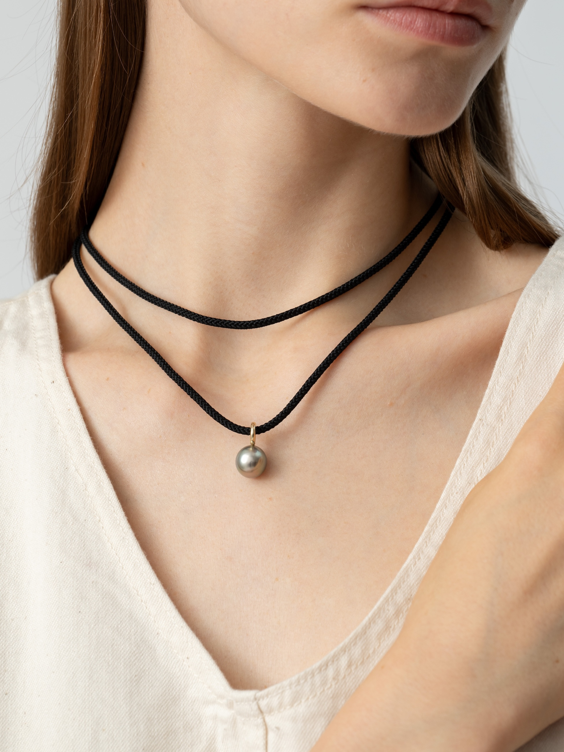 ブラックコードにパールをひと粒あしらったスタイリッシュなネックレスは、真珠層が厚く、ピーコックカラーの艶やかな輝きが特徴です。コードを二重にしてチョーカーのように、一連でロングネックレスとしてなど、スタイリングに合わせてお楽しみいただけます。付属のブラックベルベットリボンに付け替えると、よりエレガントな印象に。ラグジュアリーでひときわ個性を放つ美しさを湛え、デイリーからフォーマルまで、世代を超えて永く愛用いただけるアイテムです。
