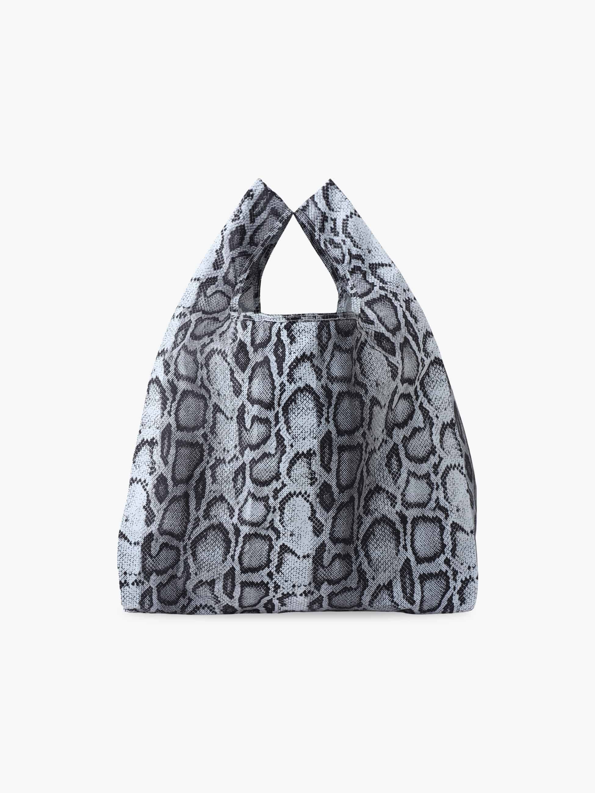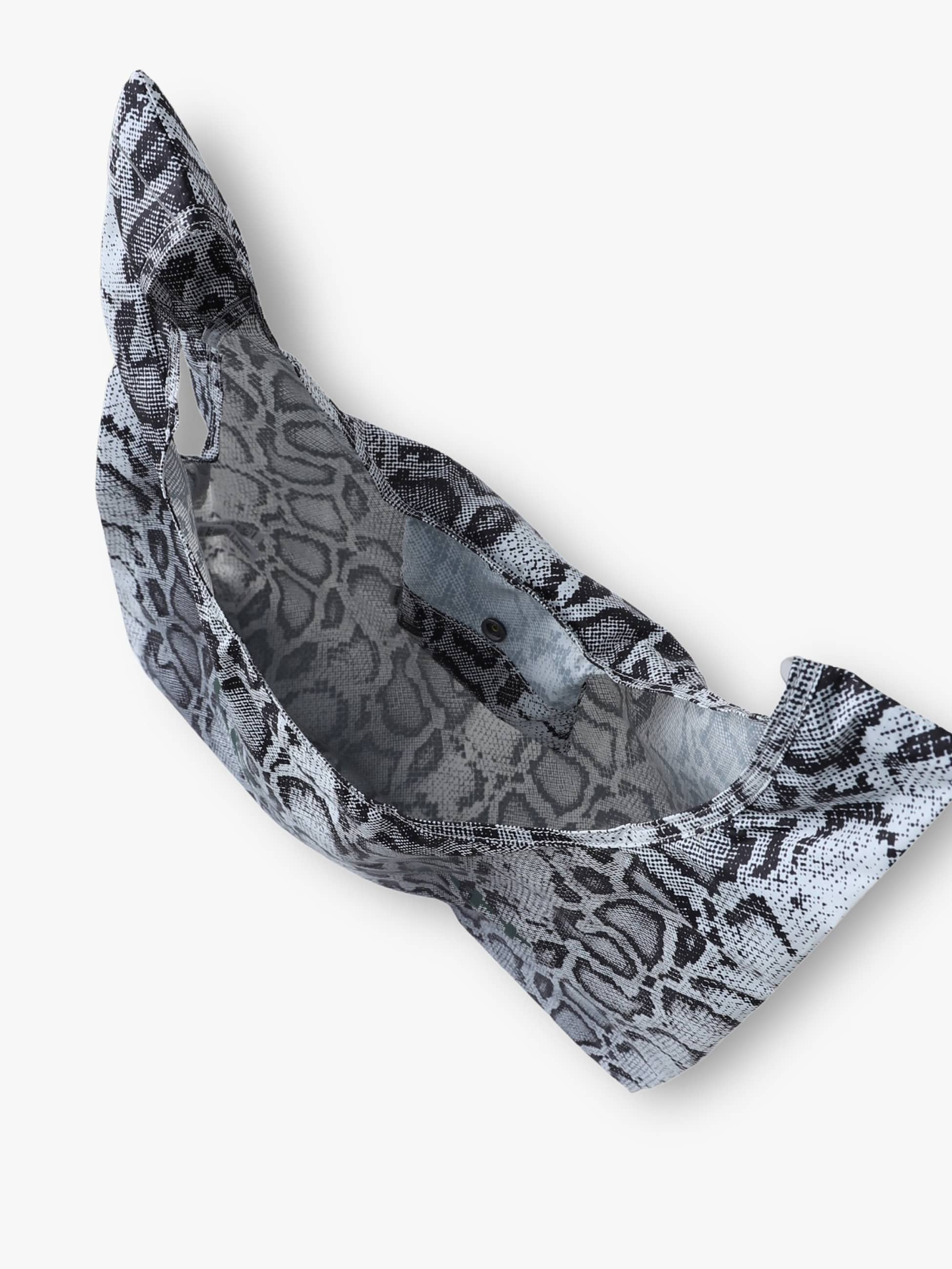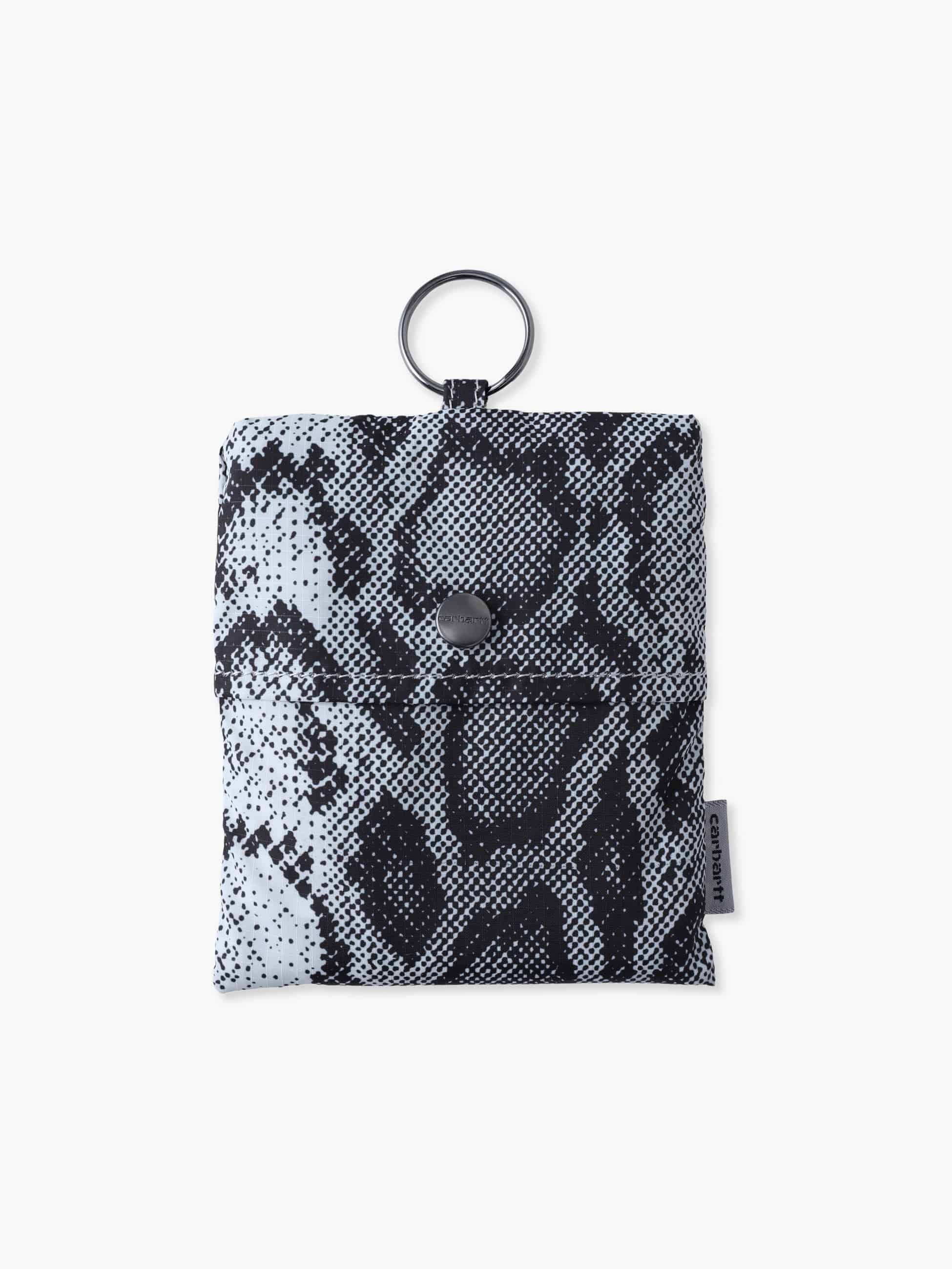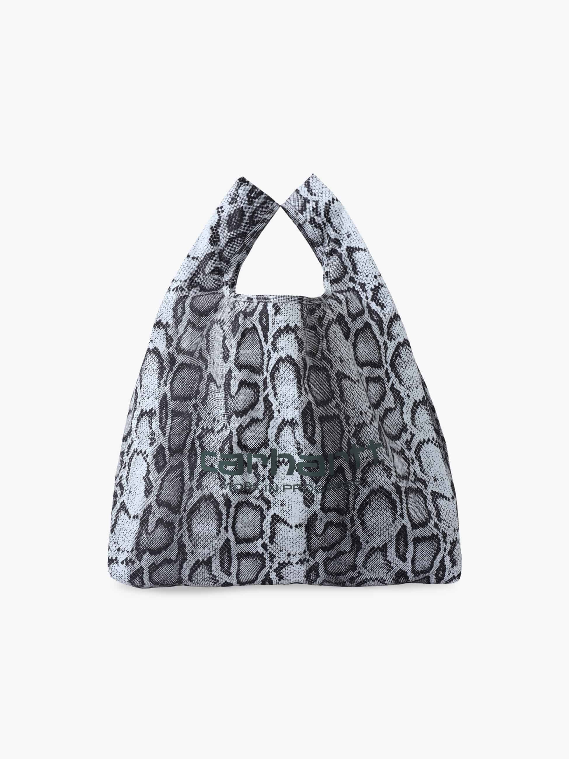 - リサイクルポリエステルリップストップ素材を使用したショッピングバッグは、スネークカモ柄をプリントしたデザインが特徴です。また、リップストップ素材による優れた強度と軽やかな持ち心地もポイント。折りたたんで平らなポーチにすることもでき、持ち運びに便利なキーホルダーリングが付いています。