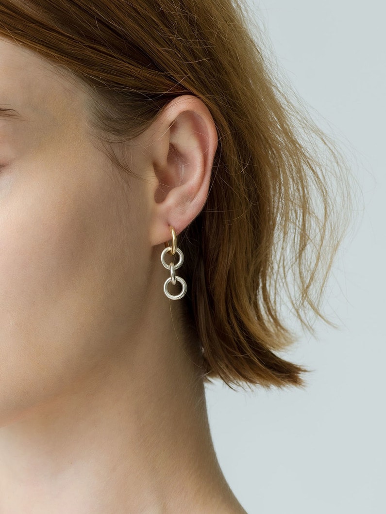 - 小ぶりな18Kゴールドのフープにシルバーのサークルモチーフが連なった、揺れ感の楽しめるピアスは、シンプルでありながらも程よいボリューム感があり、洗練された雰囲気を演出します。ゴールドのフープ部分だけでも着けることができ、お好みでアレンジすることができるのでコーディネートの幅が広がります。