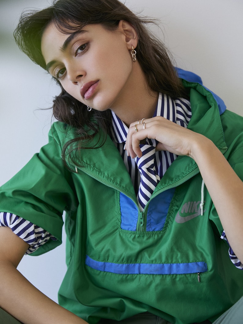 ゴールドとシルバーのミックスが存在感を出してくれます。程よくボリュームがあるけれど合わせやすく、3連のシルバーのどこにフープを通すかで印象が変わります。3連のシルバーを取ってシンプルなフープだけでつけることもできる優れものです。アリエルというネーミングもかわいい!
