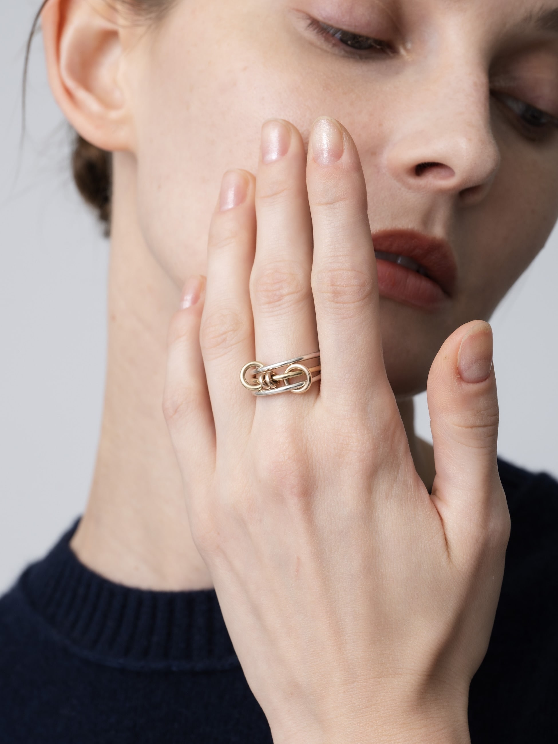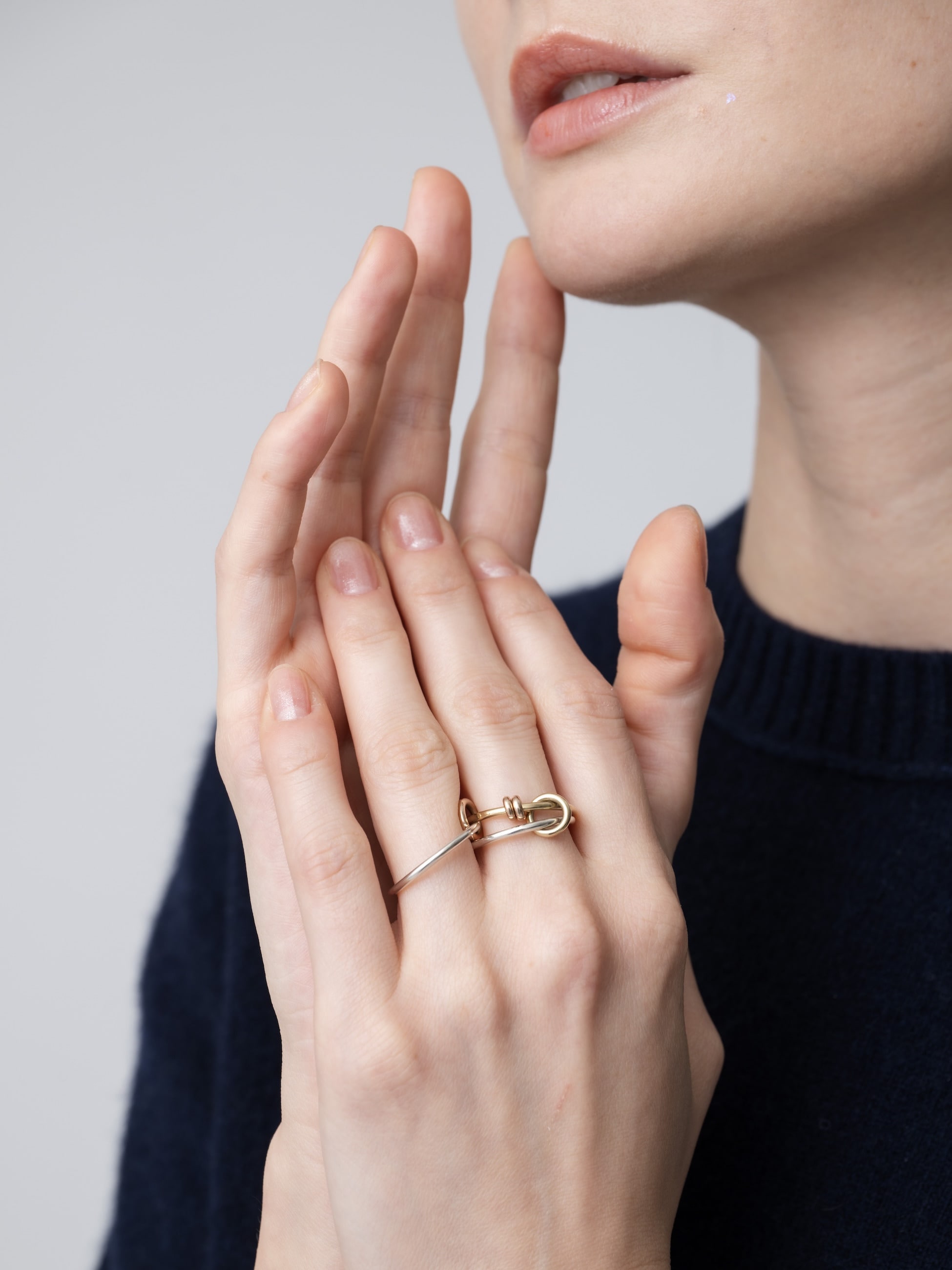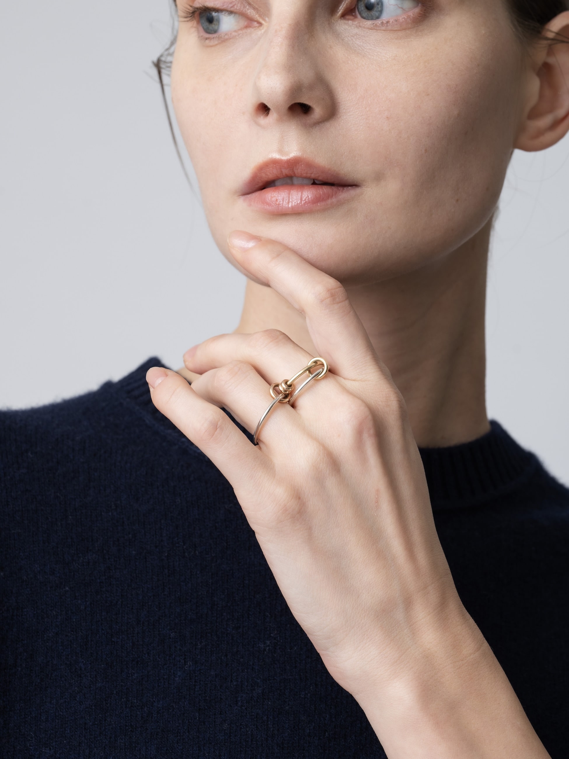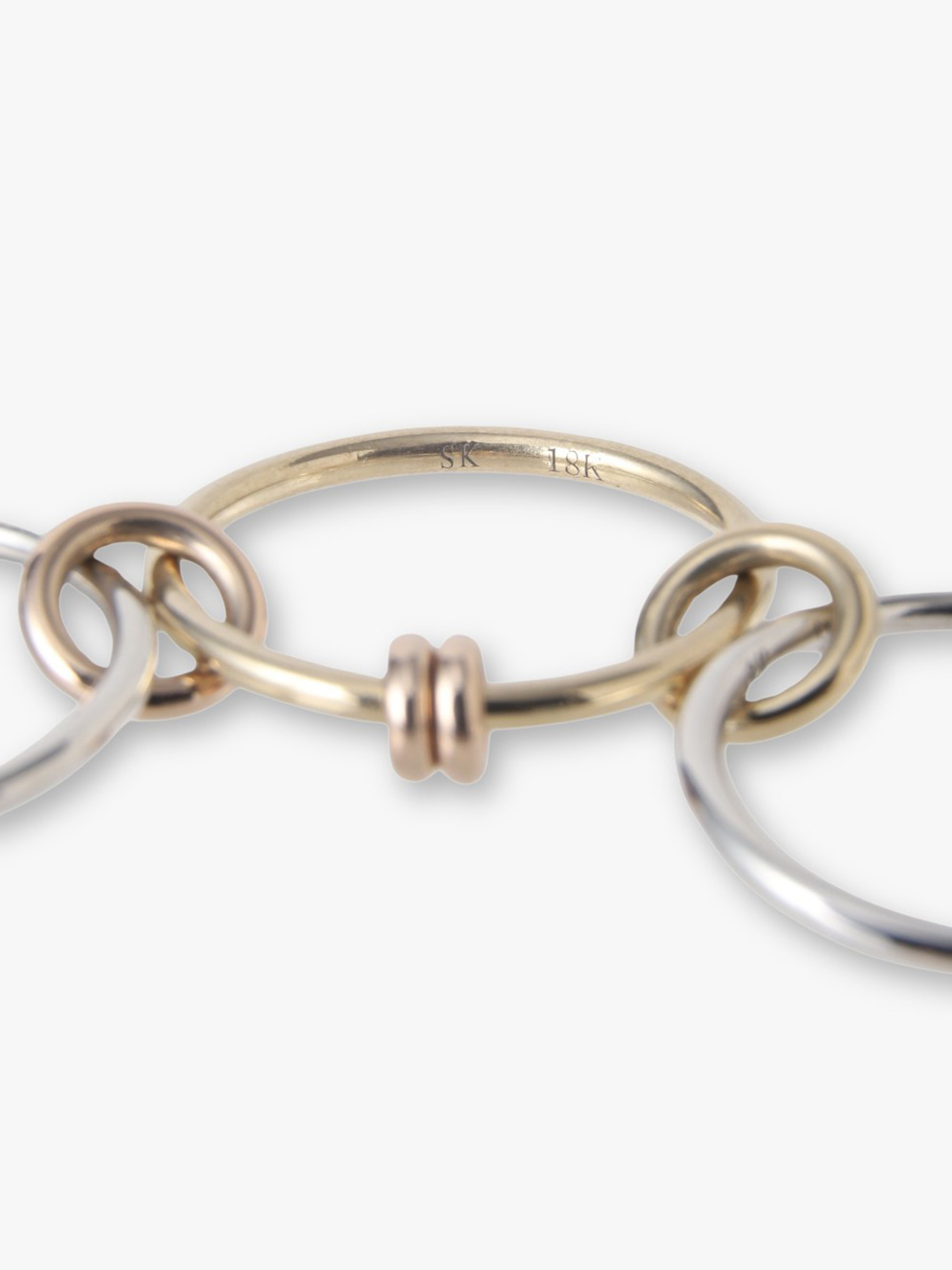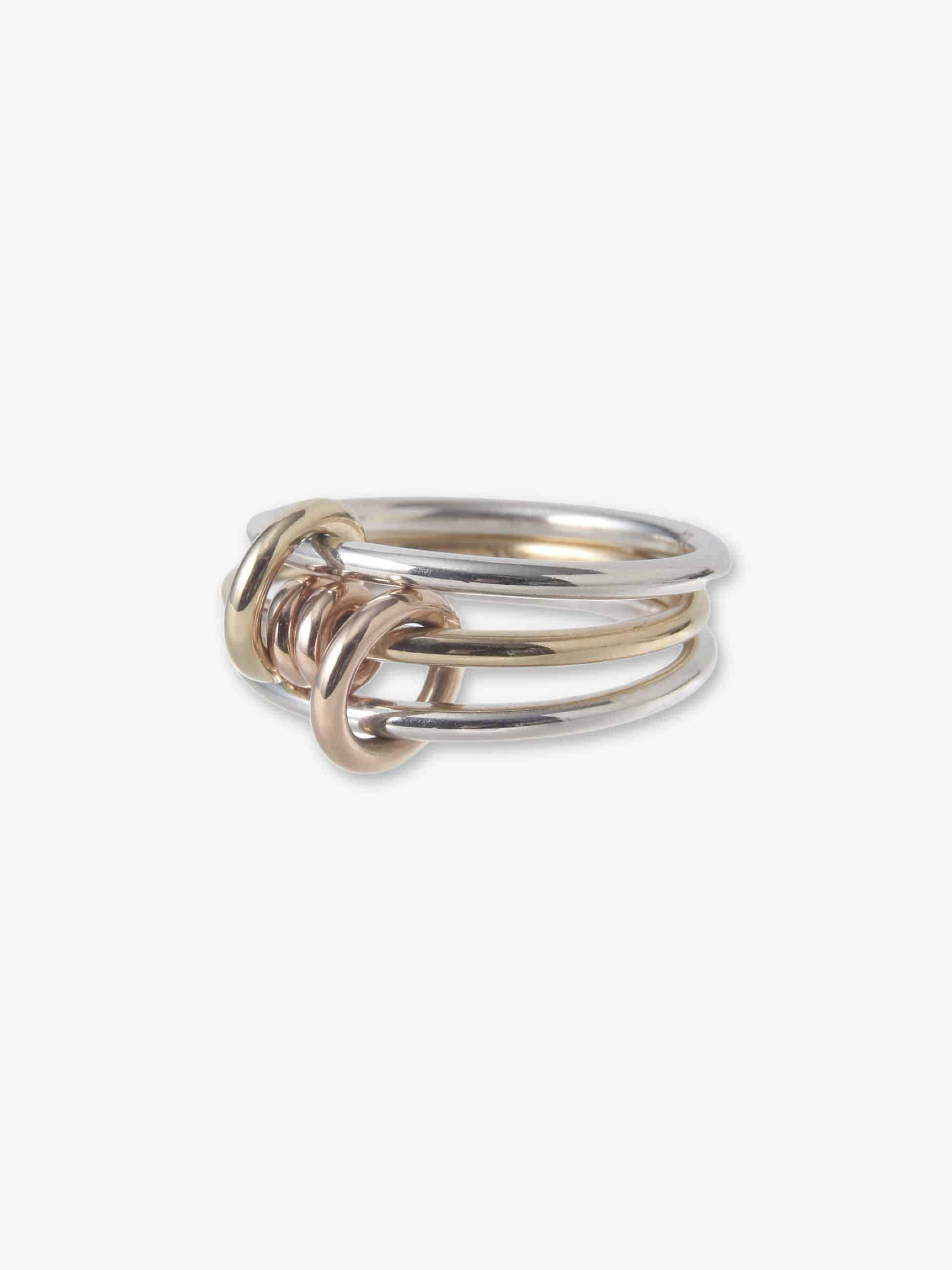 - 華奢なAcacia MXリングは、同じゲージのシルバーと18Kイエローゴールドのカラーがミックスされた三連リングに、イエローゴールド、ローズゴールドの2つのコネクターとアニュレットがあしらわれています。 複数の指に広げて着用したり、重ねづけしていただくのもおすすめです。