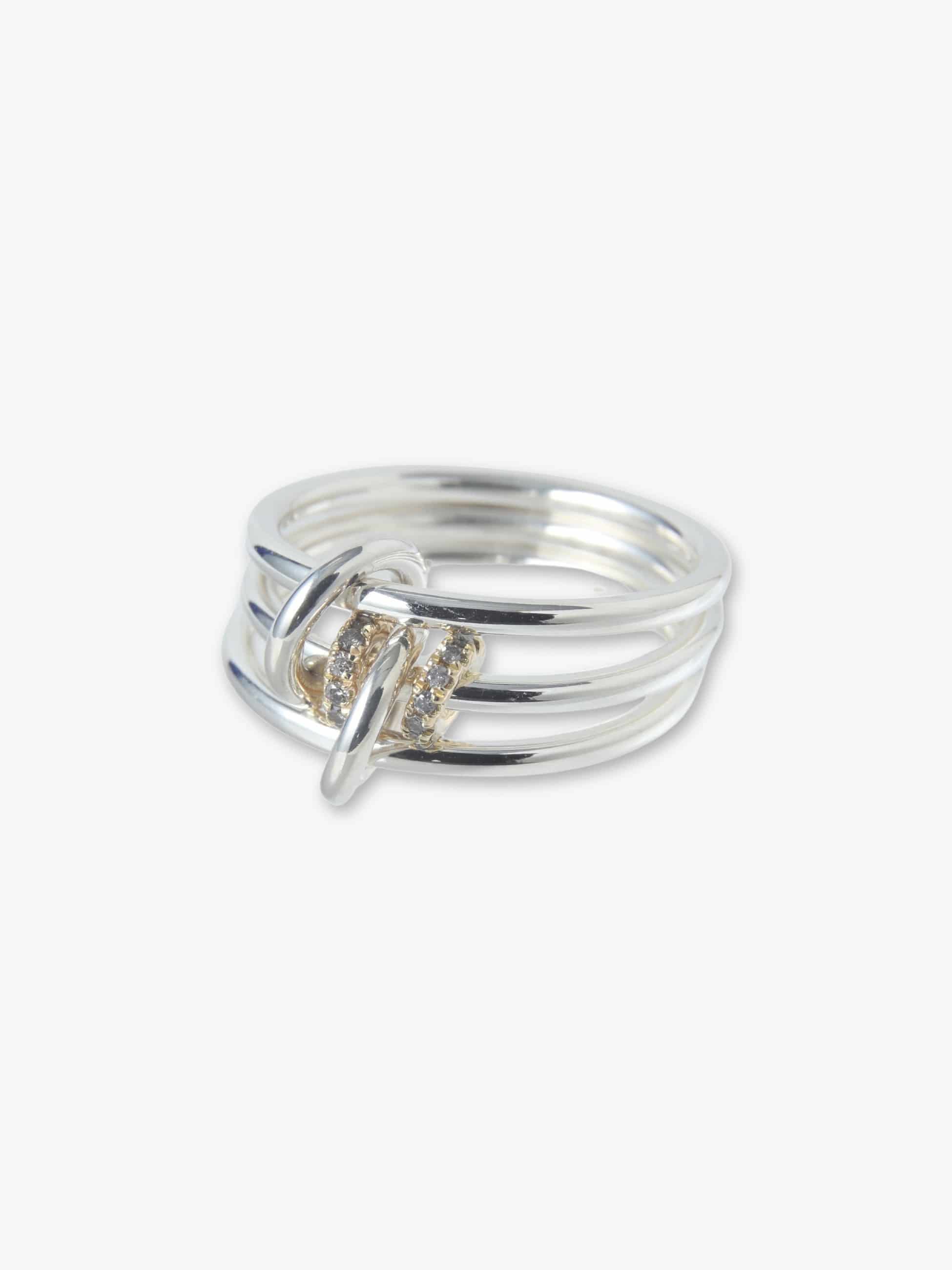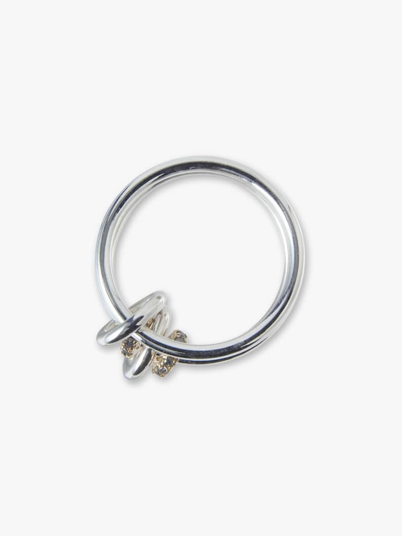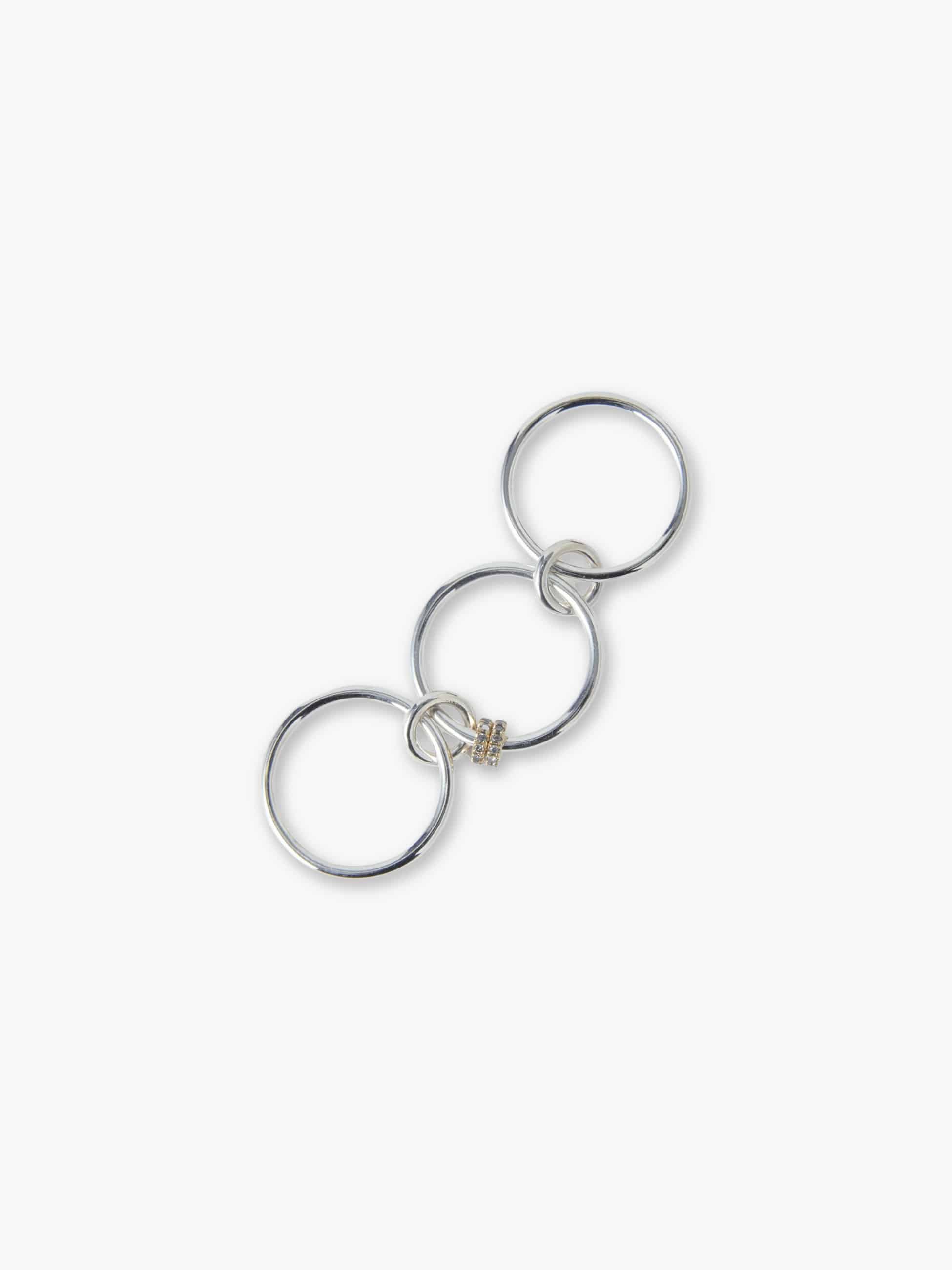 - シルバーの3つのリングに、シックなグレーダイヤモンドのパヴェアニュレットをあしらったリングは、ロサンゼルスで1点ずつハンドメイドで作られています。華美にならず、繊細で美しいバランスのボリューム感で、エレガントな印象を醸します。指をまたいで着用いただくのもおすすめです。