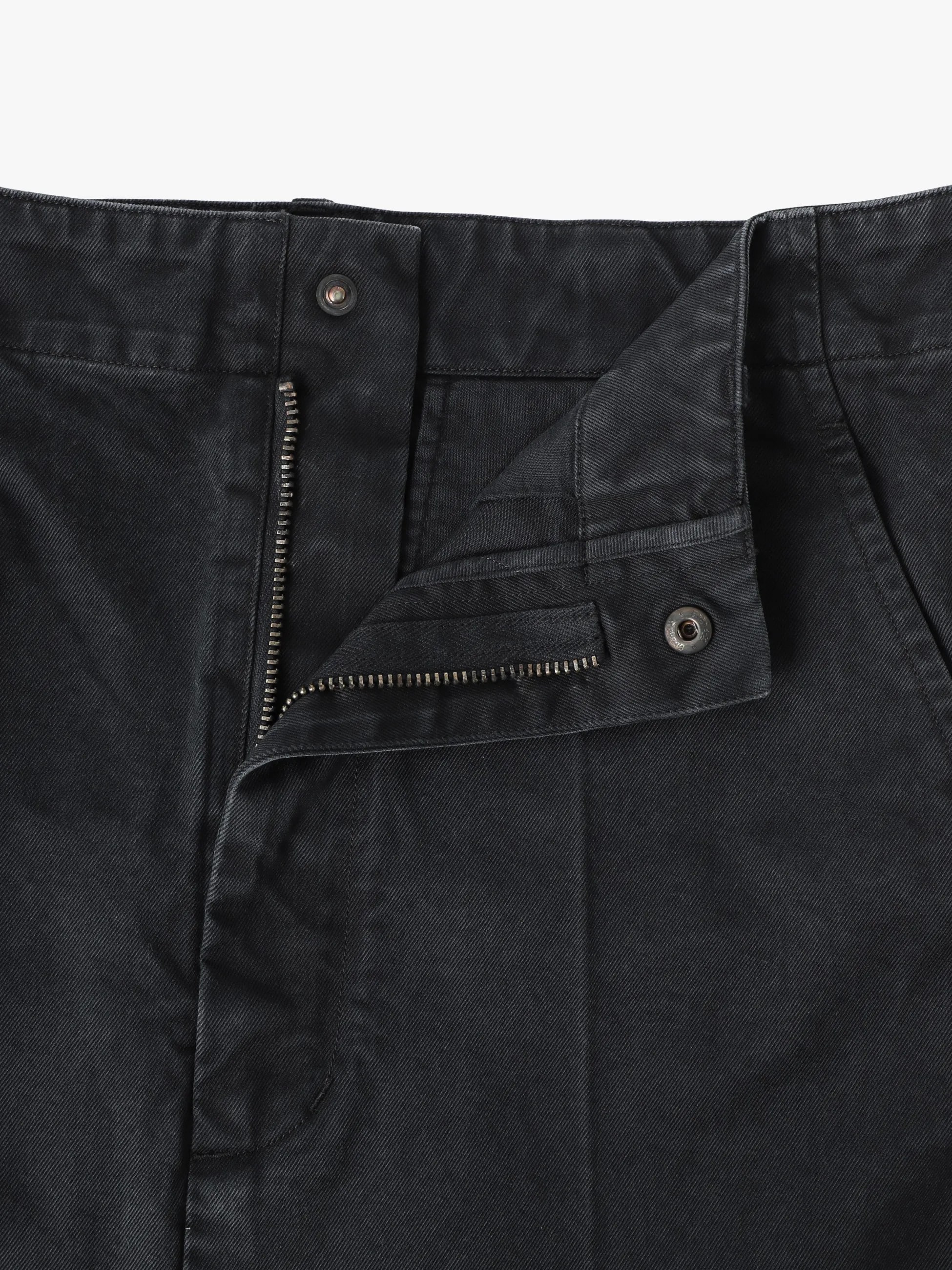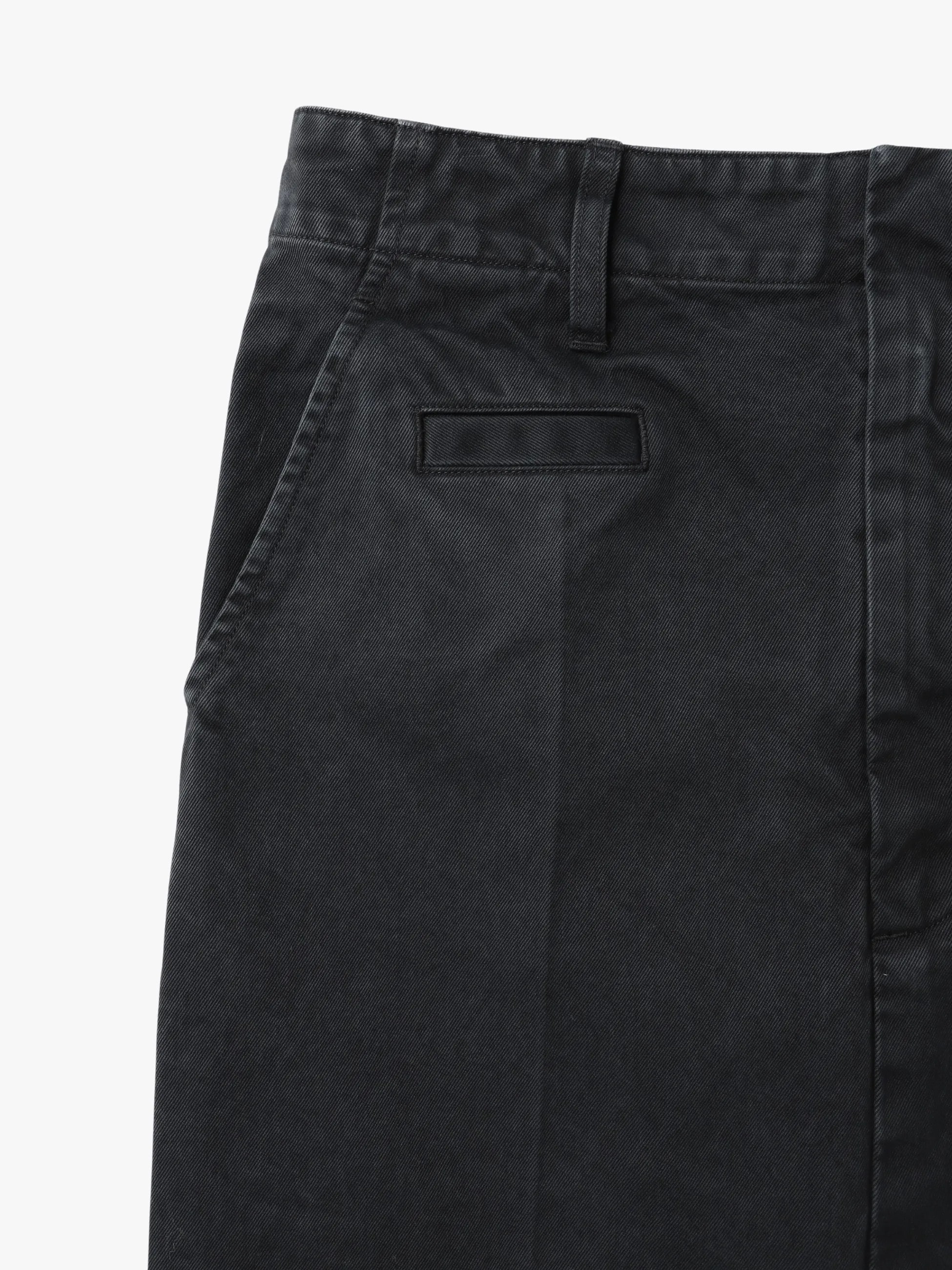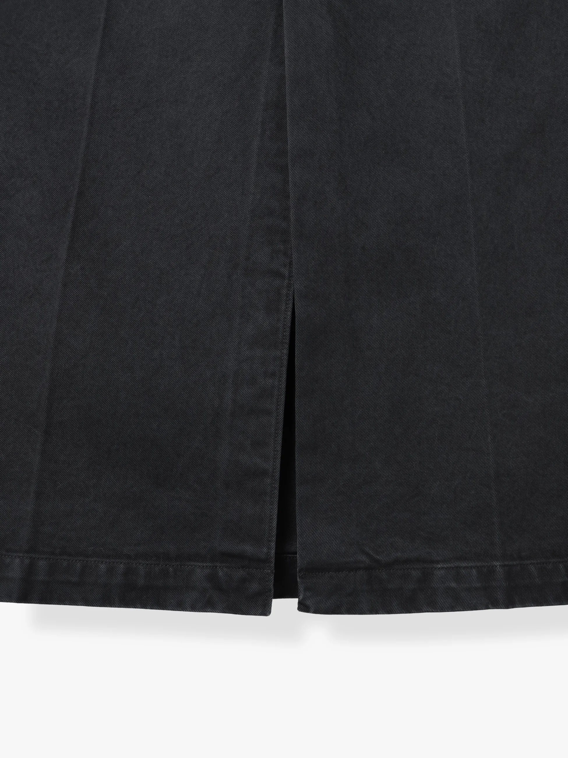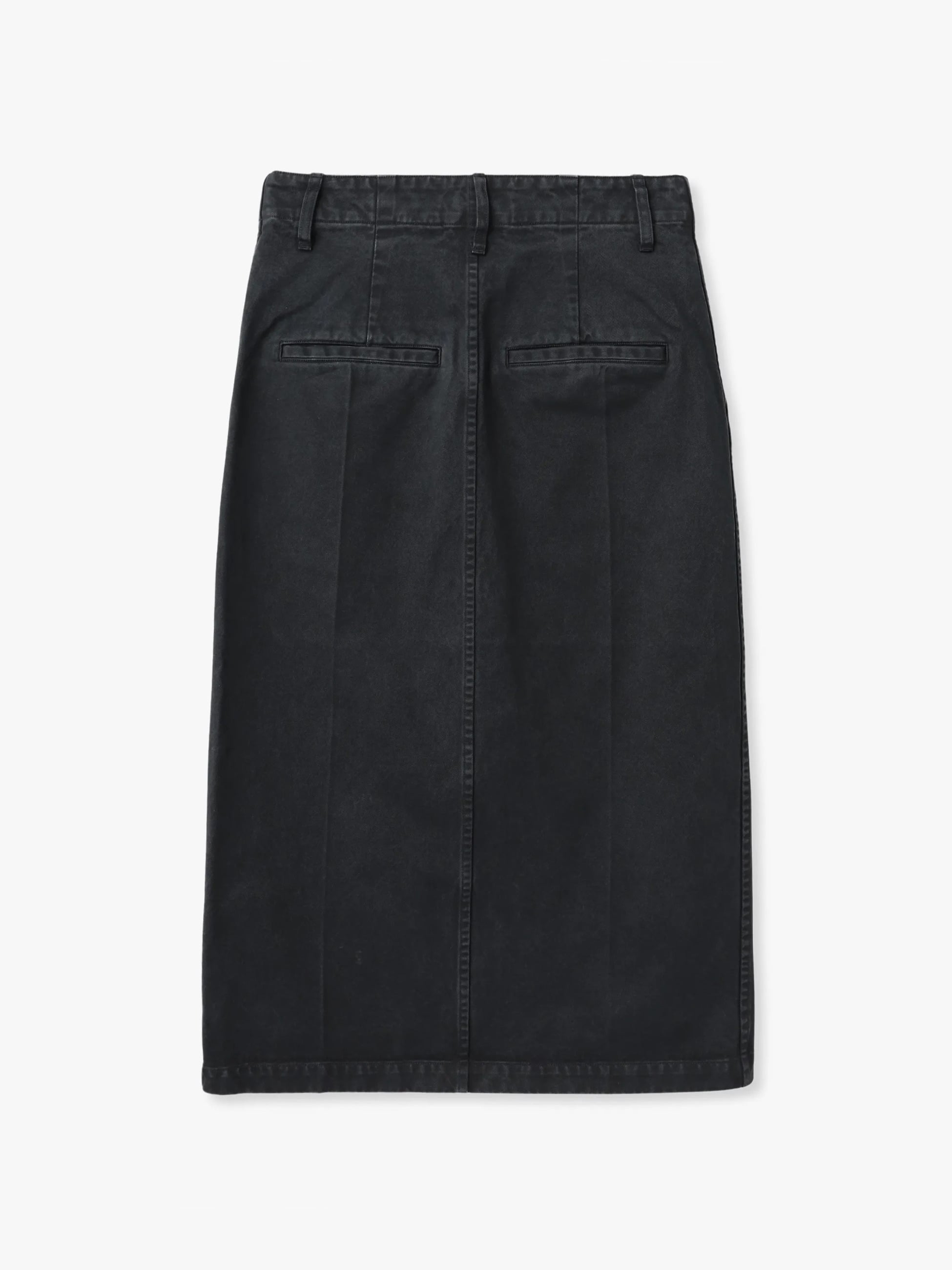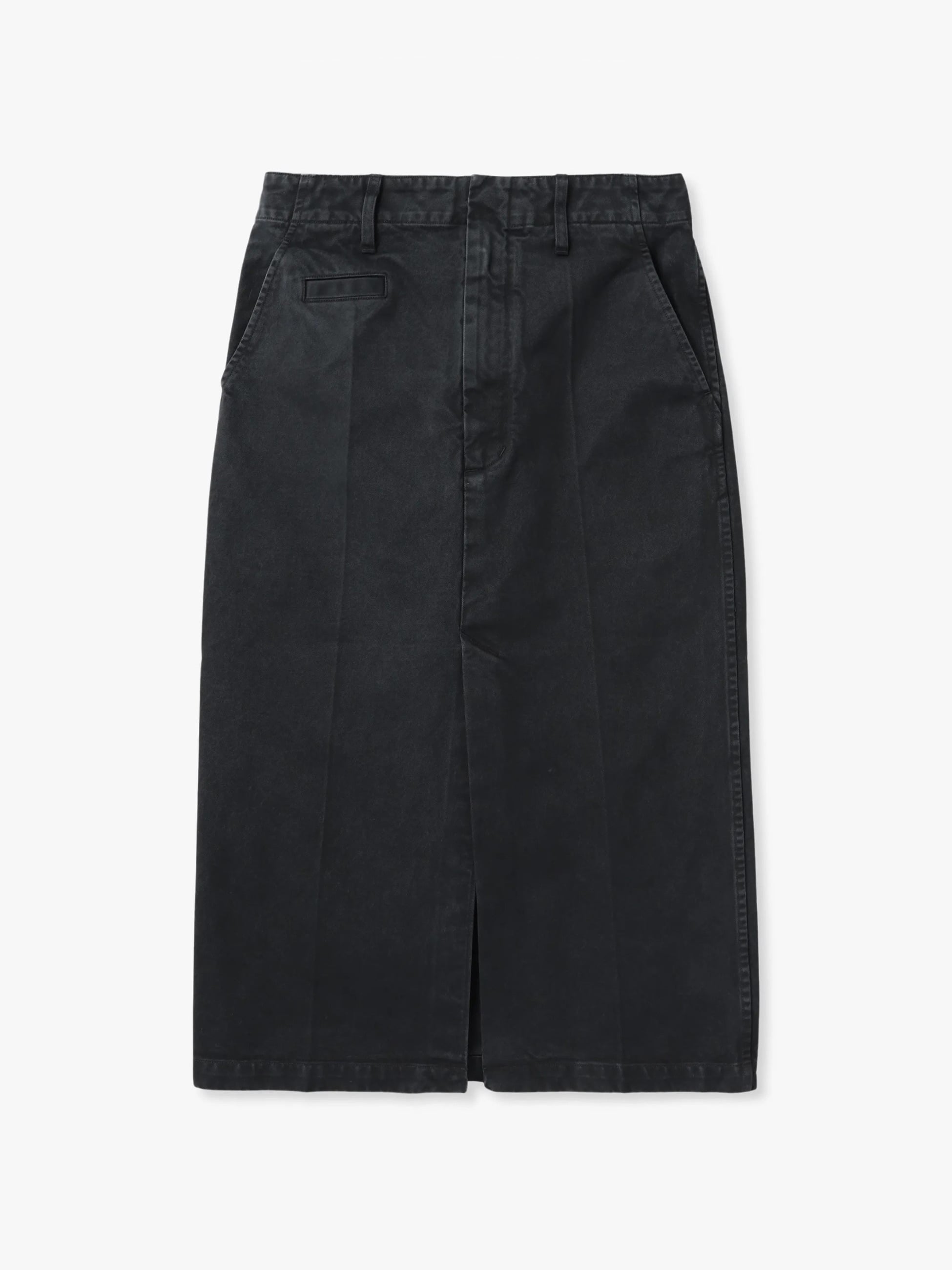- エジプト産の超長綿「フィンクスコットン」を撚り合わせた糸を使用したロング丈のチノスカートは、膨らみと滑らかさを持つナチュラルな風合いが特徴です。製品染色後、職人が丁寧に手作業で加工を施すことで生まれる、独特なムラのある色味がビンテージ感を惹きたてます。裾のスリットで足捌きも良く、ストレスフリーな穿き心地なのも嬉しいポイントです。