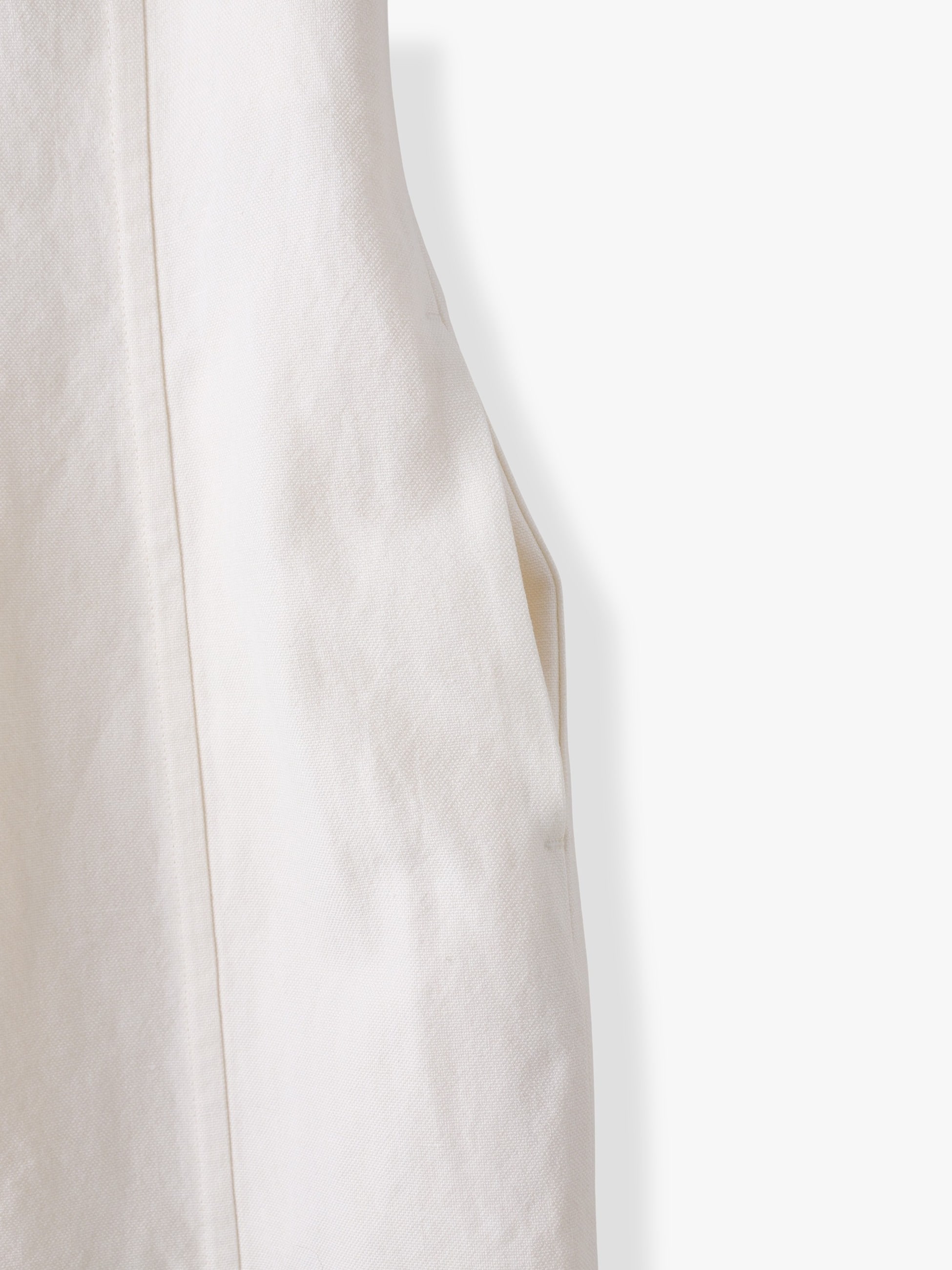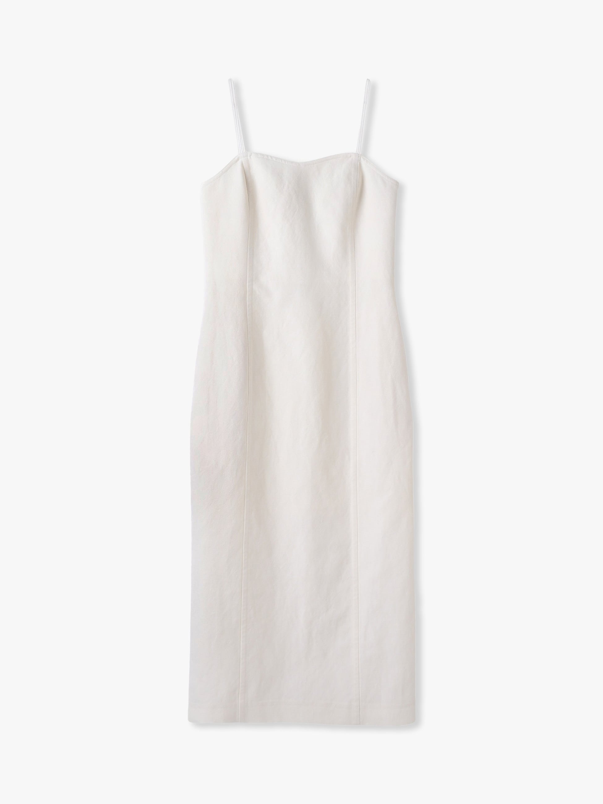 - ウール、コットン、リネンの混紡糸を高密度に織り上げた、上質なオックスフォード生地を使用したキャミソールドレスです。素材が織りなすナチュラルな風合いとドライなタッチに加え、程よいハリ感と自然な柔らかな光沢が、洗練された印象を演出します。1枚でさらっと着用いただくのはもちろん、インナーにTシャツを重ね、カジュアルにスタイリングいただくのも素敵です。同シリーズのミディスカートもございます。