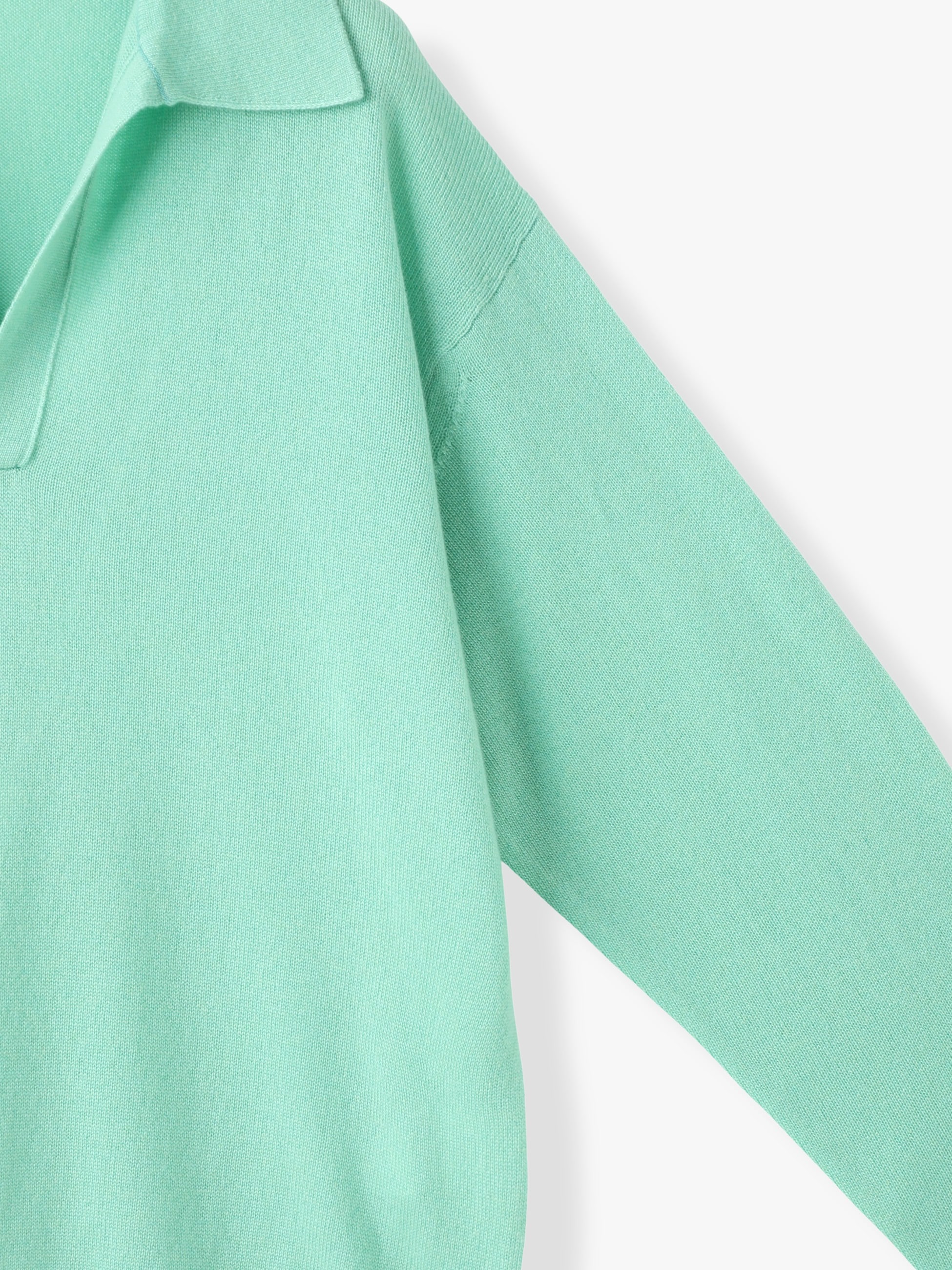 • スーパーファイン カシミア シルク ニット スキッパー ポロトップ 詳細画像 green