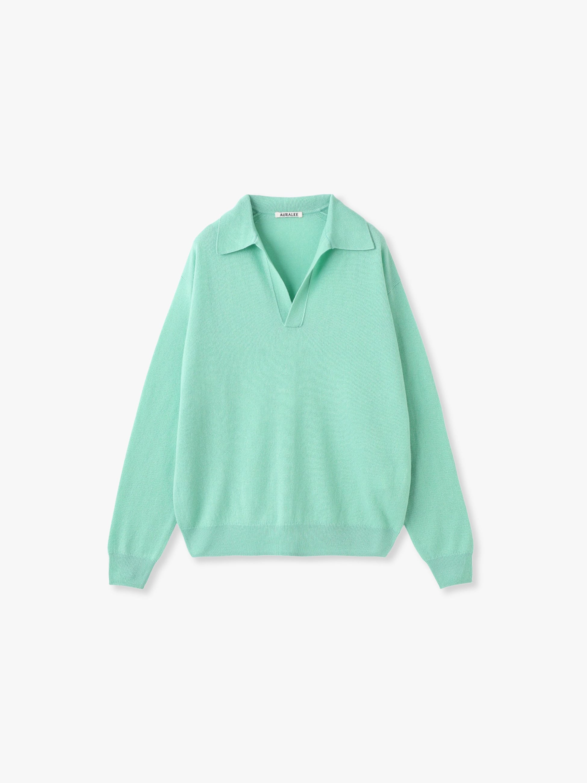 スーパーファイン カシミア シルク ニット スキッパー ポロトップ