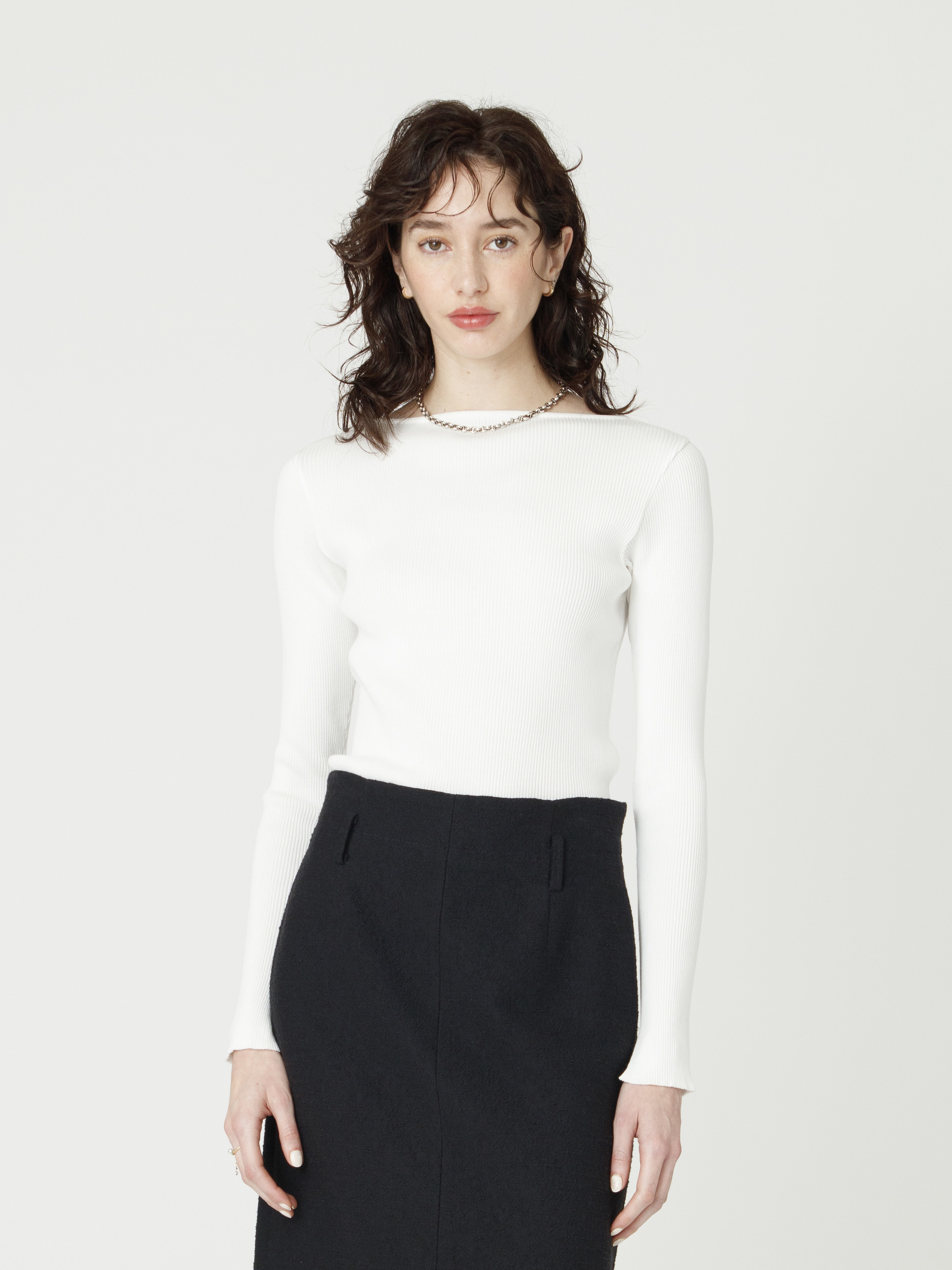 • ギザボートネック プルオーバー(ホワイト/イエロー/ライトブルー/ネイビー) 詳細画像 white