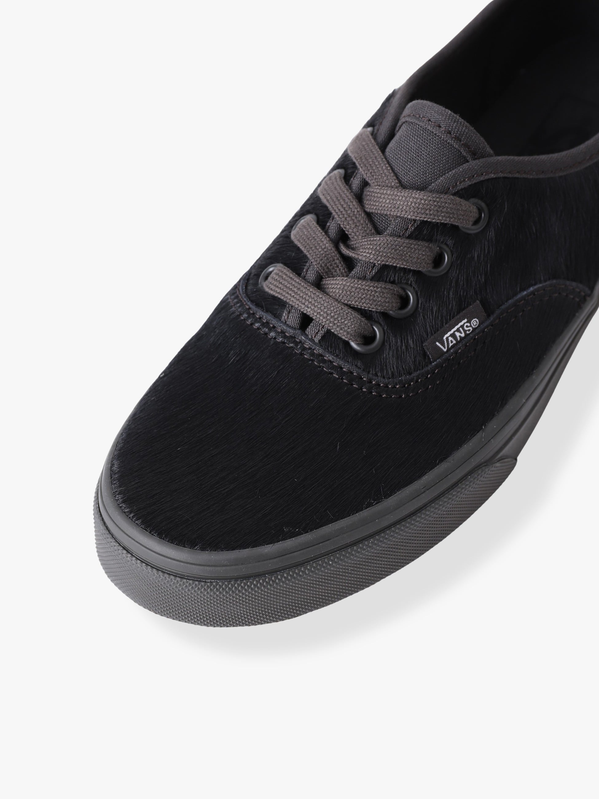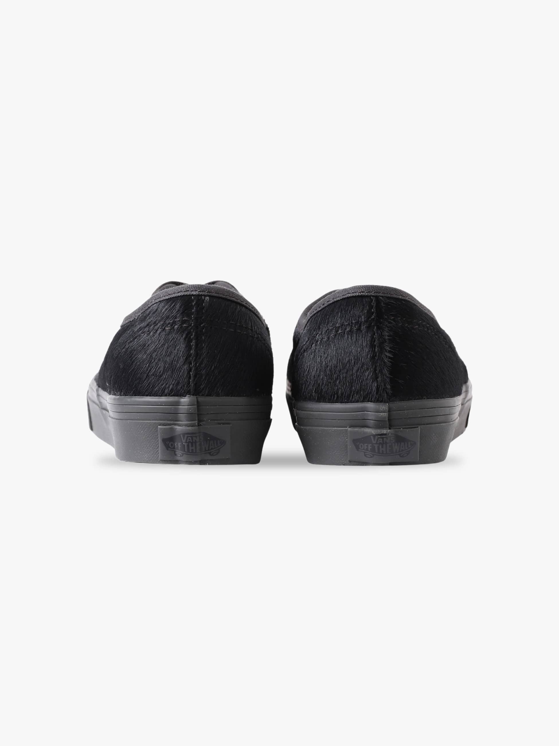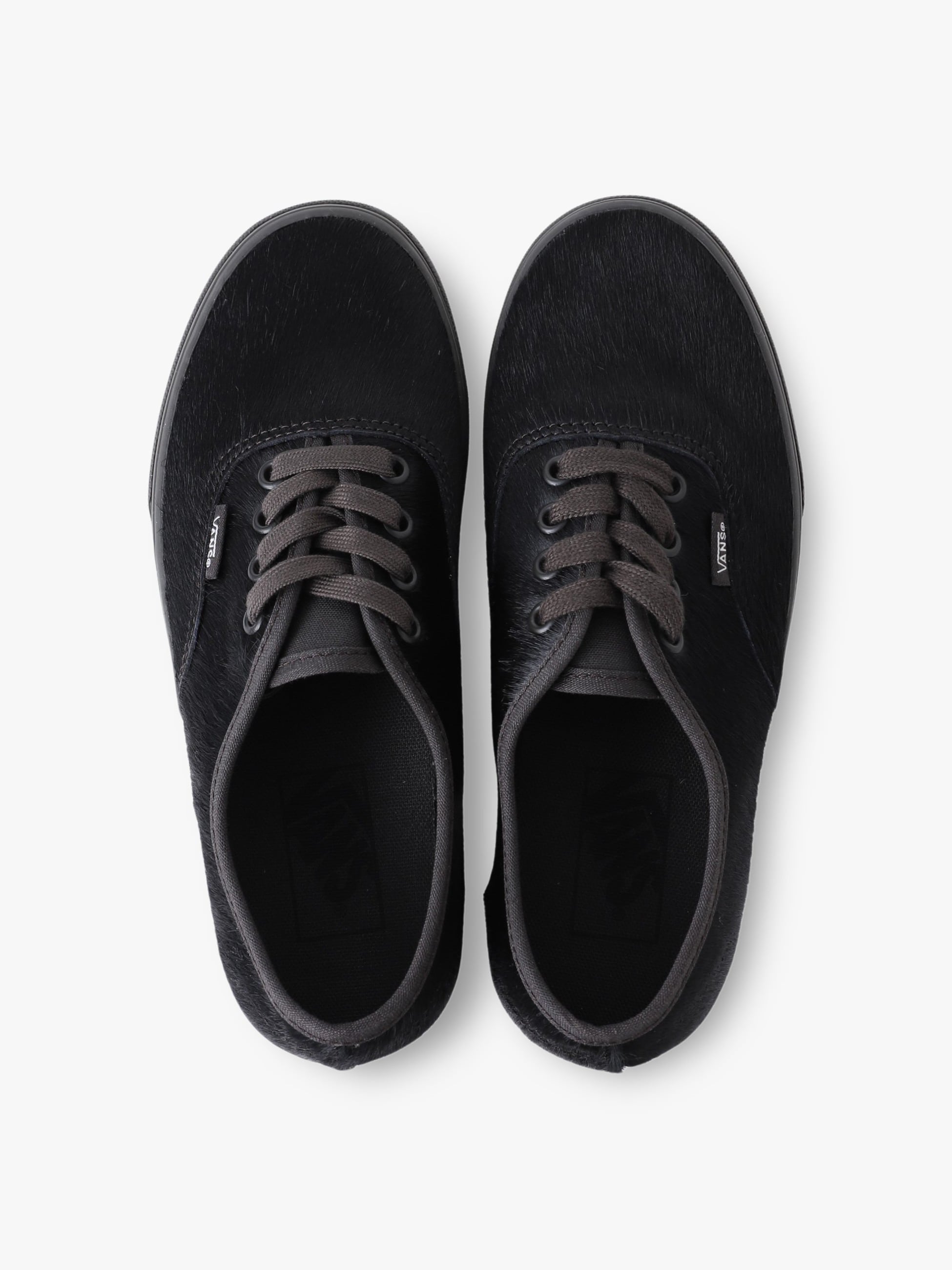 VANSの歴史を象徴するシグネチャーモデル「Authentic」より、日本国内ではRHC ロンハーマンのみでの展開となるモデルの登場です。洗練された表情のポニーヘア素材のアッパーに、ソールや付属品までをブラックで統一したソリッドな仕上がりは、上質な足元を演出します。また、普遍的でありながらも新鮮な印象を与えるシックなカラーリングがスタイリングを問わず、様々なコーディネートに合わせやすい一足です。ぜひこの機会に、VANSとのスペシャルなアイテムをお楽しみください。