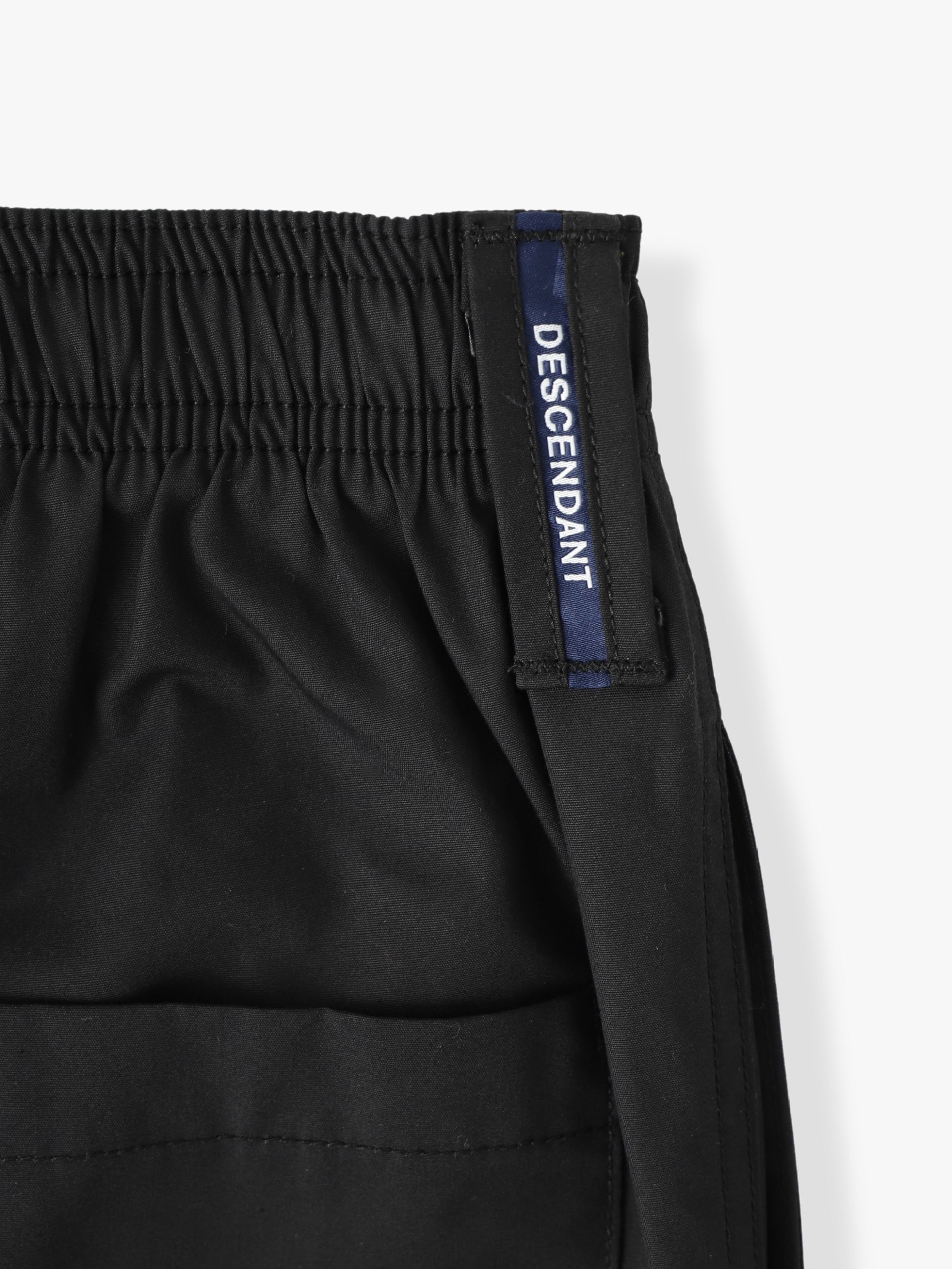 - 光沢感のあるコットンウェザーを使用したビーチパンツ。さらっとした肌触りや光沢感による程よく上品な表情が特徴です。また、DESCENDANTのロゴ入りのベルトループを配したデザインもポイント。ウエストにゴムを配したイージーな穿き心地とゆったりとしたフィットは、デイリーユースしやすい一着です。