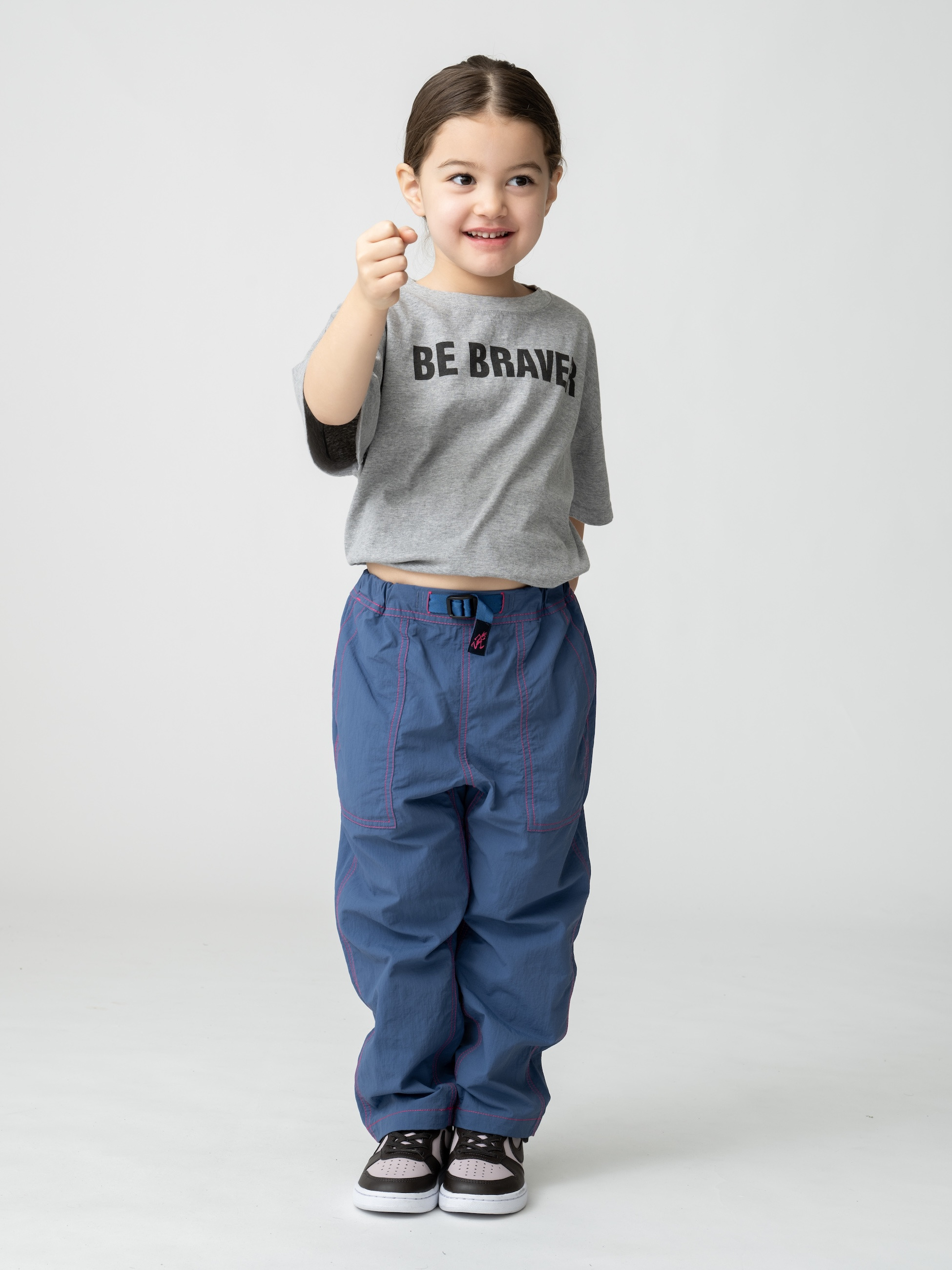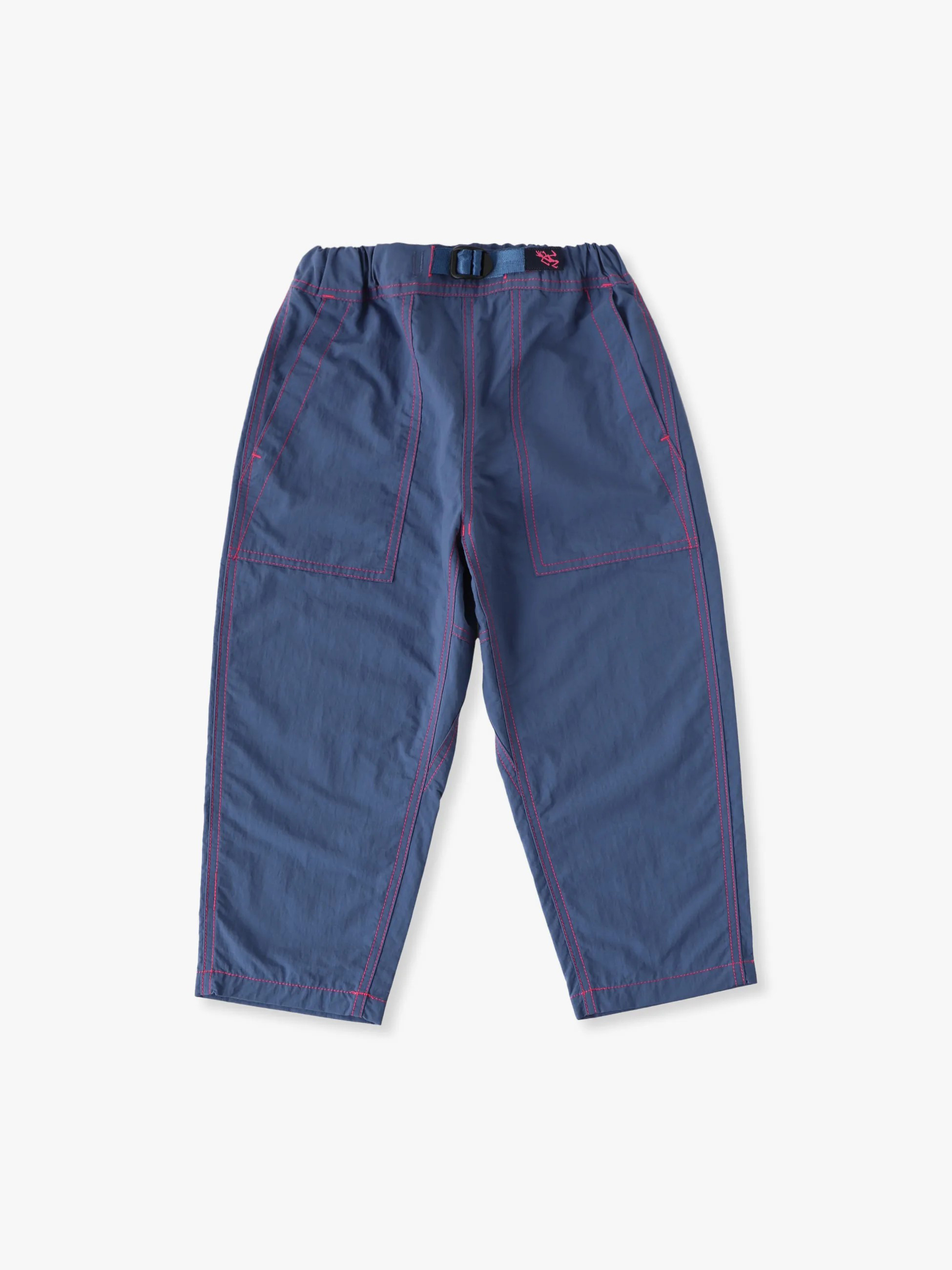 ロンハーマンキッズで別注した特別なアイテムが登場です。Gramicciのルーツであるクライミングの機能性を取り入れた、キッズ用ルーズテーパードパンツは、180度の開脚を可能にするガセットクロッチ仕様により、活発なキッズたちの動きにも柔軟に対応します。ワッシャー加工による自然なシワ感が、こなれた雰囲気とリラックス感をプラスします。配色ステッチがさりげないアクセントとなり、お子さまの日常のスタイリングに取り入れやすい一着に仕上げました。同シリーズのボンディング ニット フリース プルオーバーとセットアップで着ていただくのもおすすめです。