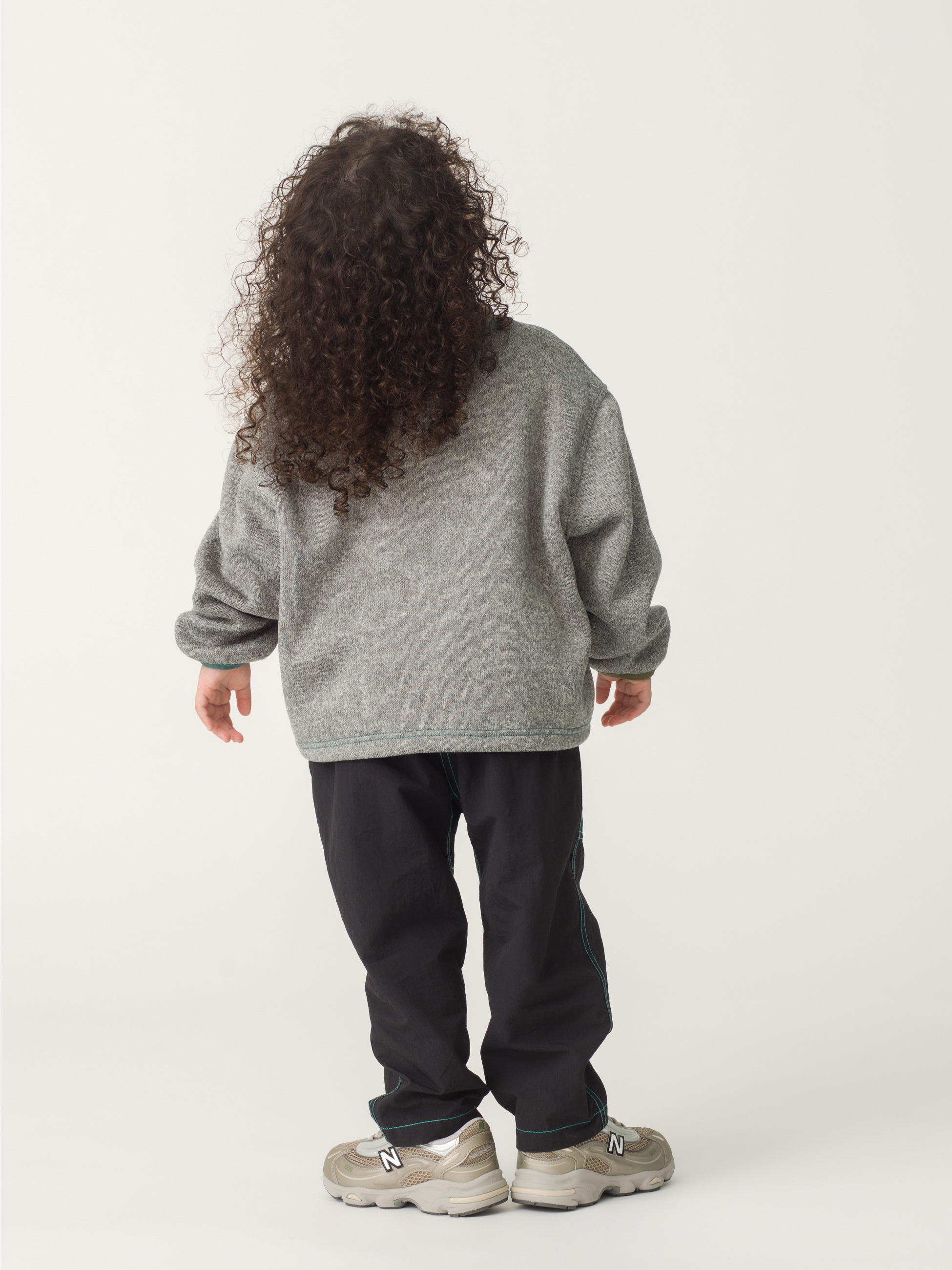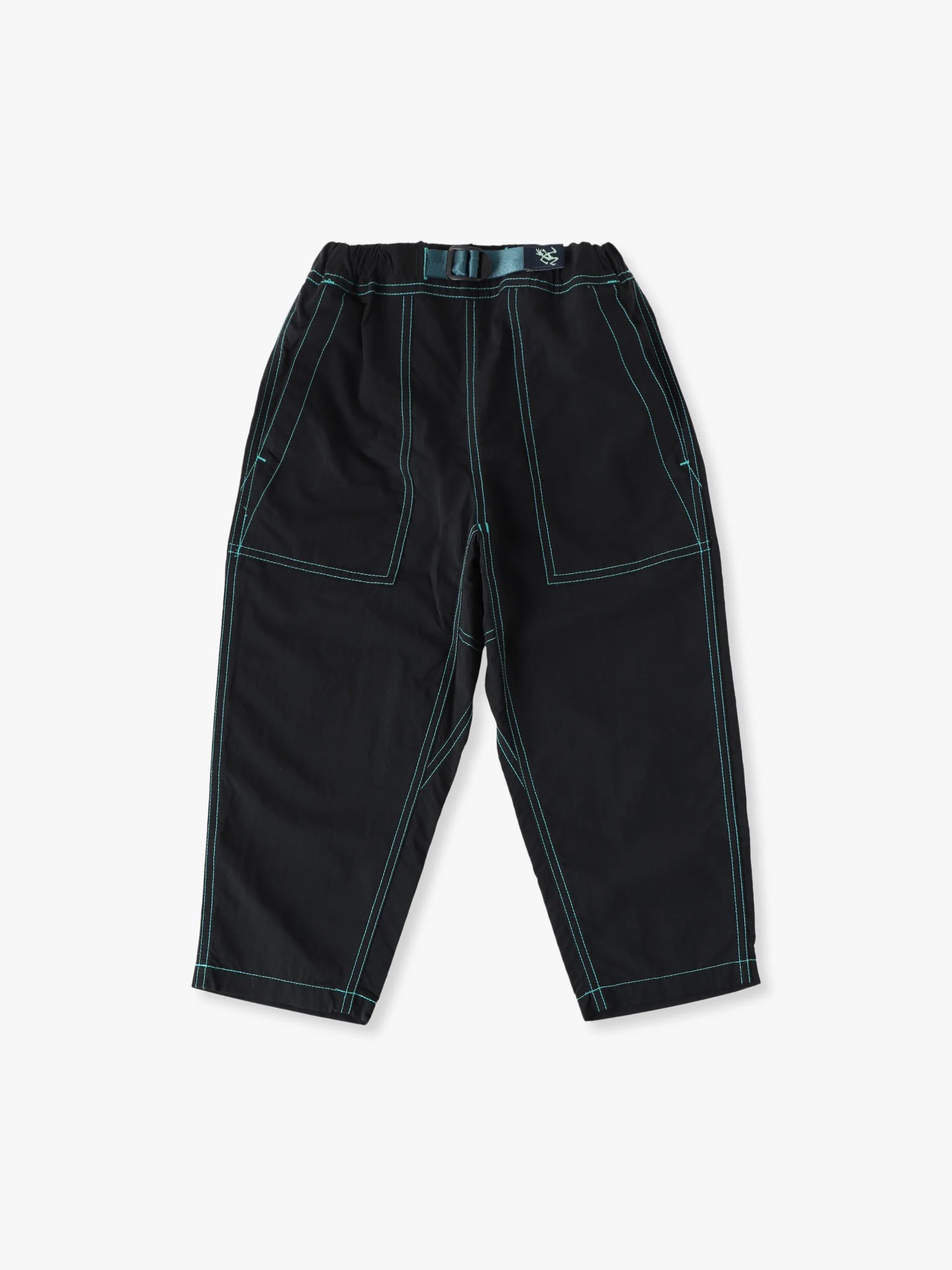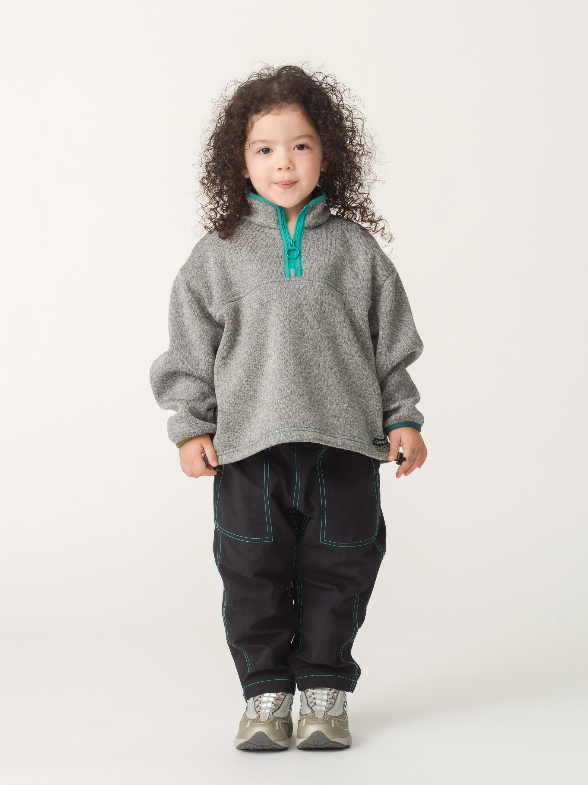ロンハーマンキッズで別注した特別なアイテムが登場です。Gramicciのルーツであるクライミングの機能性を取り入れた、キッズ用ルーズテーパードパンツは、180度の開脚を可能にするガセットクロッチ仕様により、活発なキッズたちの動きにも柔軟に対応します。ワッシャー加工による自然なシワ感が、こなれた雰囲気とリラックス感をプラスします。配色ステッチがさりげないアクセントとなり、お子さまの日常のスタイリングに取り入れやすい一着に仕上げました。同シリーズのボンディング ニット フリース プルオーバーとセットアップで着ていただくのもおすすめです。